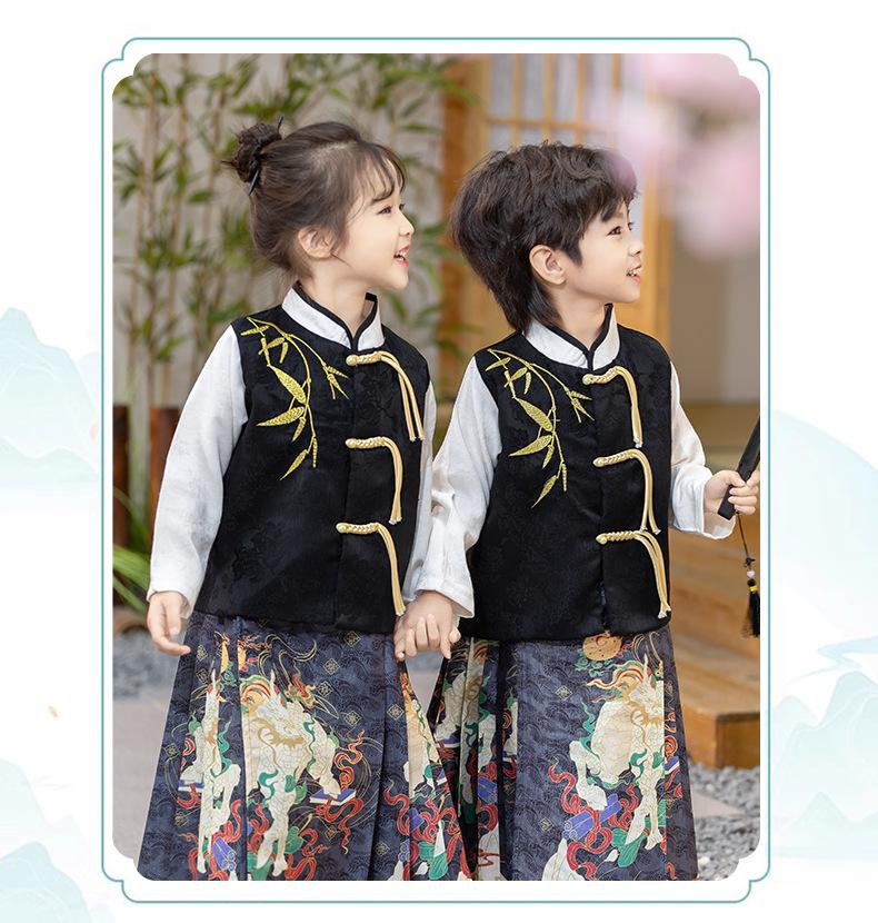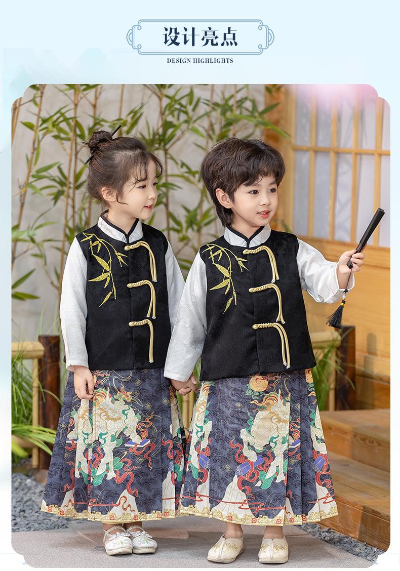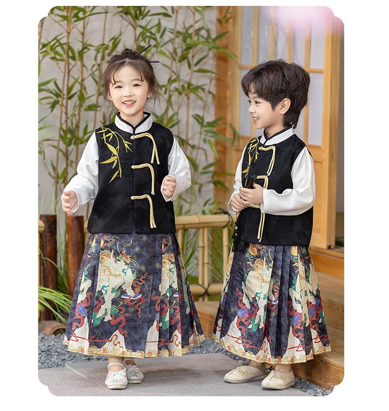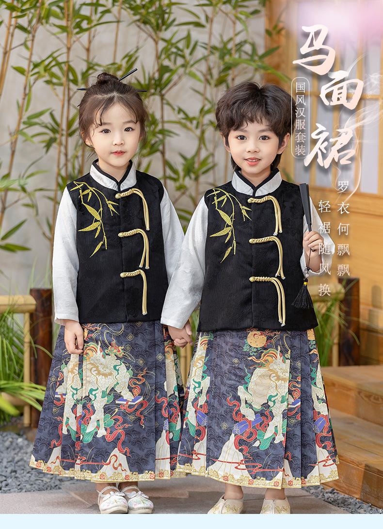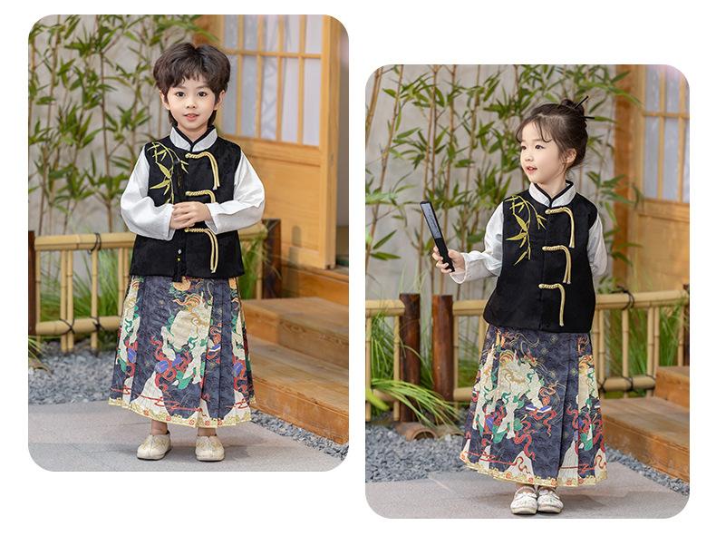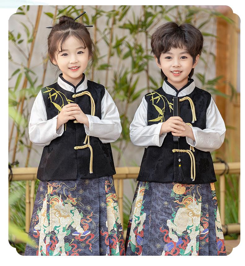 Traje Hanfu de primavera y otoño para niños, estilo chino, nuevo y mejorado, ropa de actuación para niños y niñas, falda con cara de caballo, traje Tang antiguo de moda.