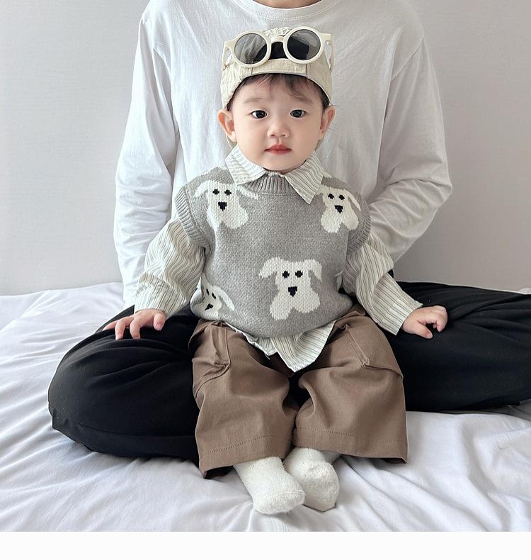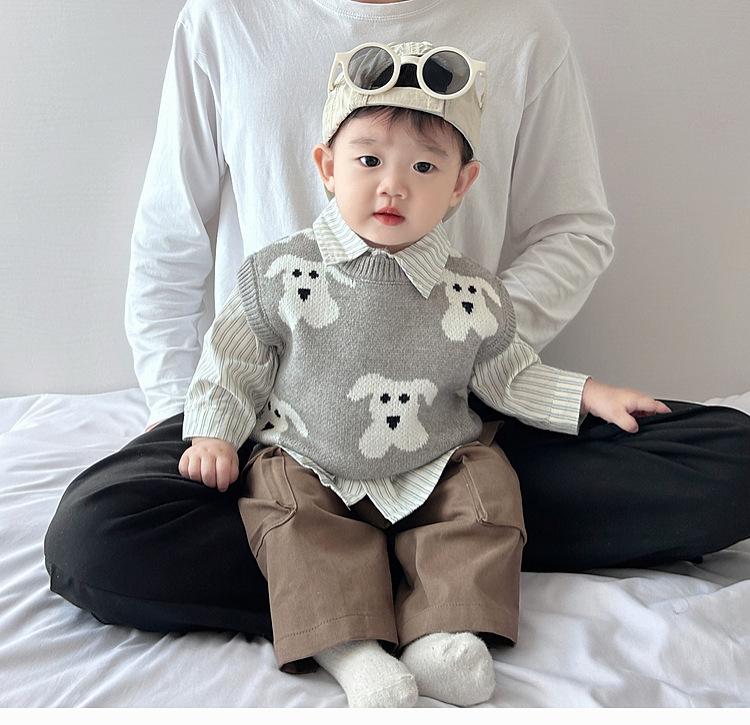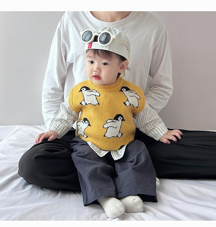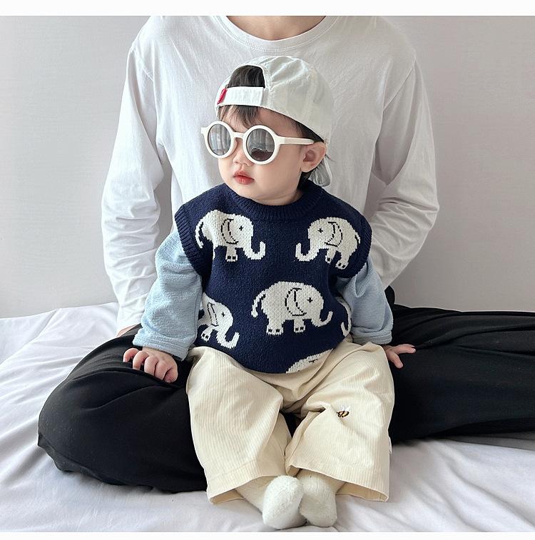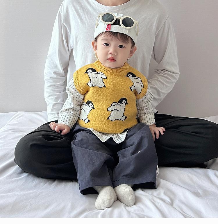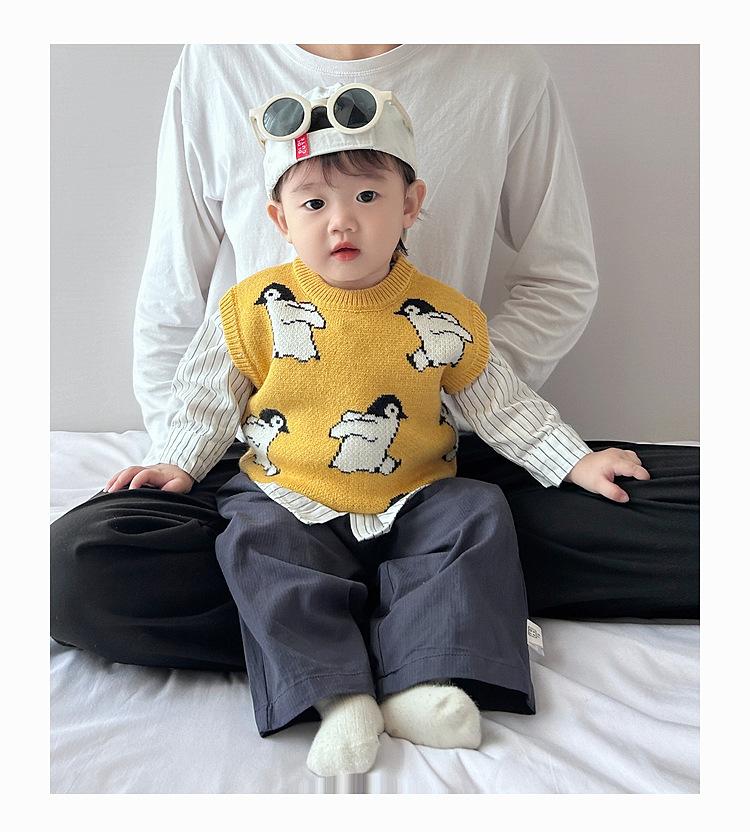 Chaleco de calle frito atractivo para niño, chaleco holgado coreano para otoño e invierno para niños, ropa infantil de estilo occidental de punto a la moda que combina con todo.