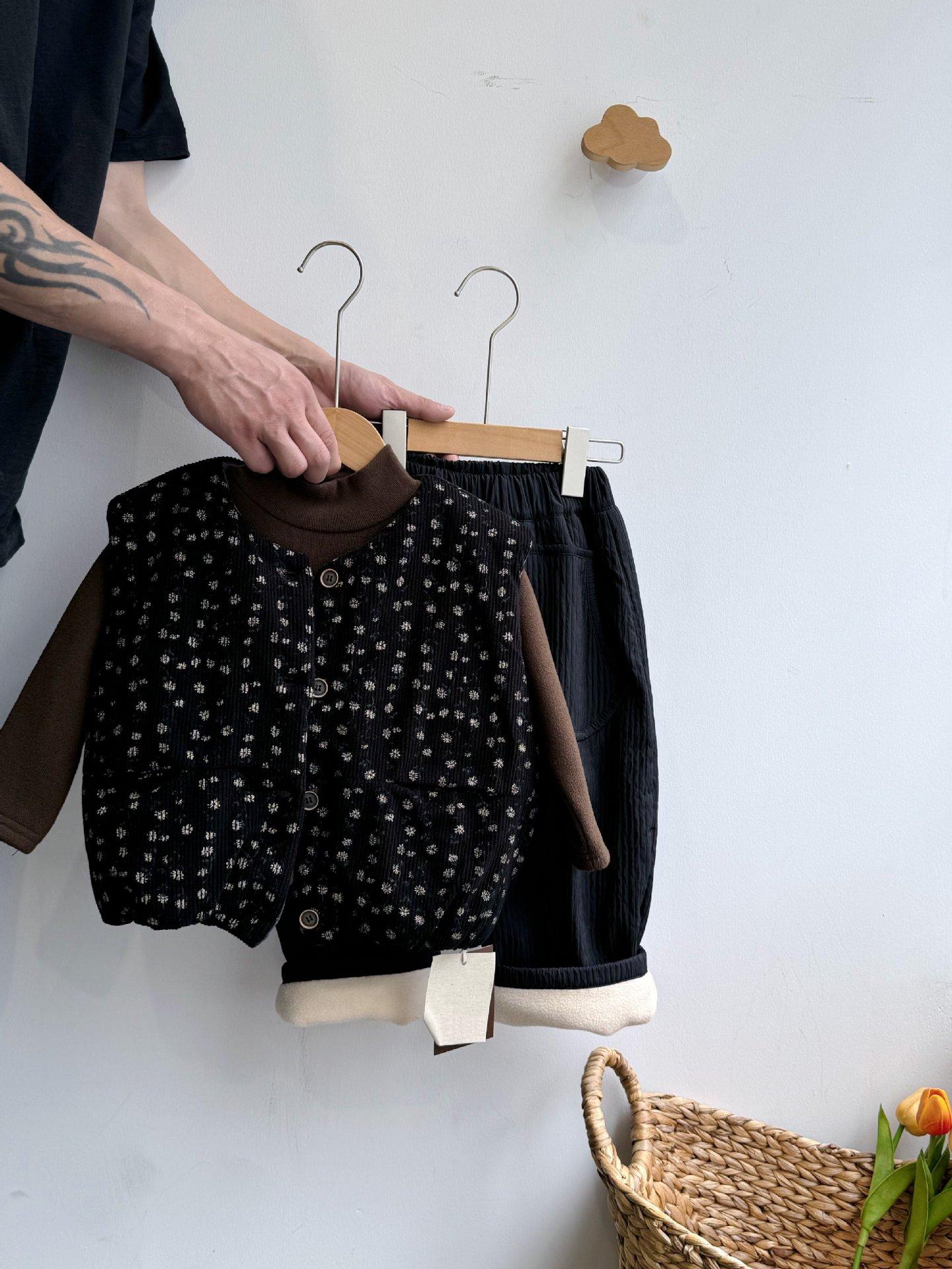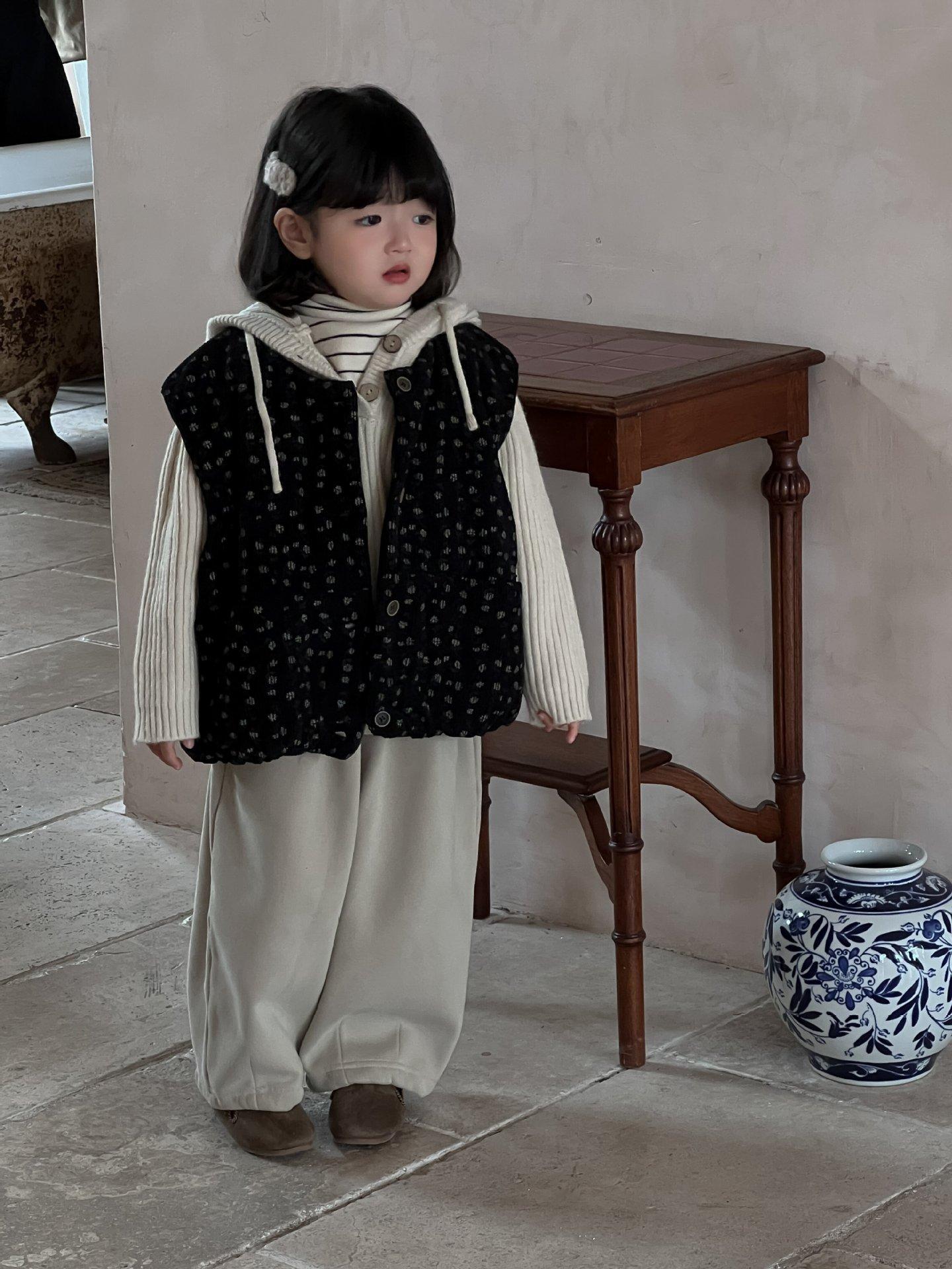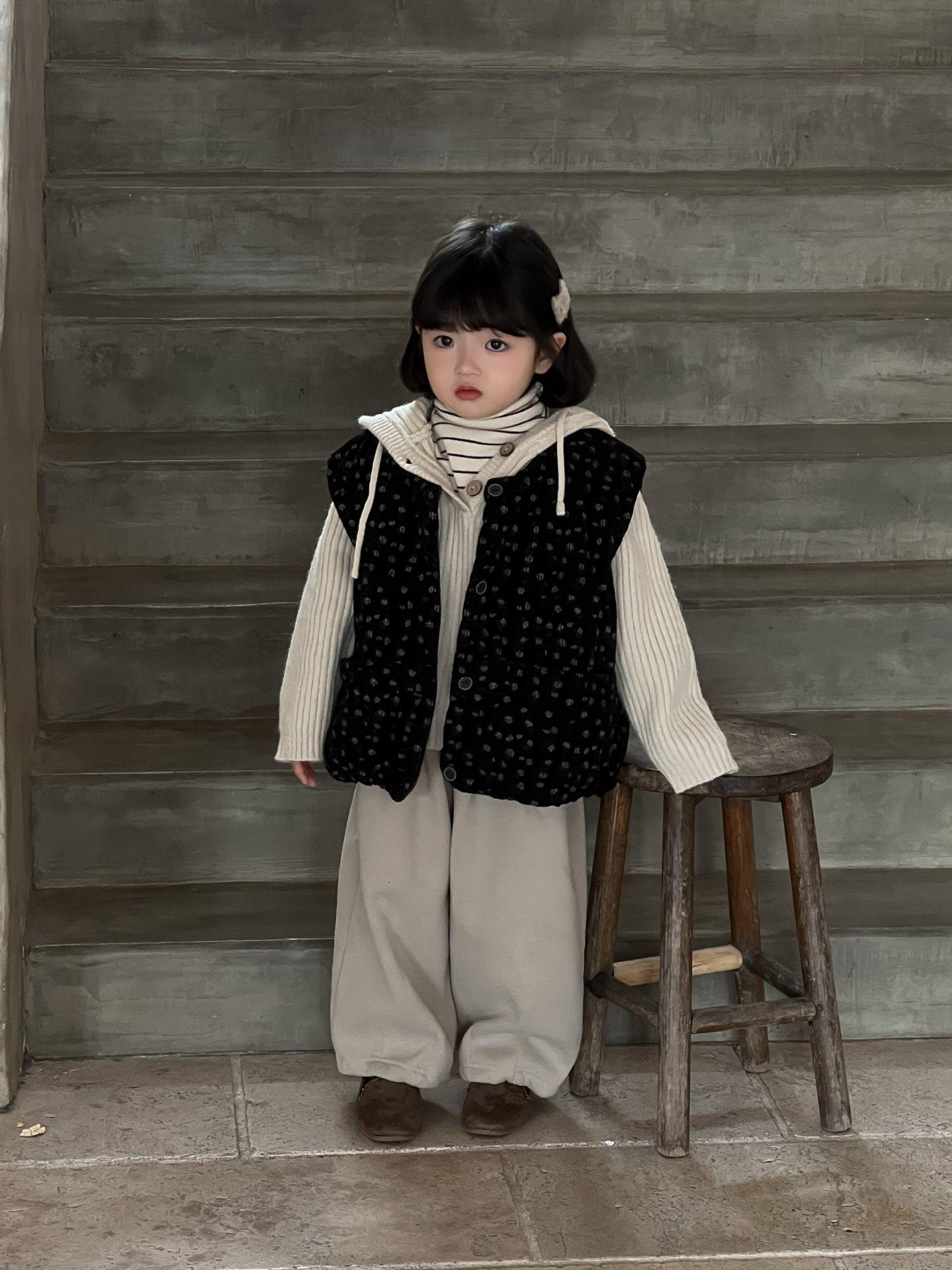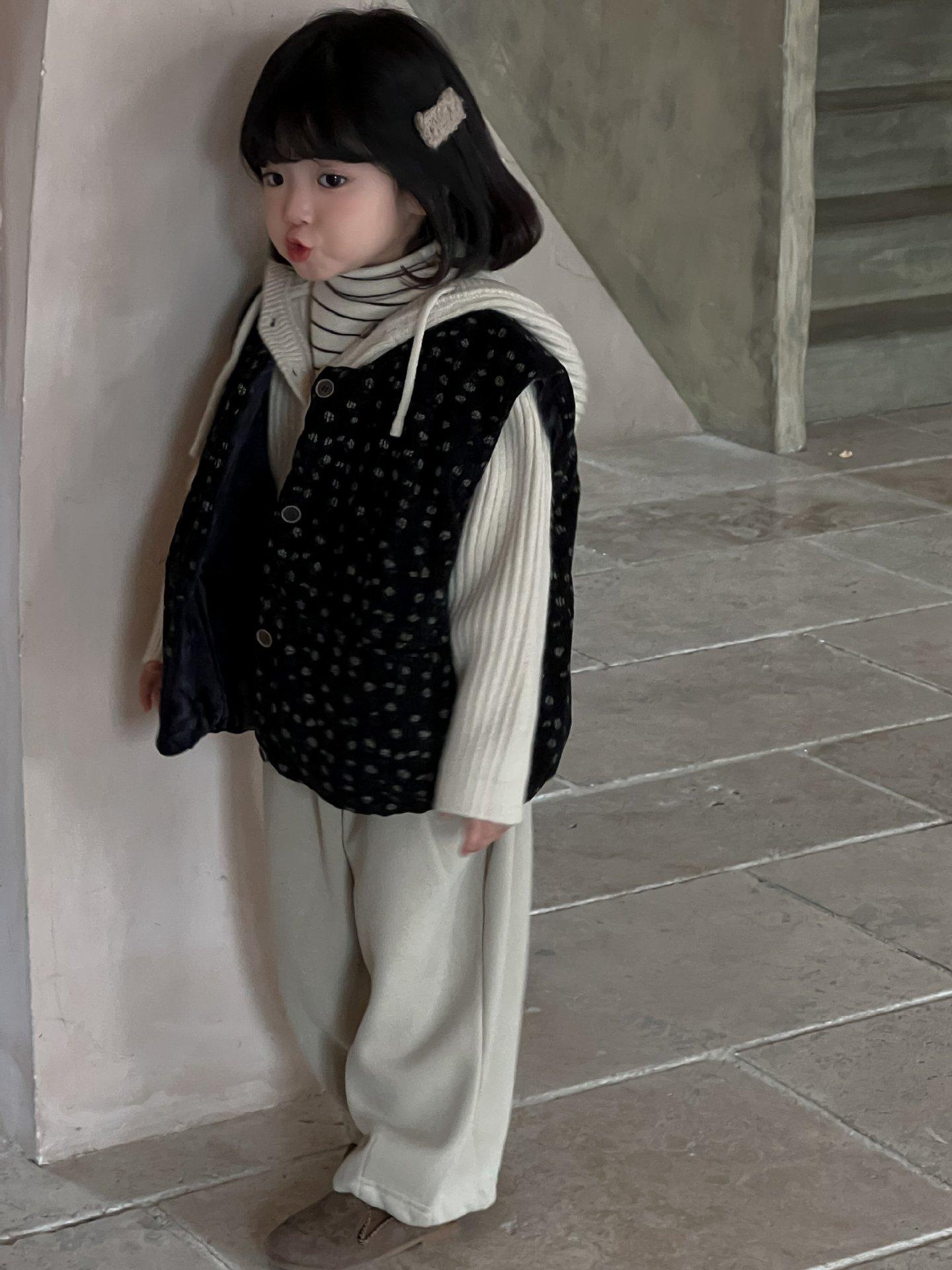 Cárdigan Chaleco para Niñas 25 Otoño/Invierno Nuevo Abrigo Cálido Top sin Mangas Conjunto Moderno para Bebé Conjunto Infantil de Tres Piezas