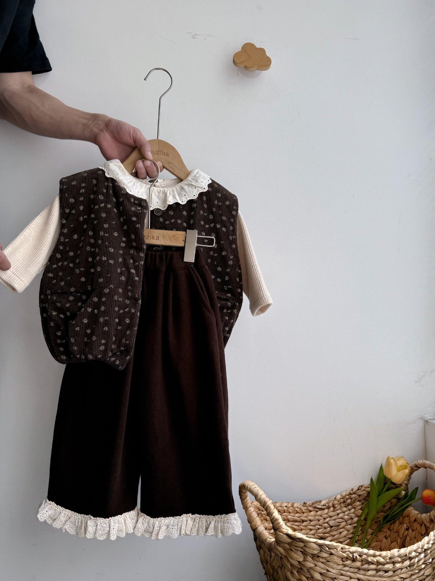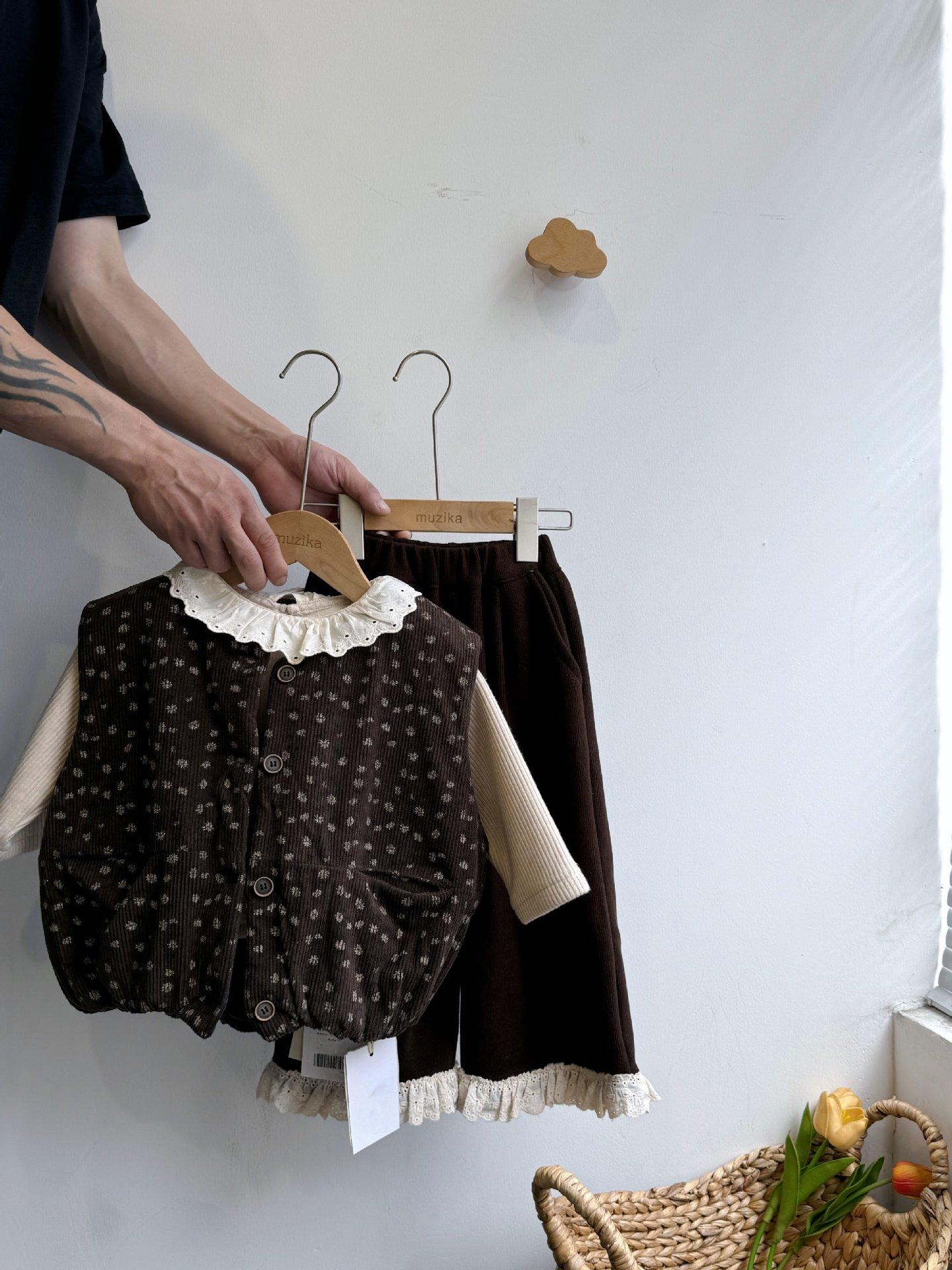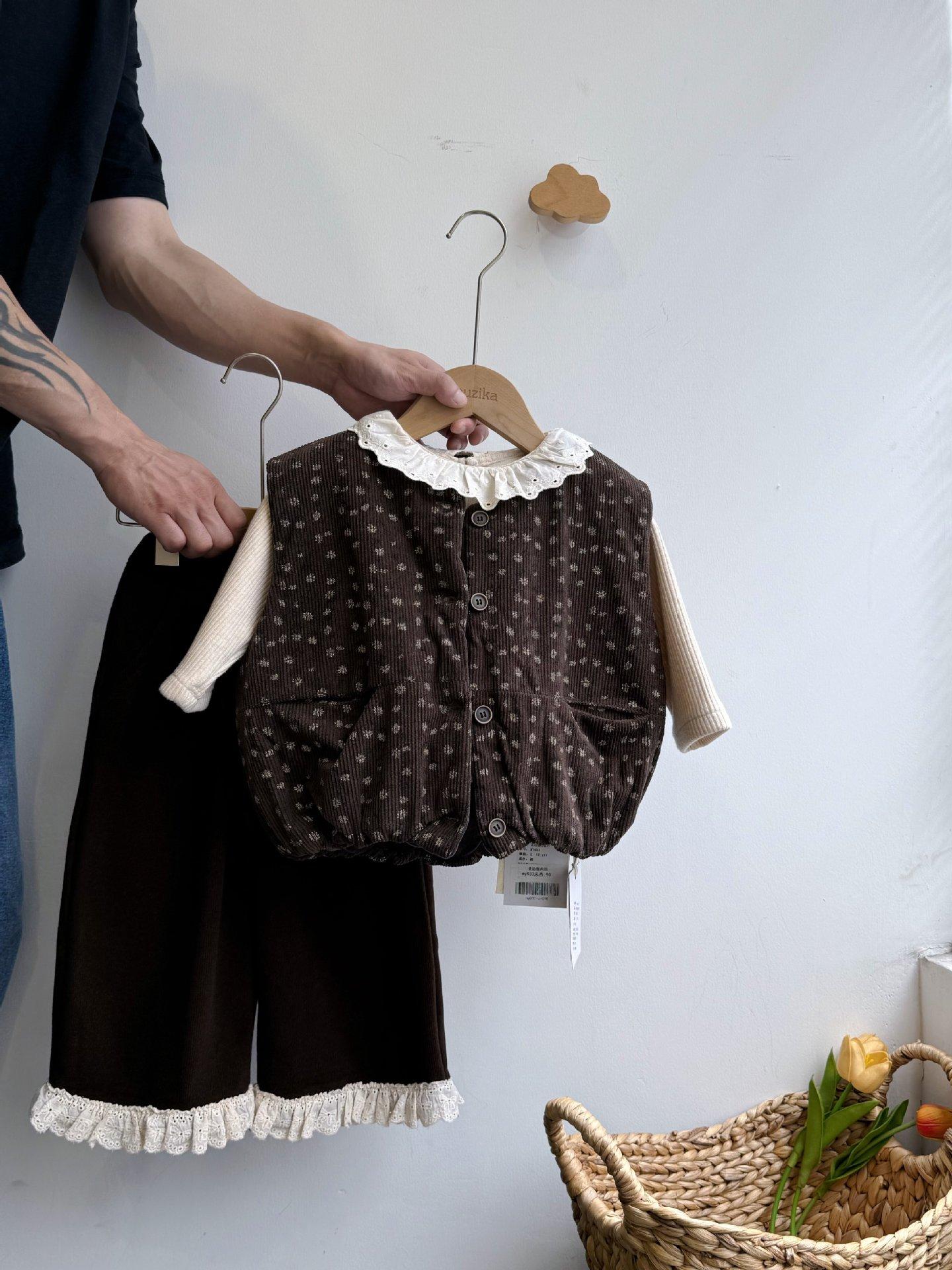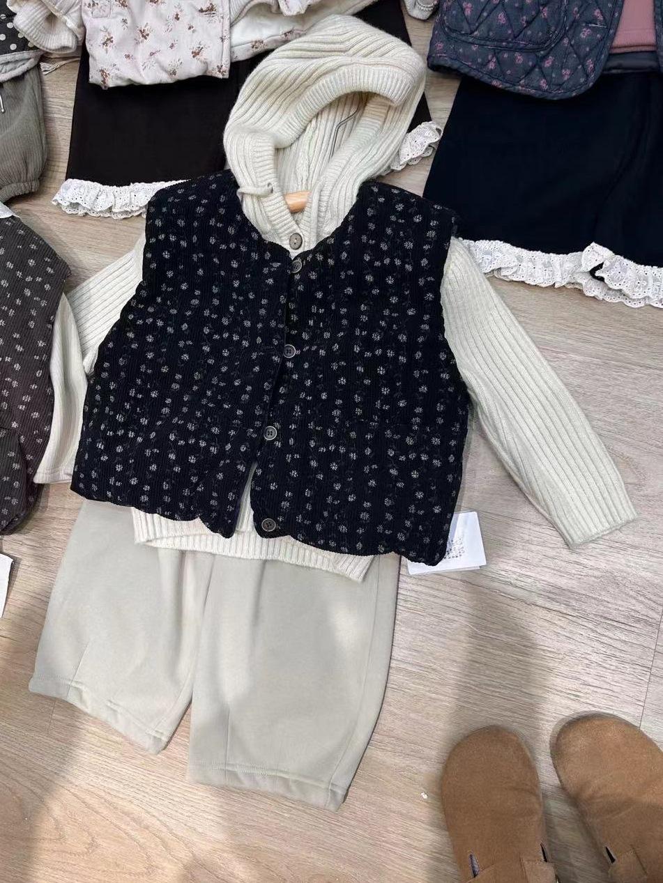 Cárdigan Chaleco para Niñas 25 Otoño/Invierno Nuevo Abrigo Cálido Top sin Mangas Conjunto Moderno para Bebé Conjunto Infantil de Tres Piezas