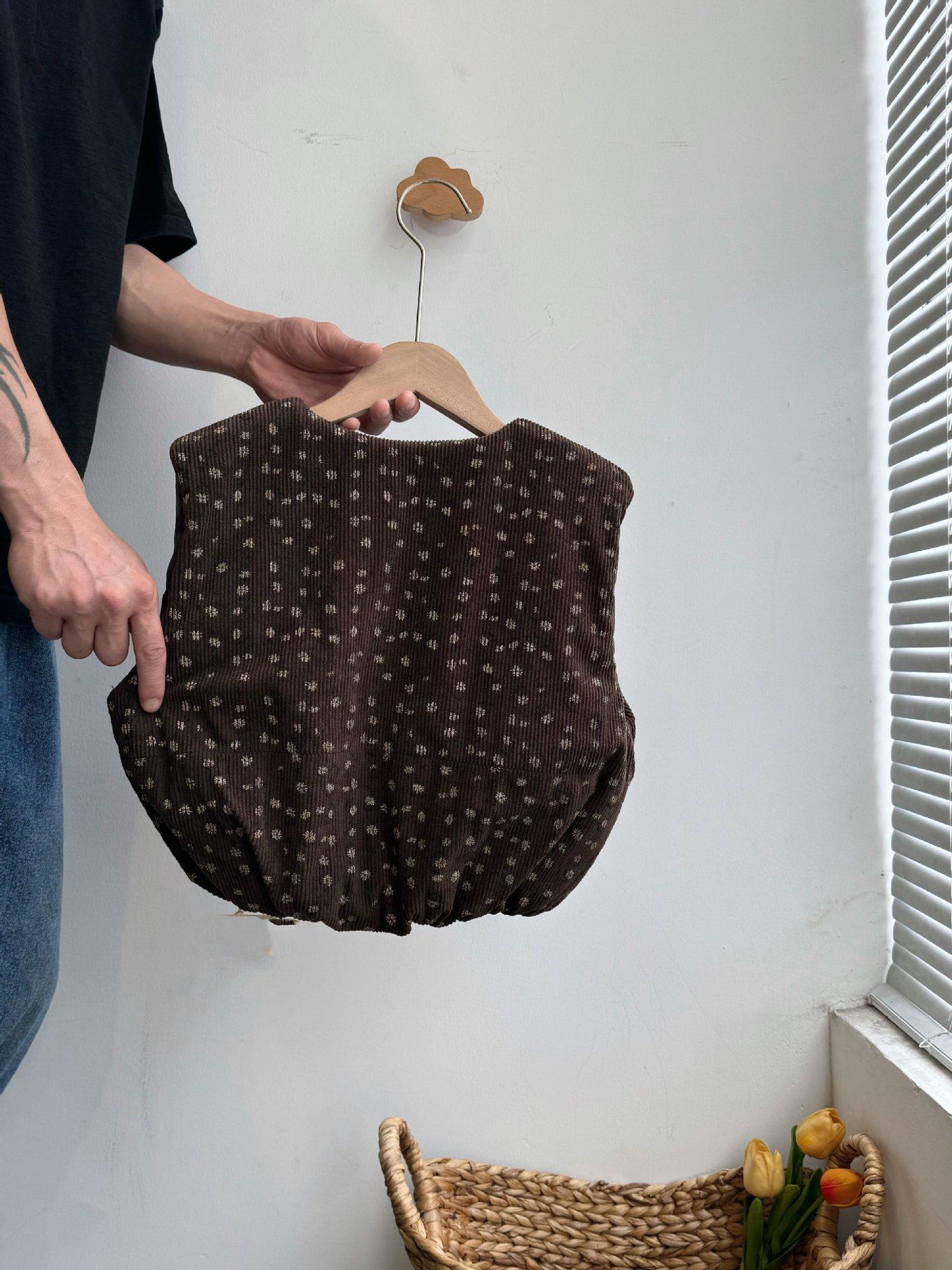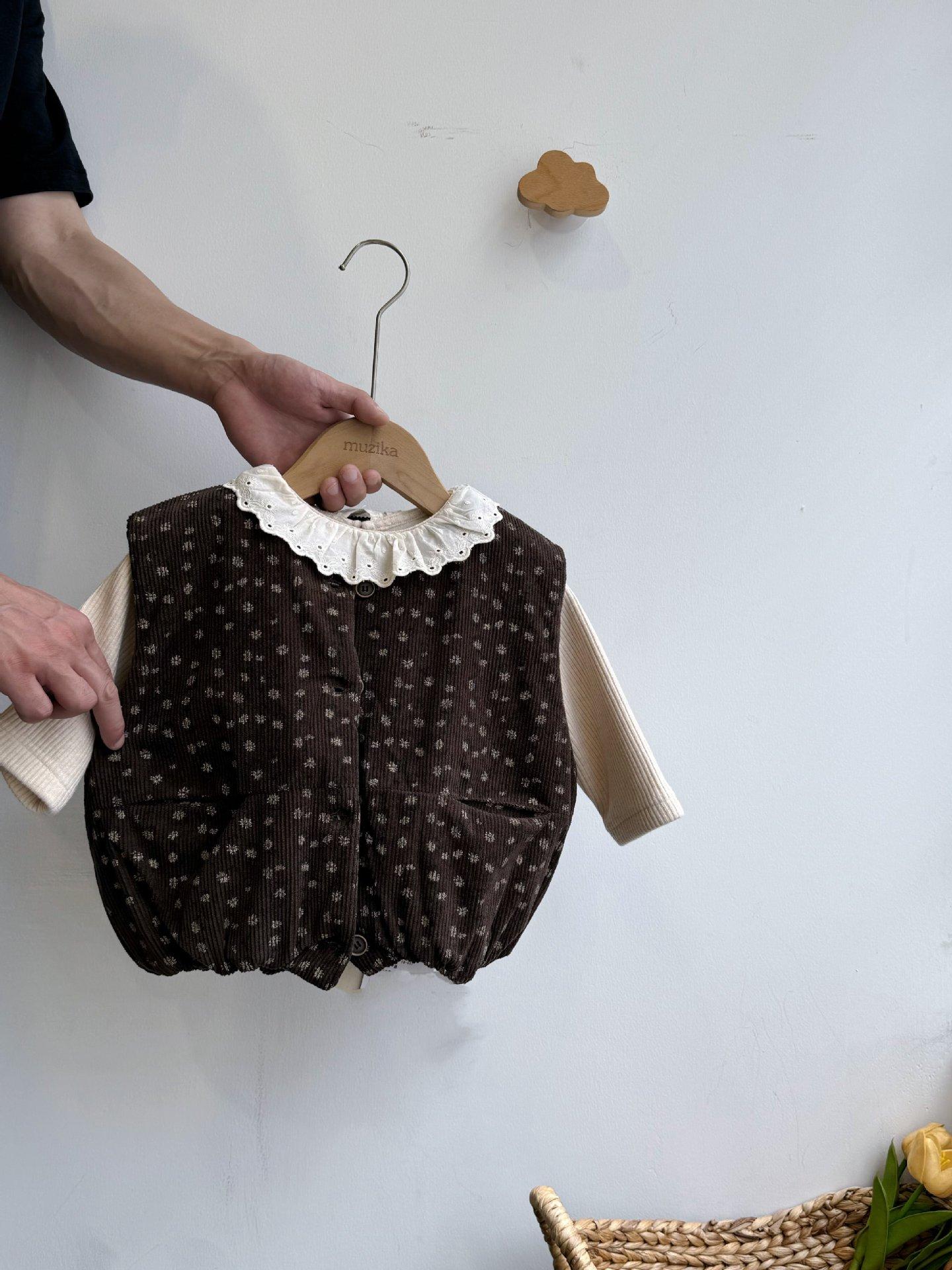 Chaleco para niños estilo coreano de otoño e invierno 2025 para niñas, moderno, retro, holgado, floral, grueso, acolchado, abrigo de algodón