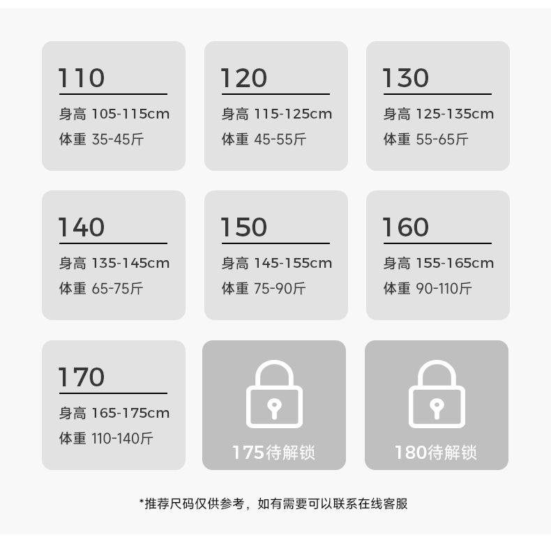 110cm, 120cm, 130cm, 140cm, 150cm, 160cm, 170cm