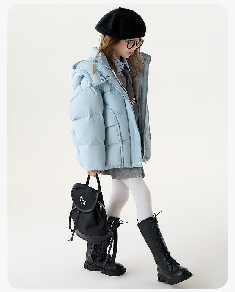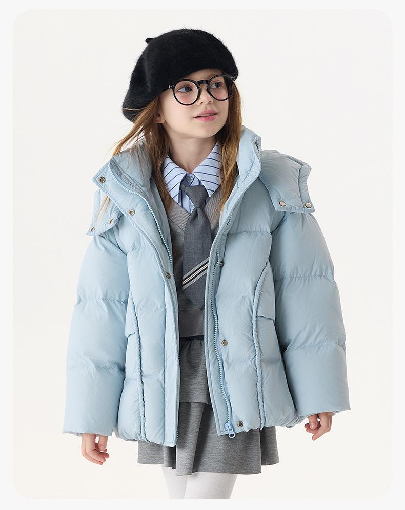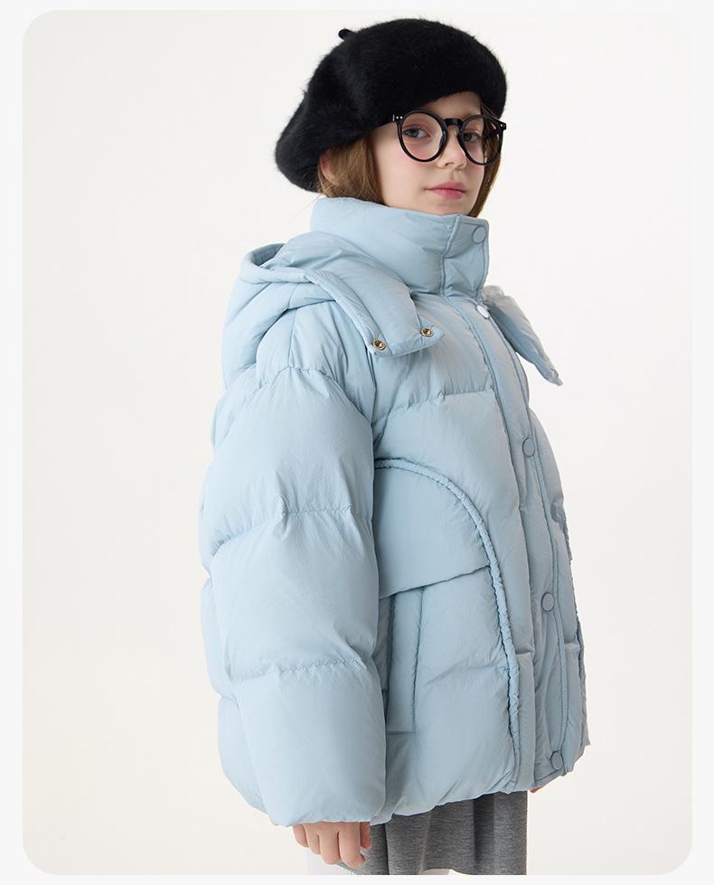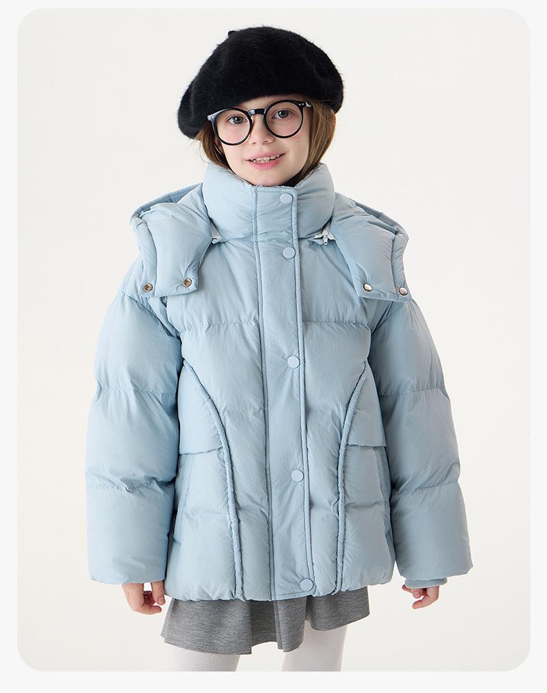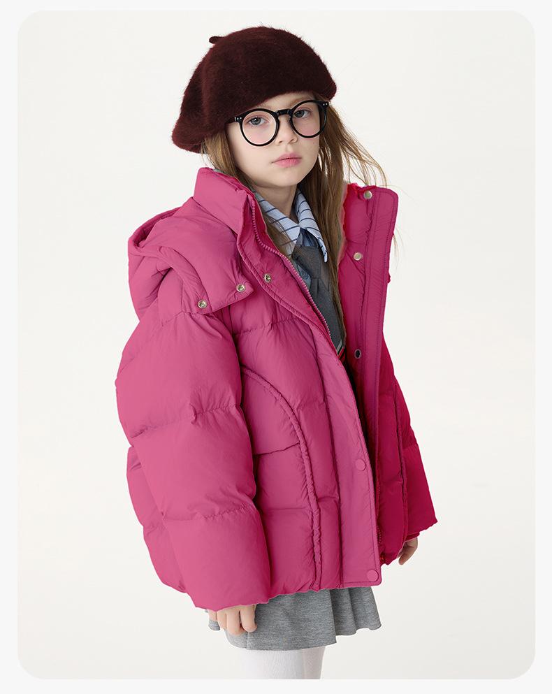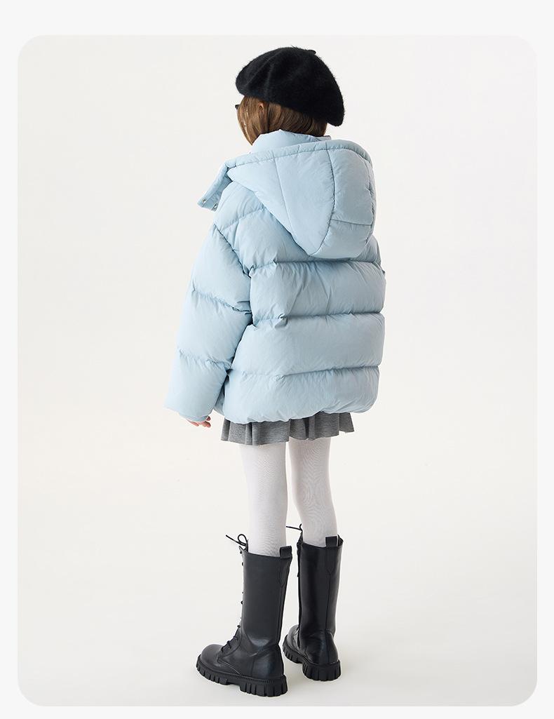 Chaqueta de plumón para niña, invierno 2024, estilo occidental, color liso, con capucha, gruesa y cálida, para niña pequeña.