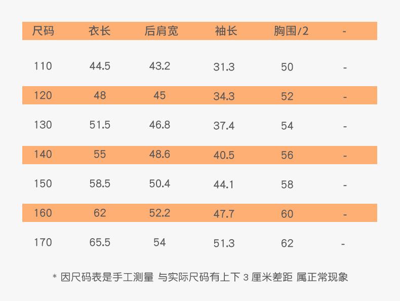 110cm, 120cm, 130cm, 140cm, 150cm, 160cm