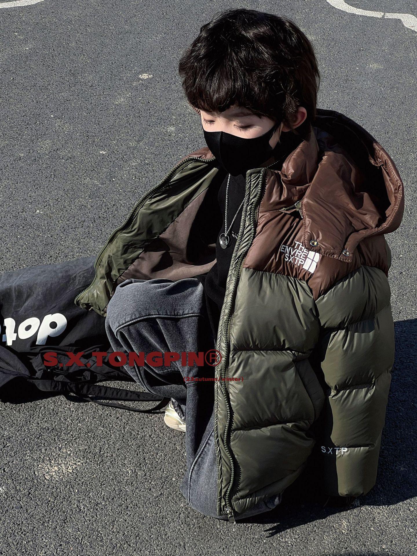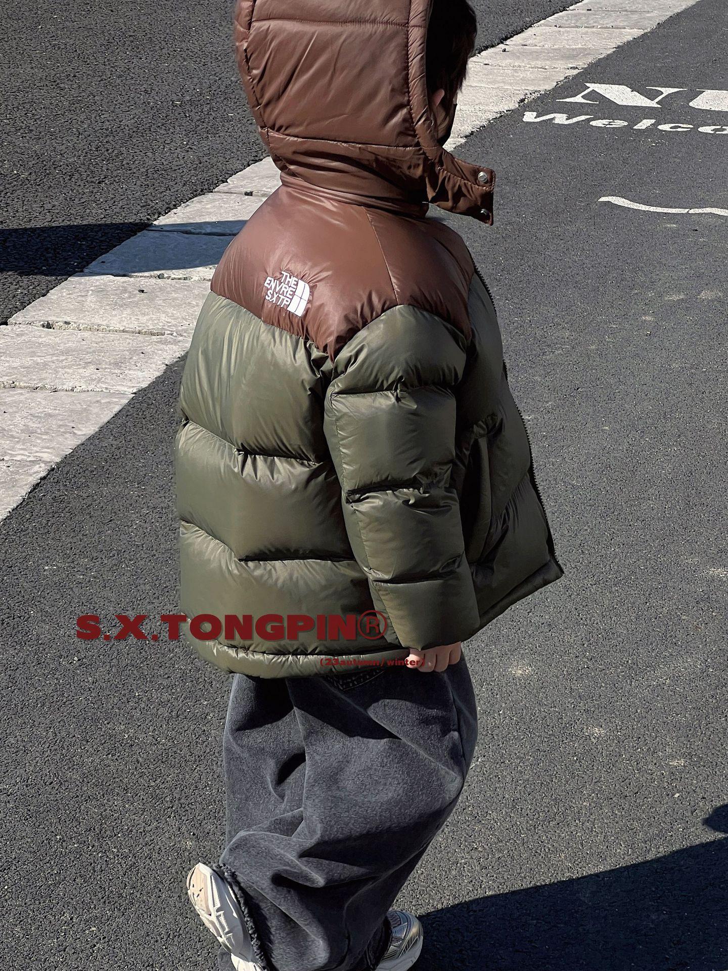 Chaqueta de plumón para niños, ropa de invierno coreana para niños, chaqueta de plumón cálida de invierno con bloques de color para mujer, 2024
