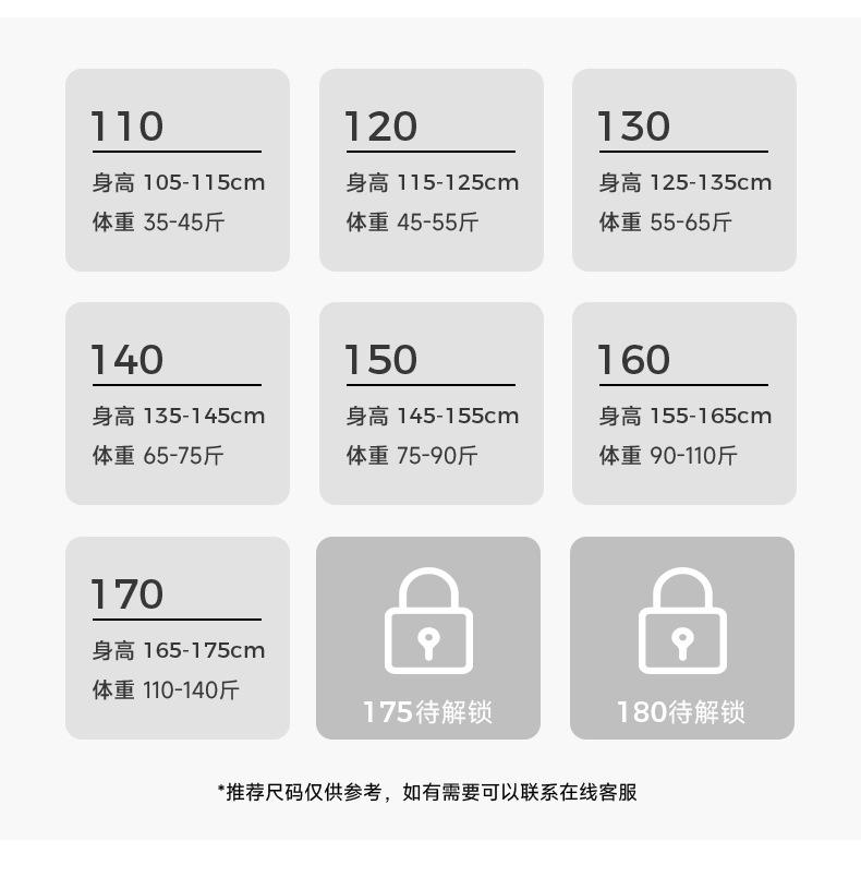 110cm, 120cm, 130cm, 140cm, 150cm, 160cm, 170cm