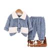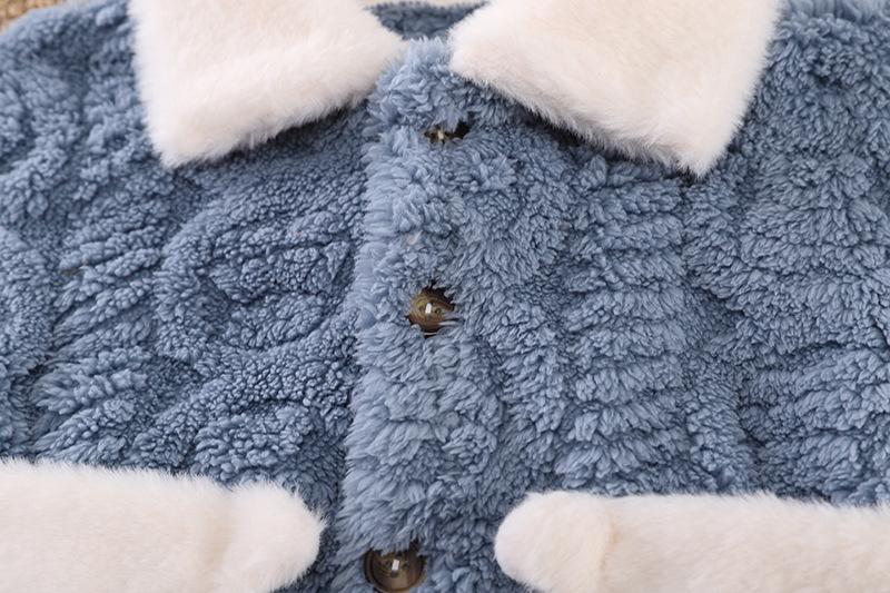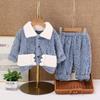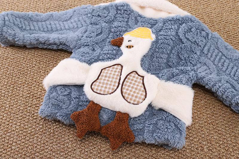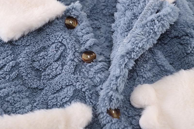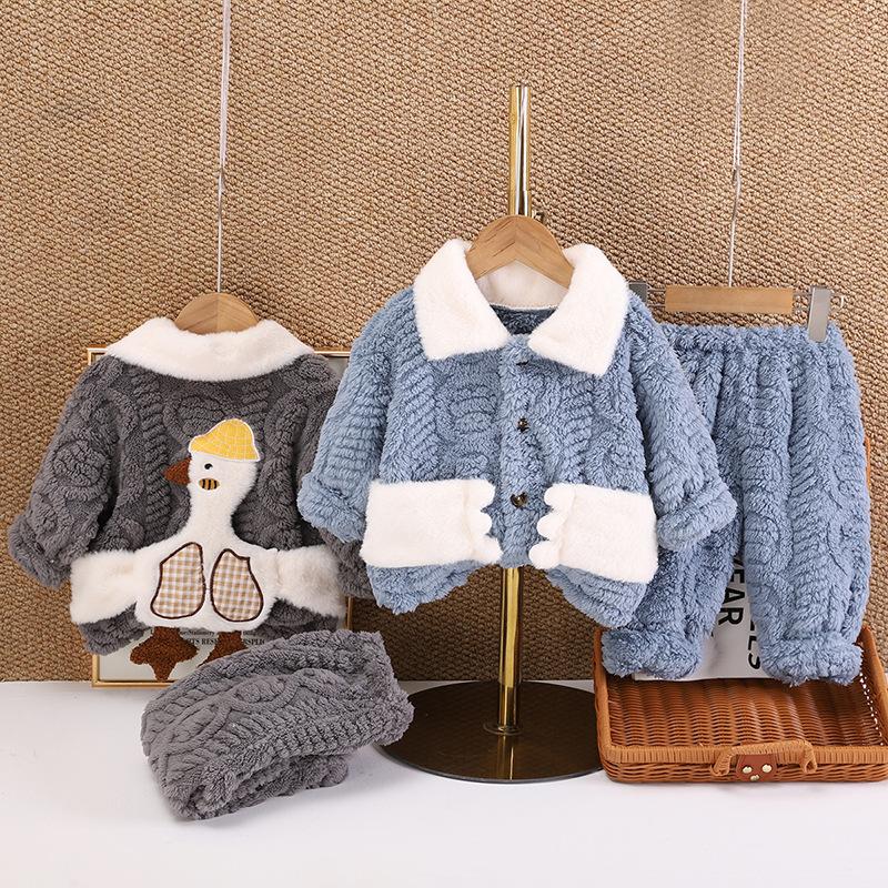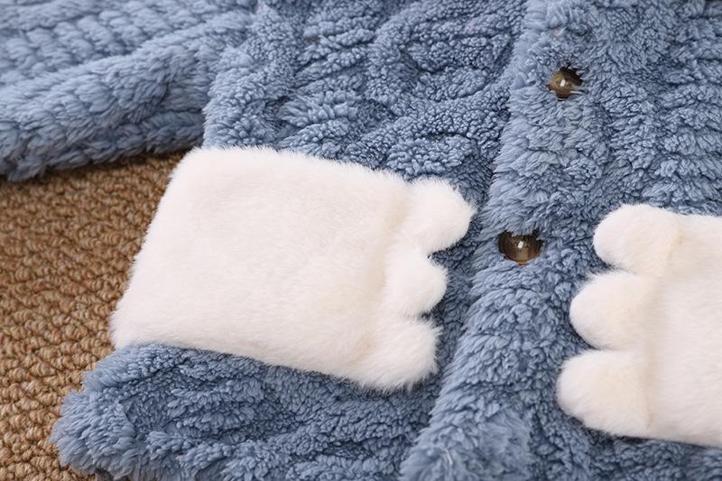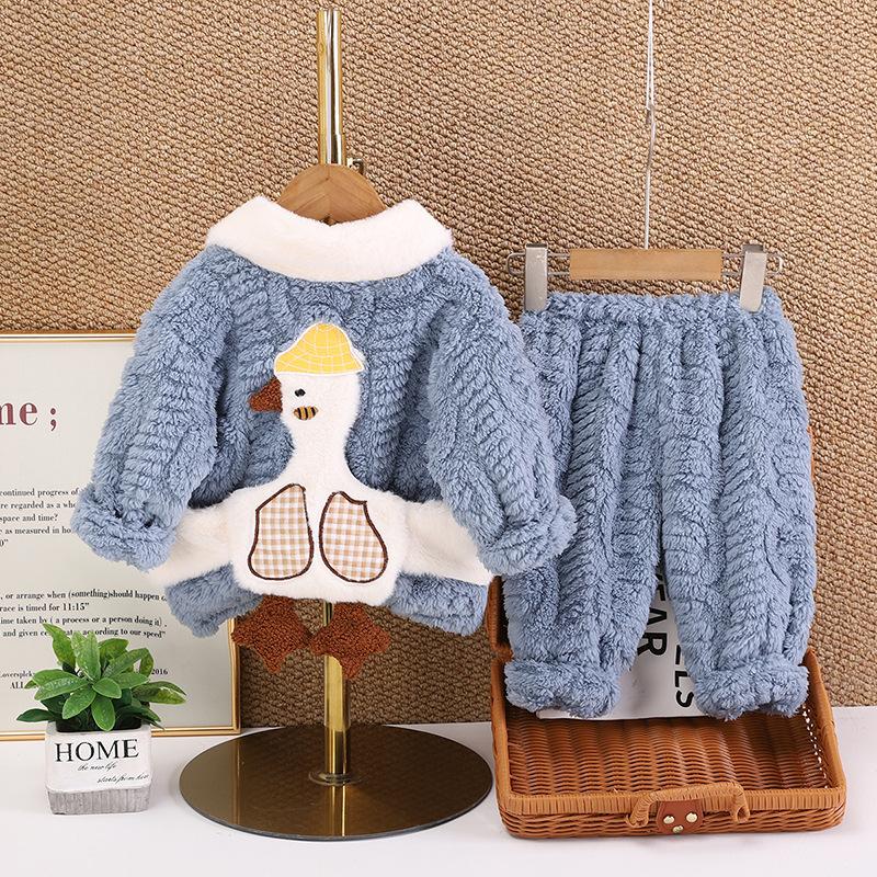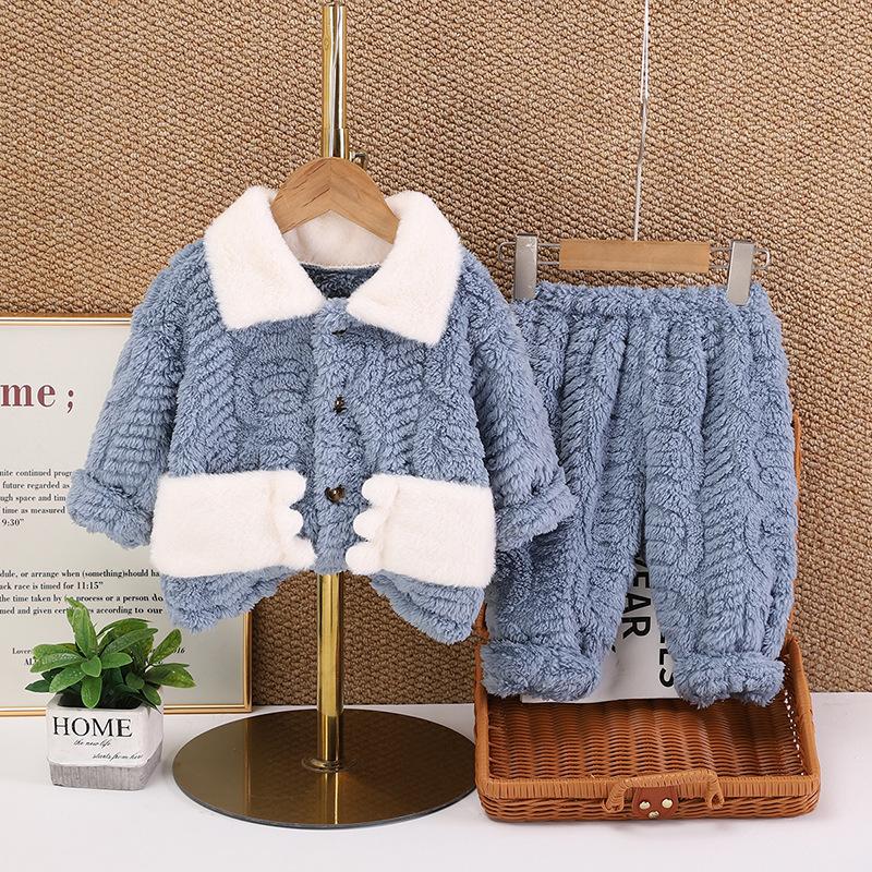 Pijamas de franela para niños de otoño e invierno, para niños y niñas, con forro polar y solapa de dibujos animados, cálidos, de coral, para el hogar