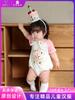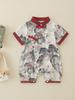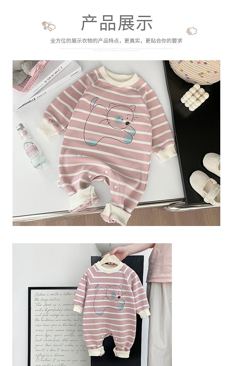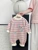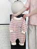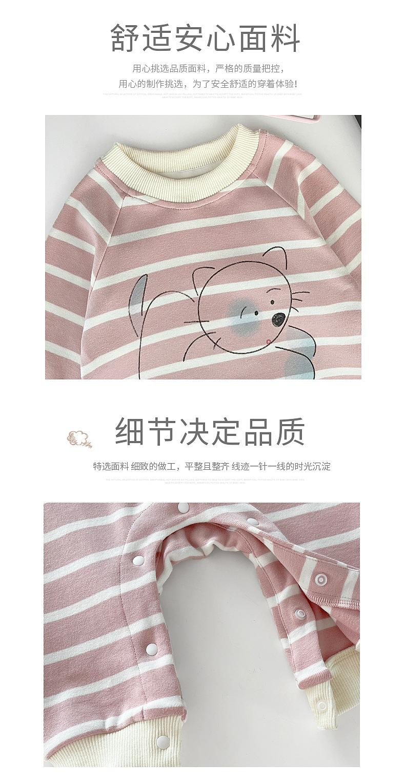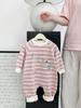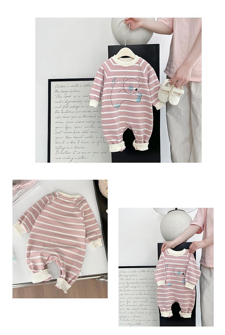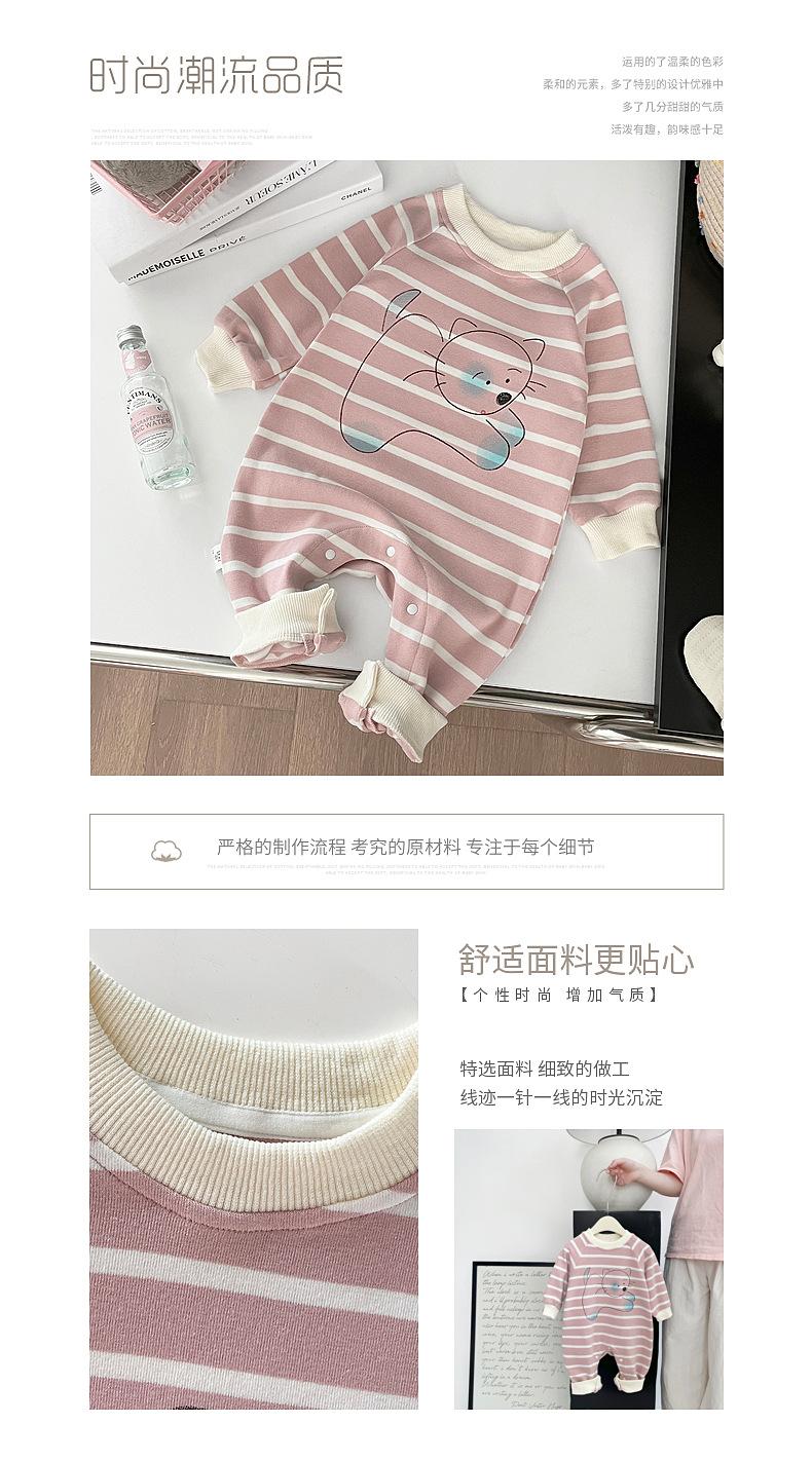 Mono de primavera y otoño súper lindo para recién nacida, estilo occidental, para niña, con estampado de dibujos animados a rayas, color caqui, ropa de escalada informal para salir