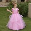 Vestido de princesa morado para niña con estampado de flores bordadas, vestido de malla, vestido de princesa para niña pequeña con traje de tocado