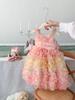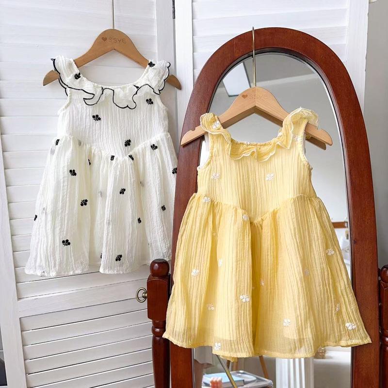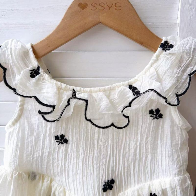 Vestido elegante de verano para niñas, nuevo vestido de princesa de malla bordada con mangas de encaje elegante AXA855