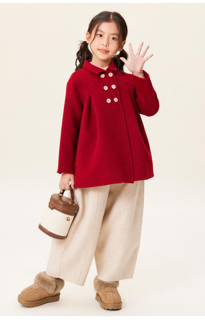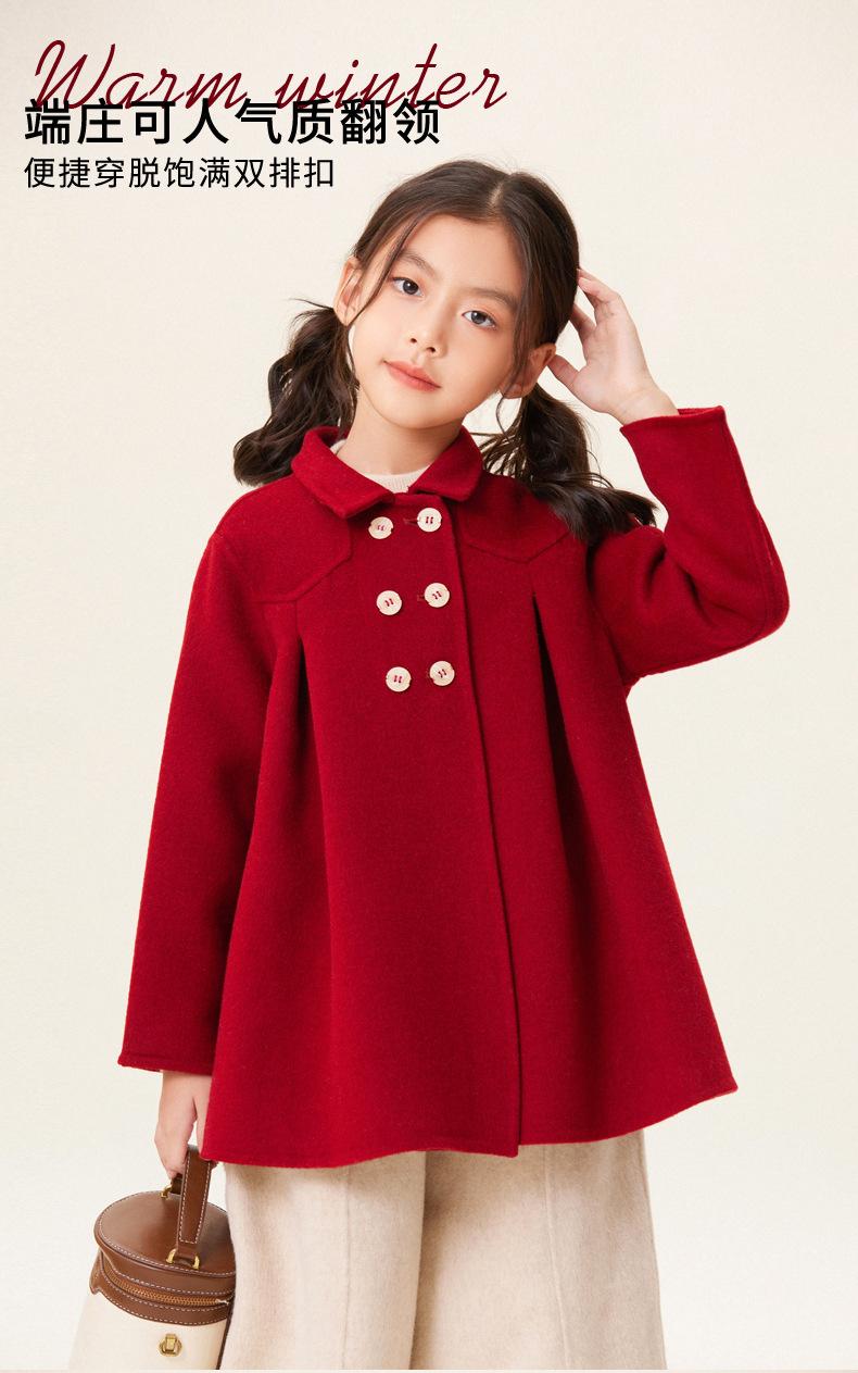 Abrigo de Lana de Doble Vista 100% Lana para Niñas Otoño e Invierno 2024 Nuevo Otoño Abrigo de Lana Abrigo Lindo Combinable para Bebé