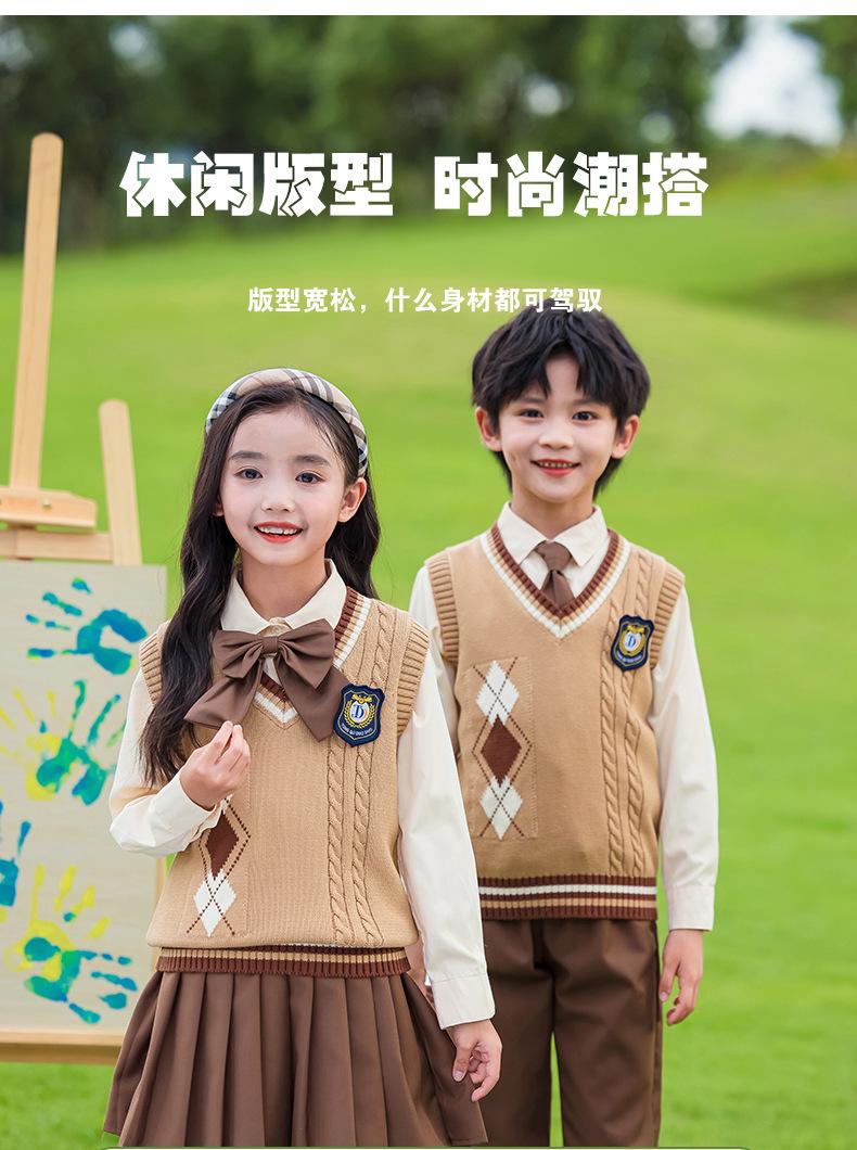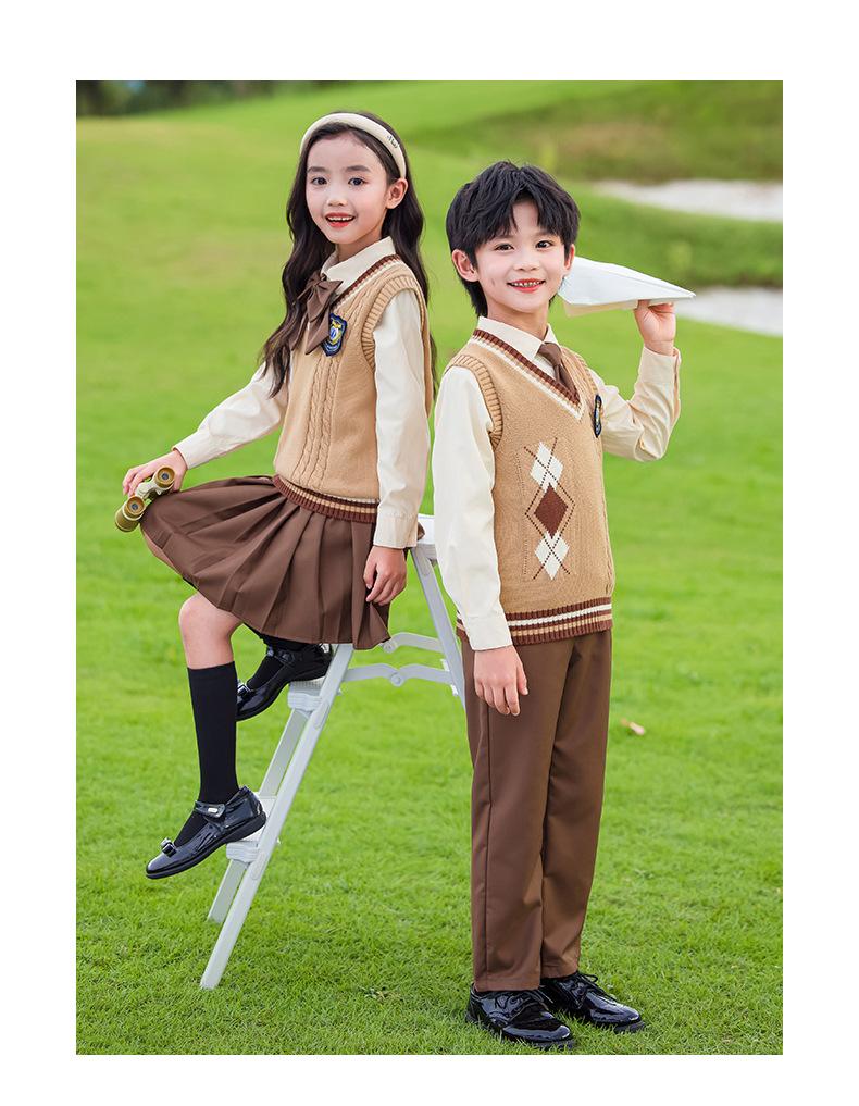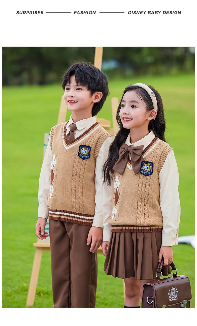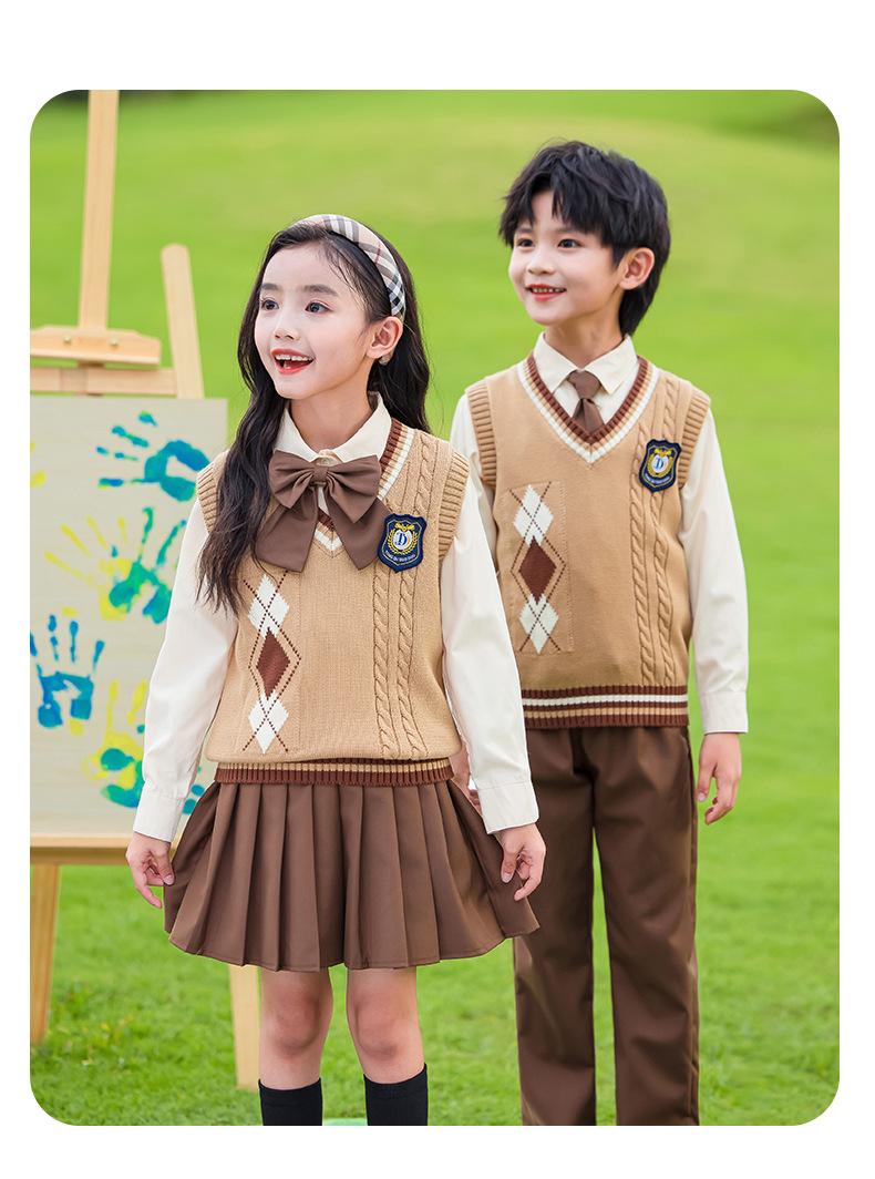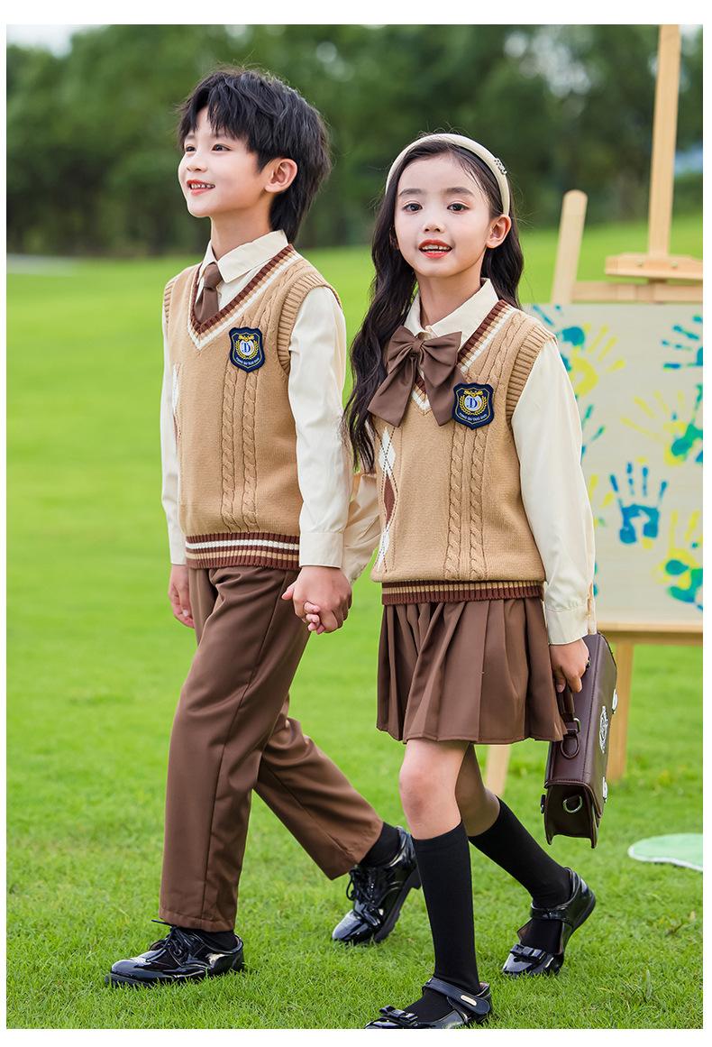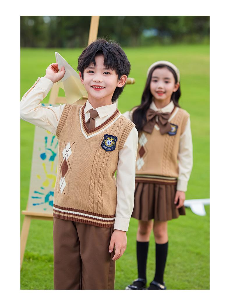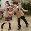 Uniforme escolar para estudiantes de primaria, traje de primavera y otoño, ropa escolar de jardín de infantes, ropa de clase para niños, chaleco de punto de estilo británico, vestido de traje.