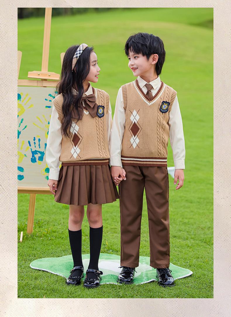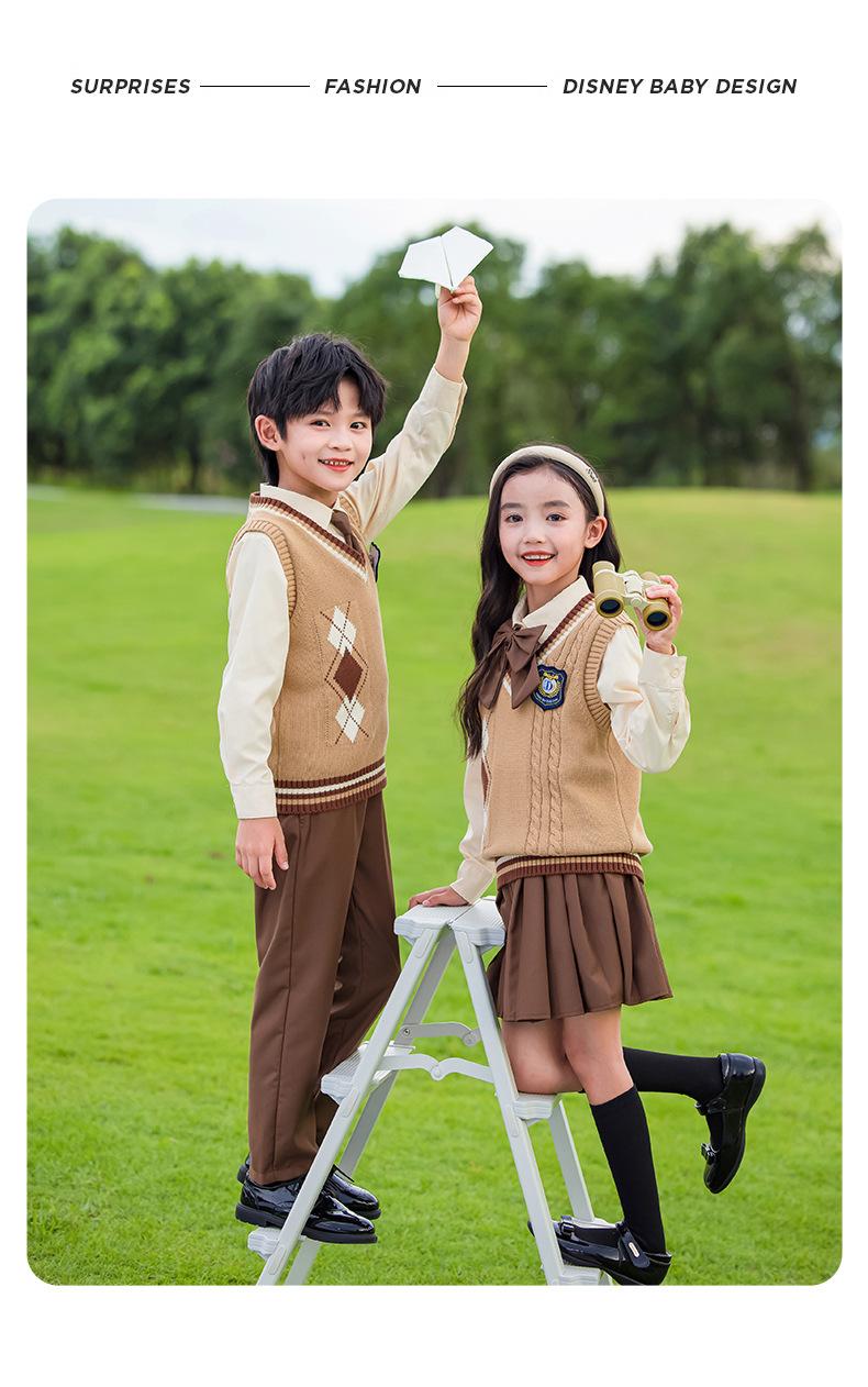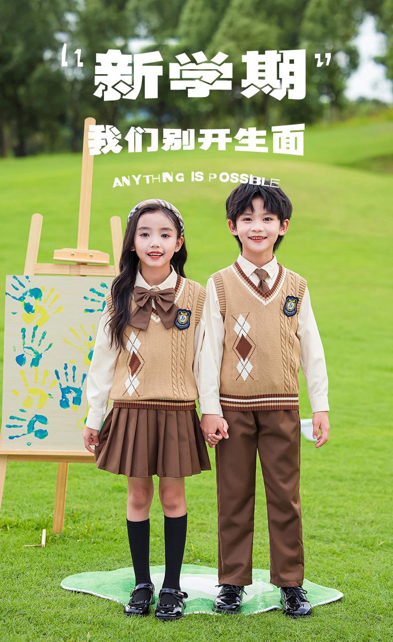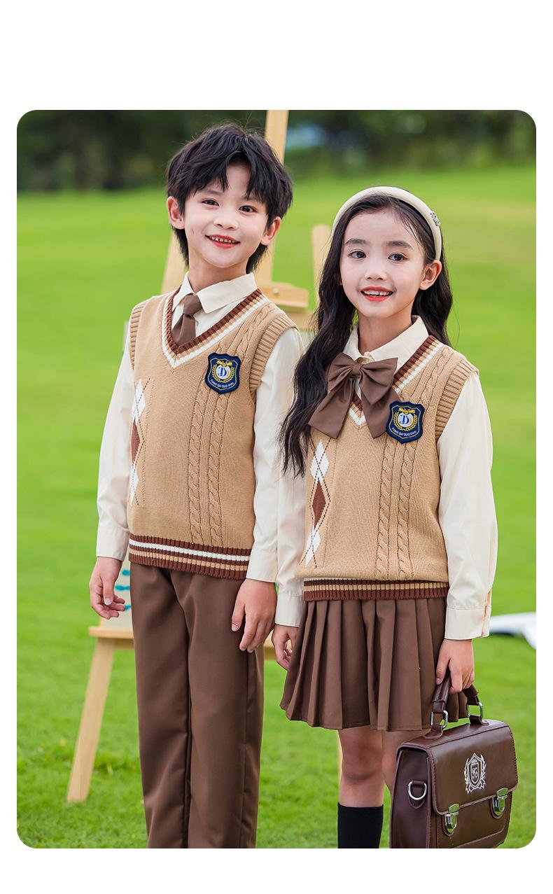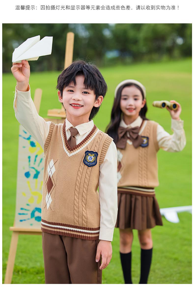 Uniforme escolar para estudiantes de primaria, traje de primavera y otoño, ropa escolar de jardín de infantes, ropa de clase para niños, chaleco de punto de estilo británico, vestido de traje.