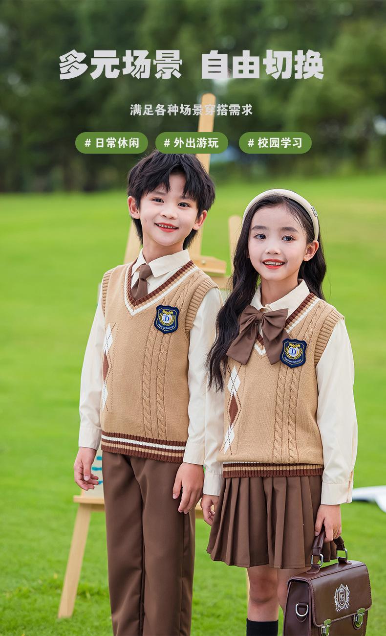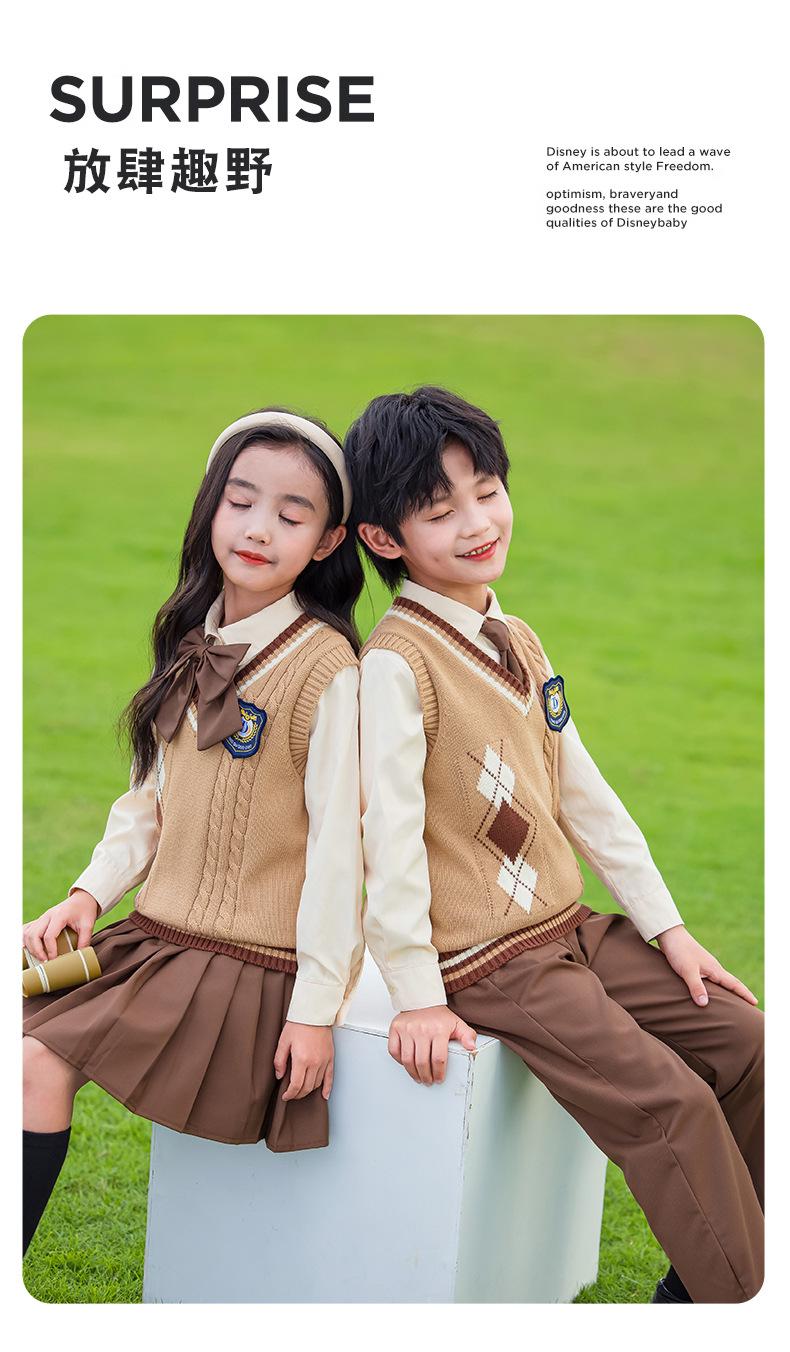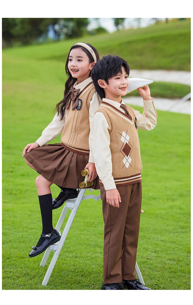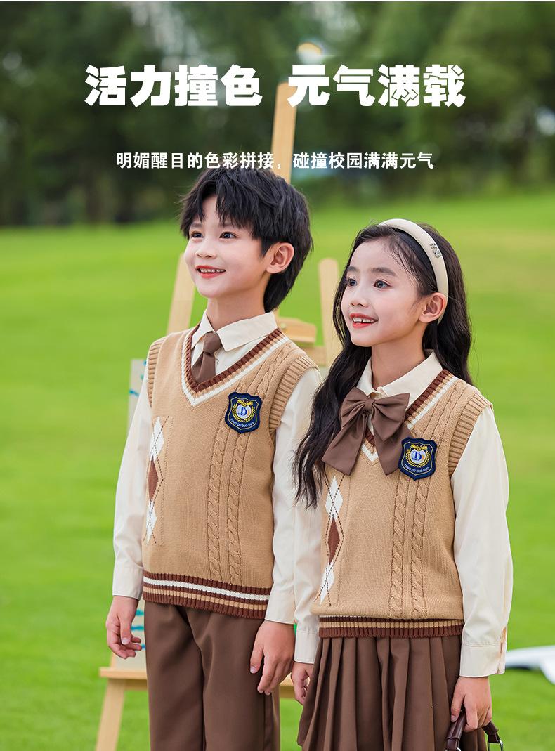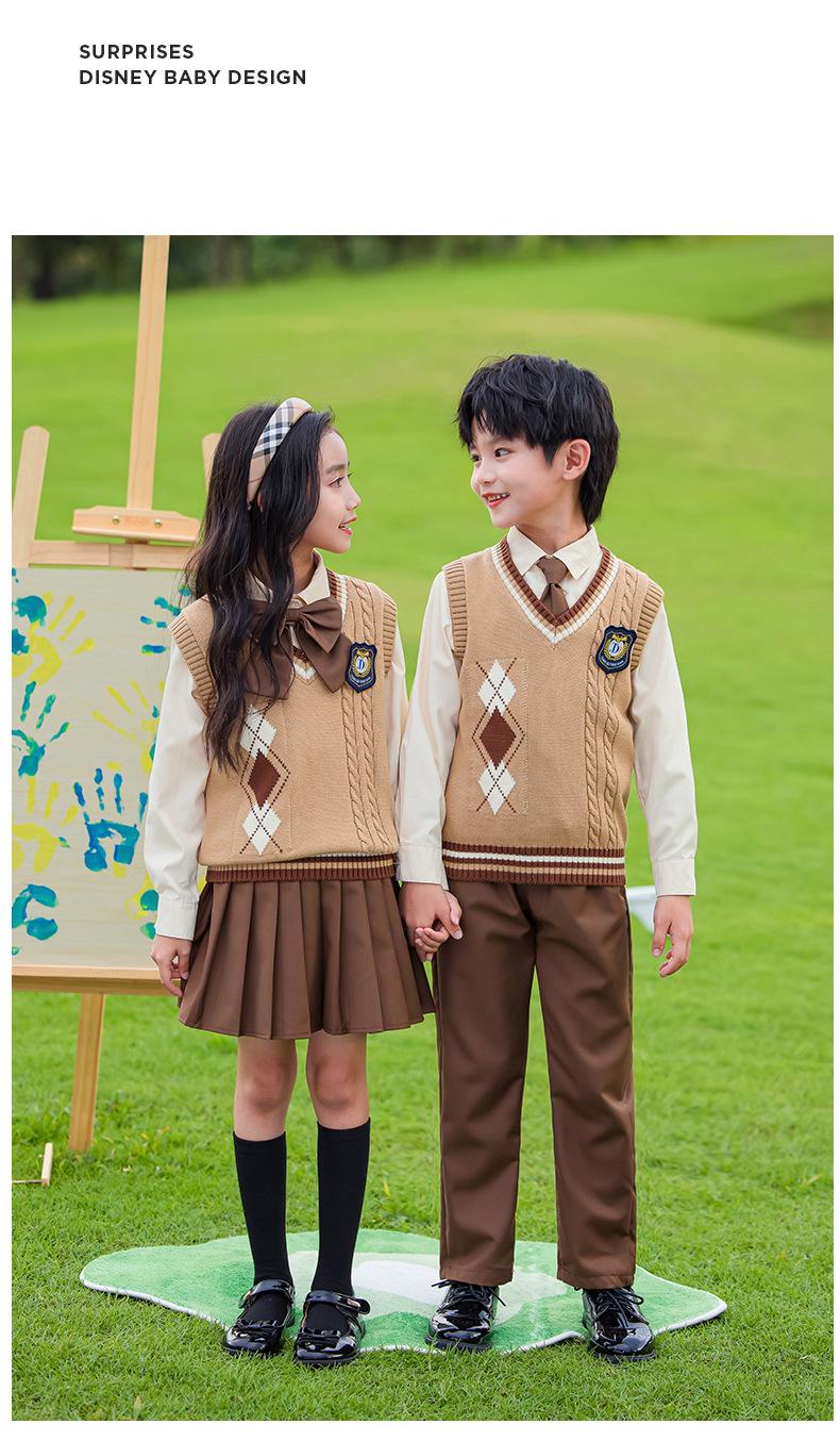 Uniforme escolar para estudiantes de primaria, traje de primavera y otoño, ropa escolar de jardín de infantes, ropa de clase para niños, chaleco de punto de estilo británico, vestido de traje.