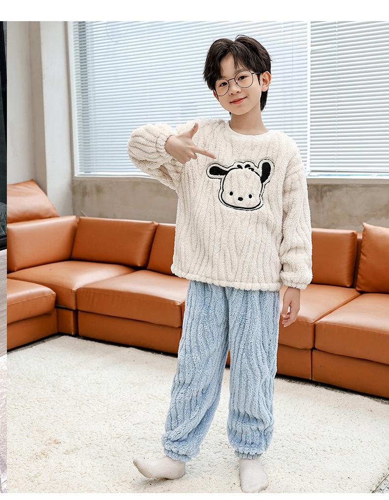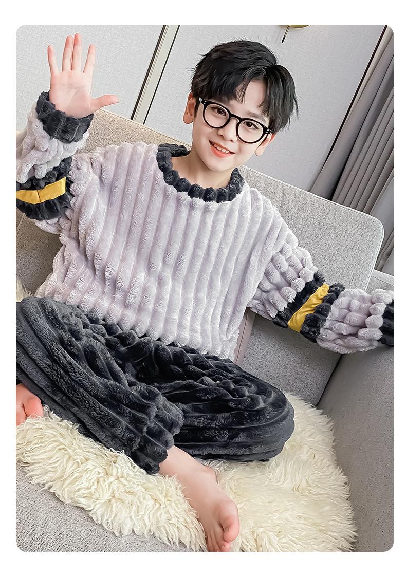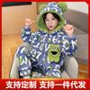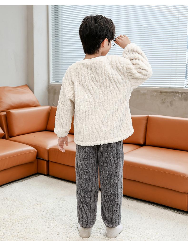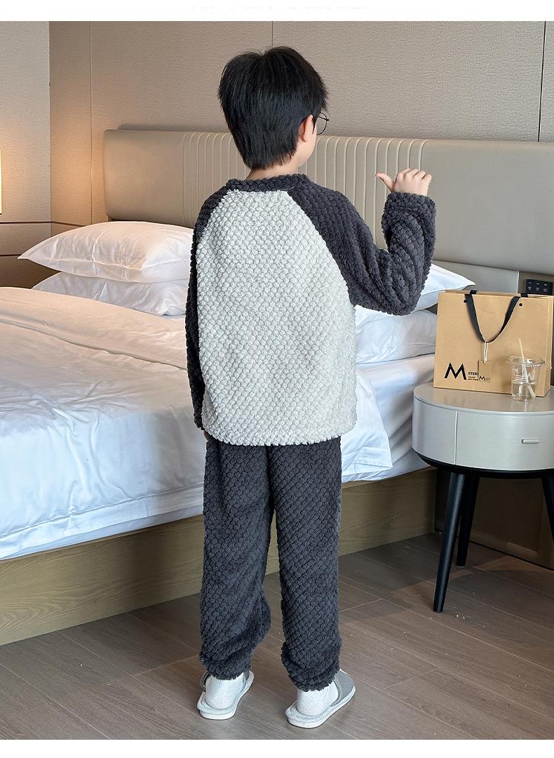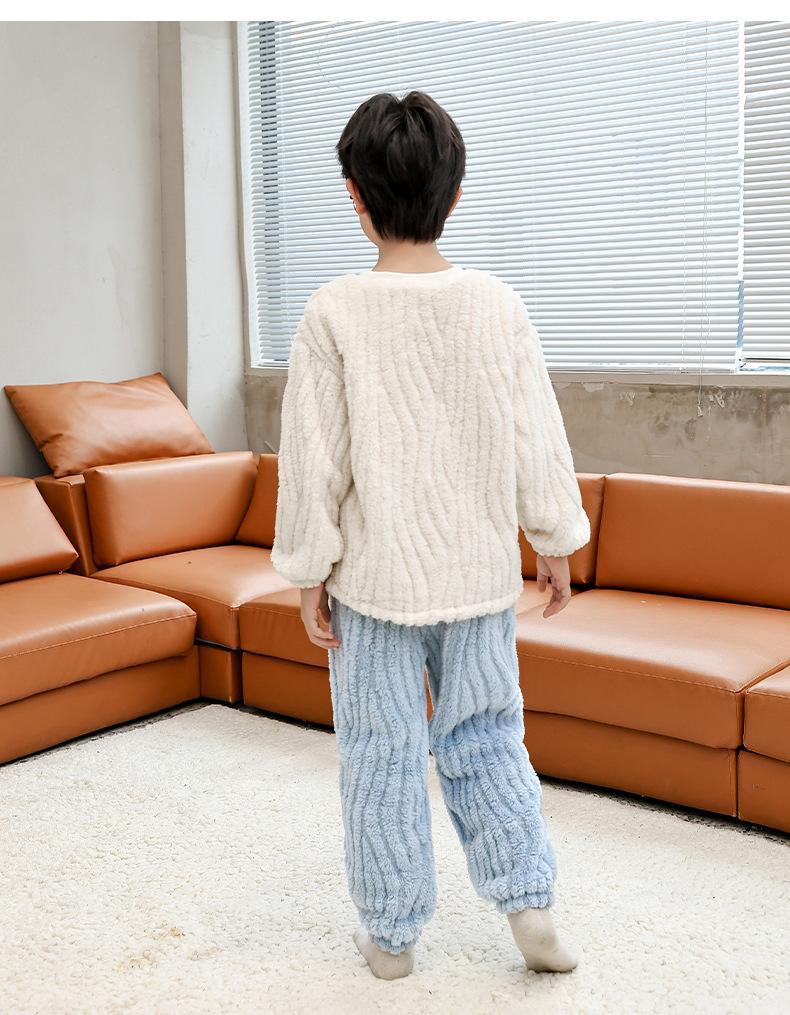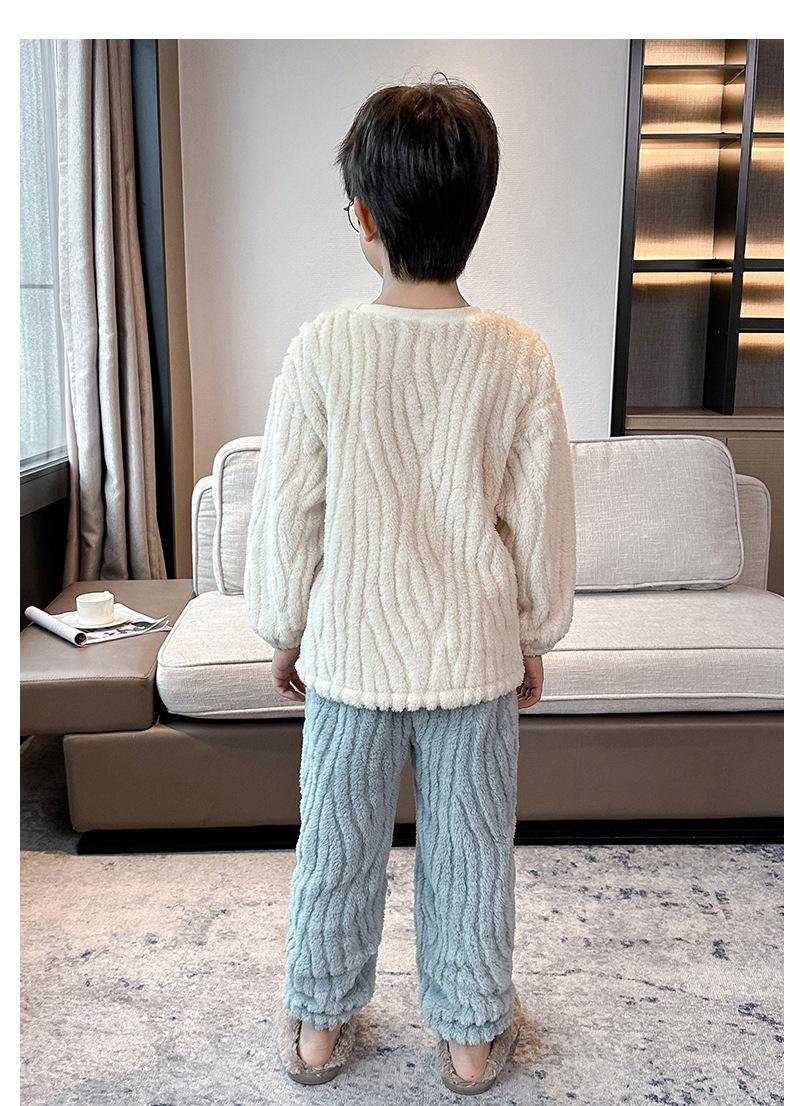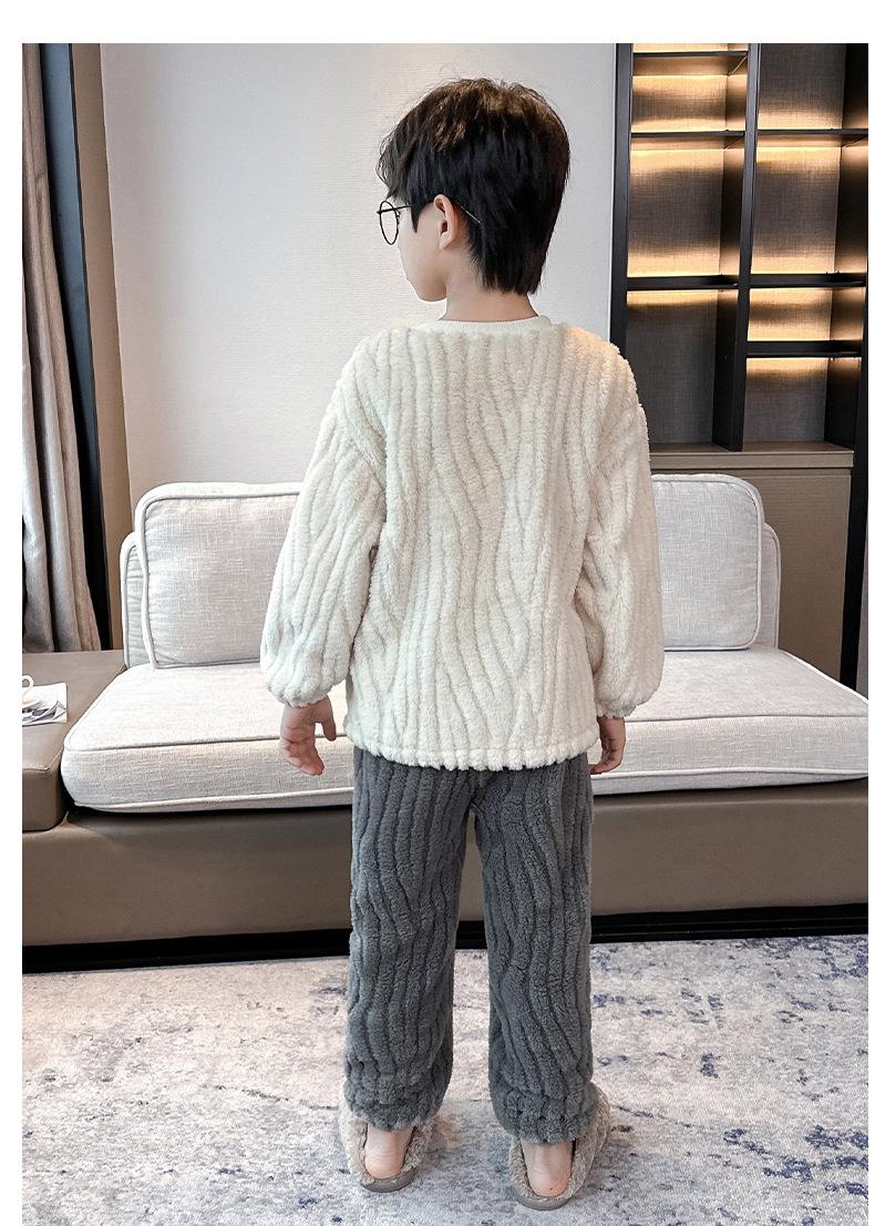 Traje de abrigo grueso y forrado de polar coral nuevo para otoño e invierno para niños, ropa de franela grande para el hogar para uso exterior