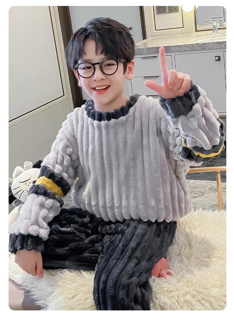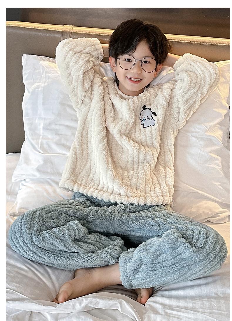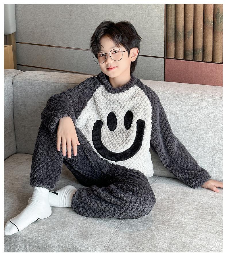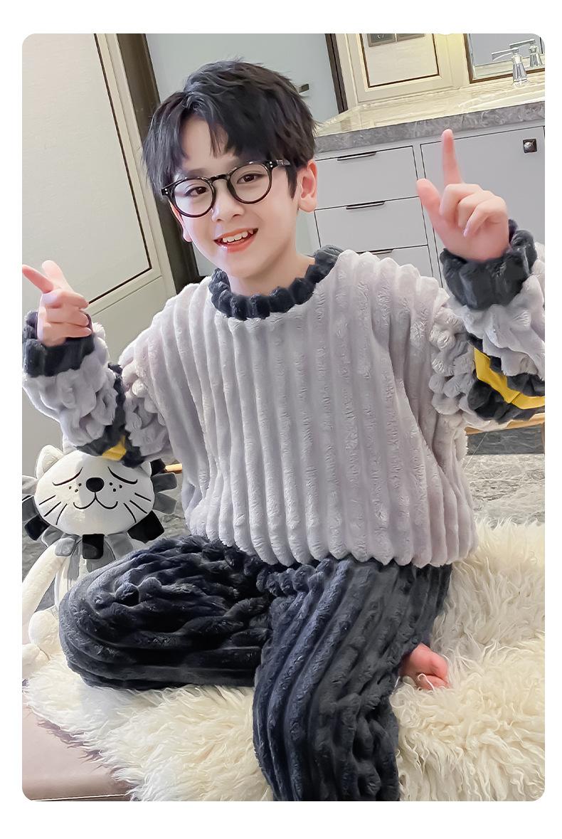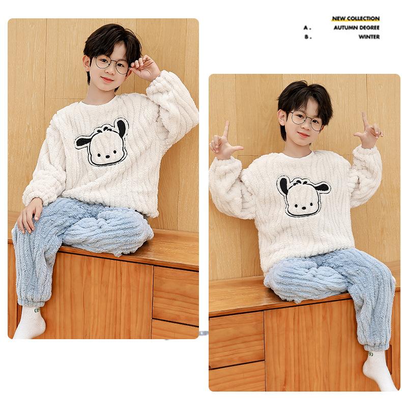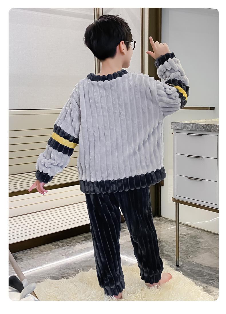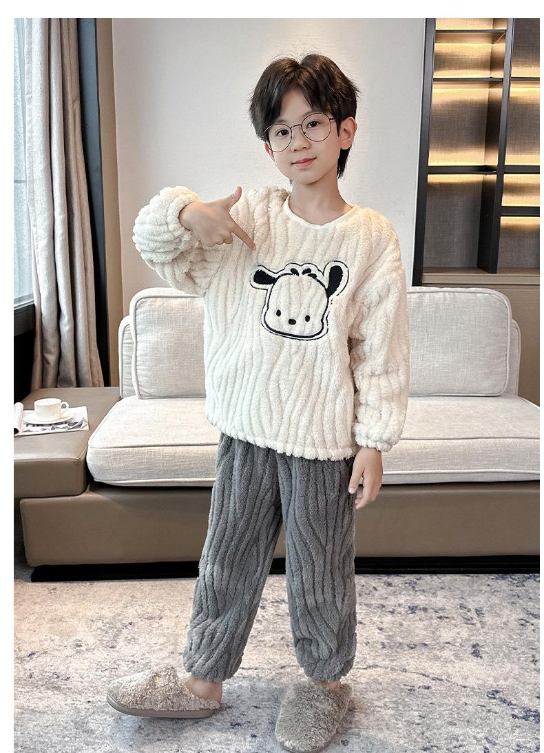 Traje de abrigo grueso y forrado de polar coral nuevo para otoño e invierno para niños, ropa de franela grande para el hogar para uso exterior