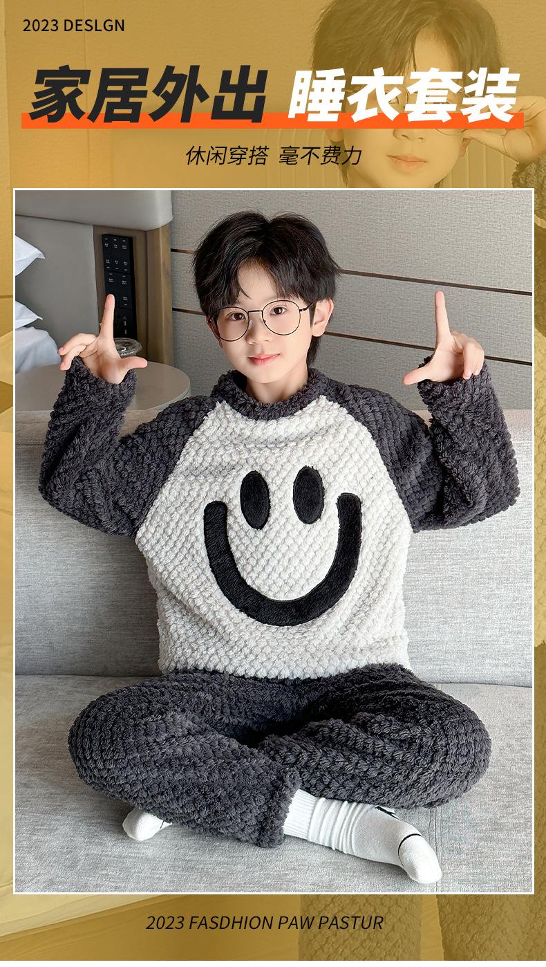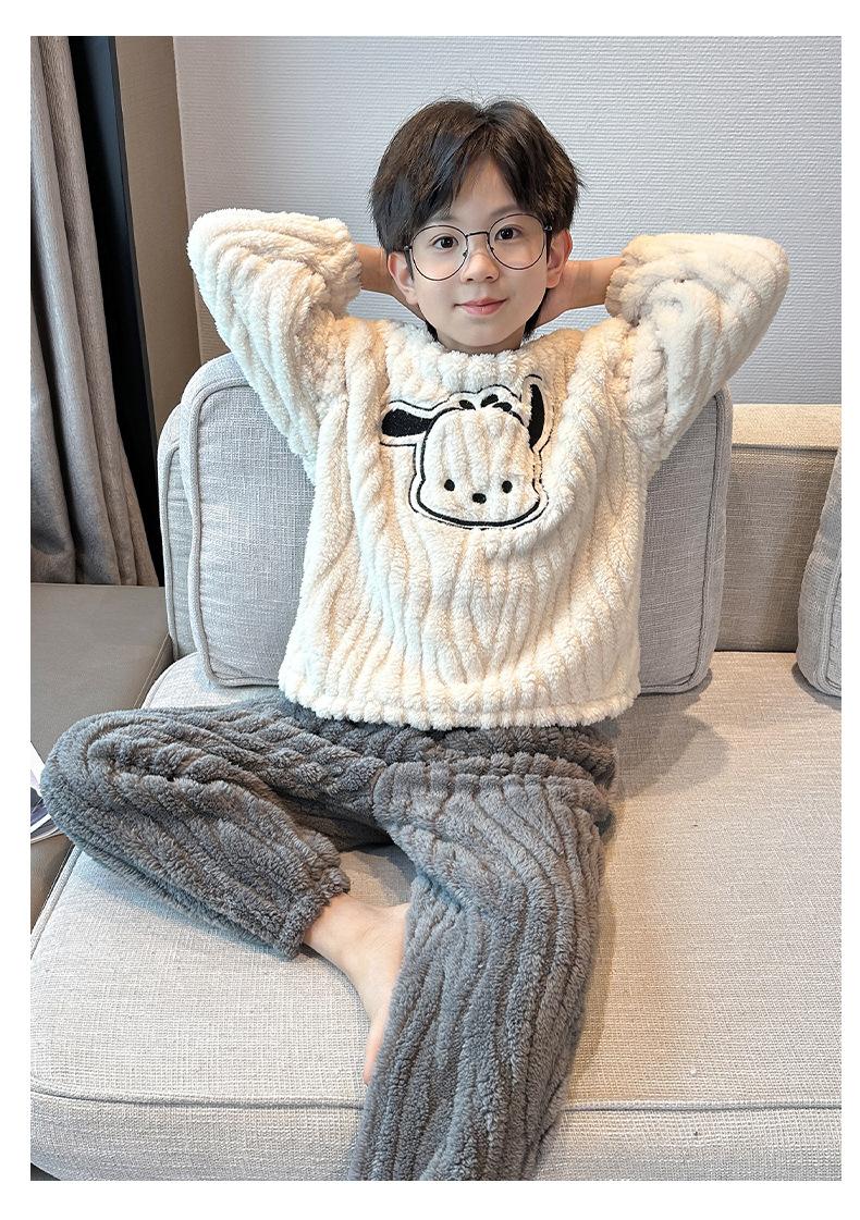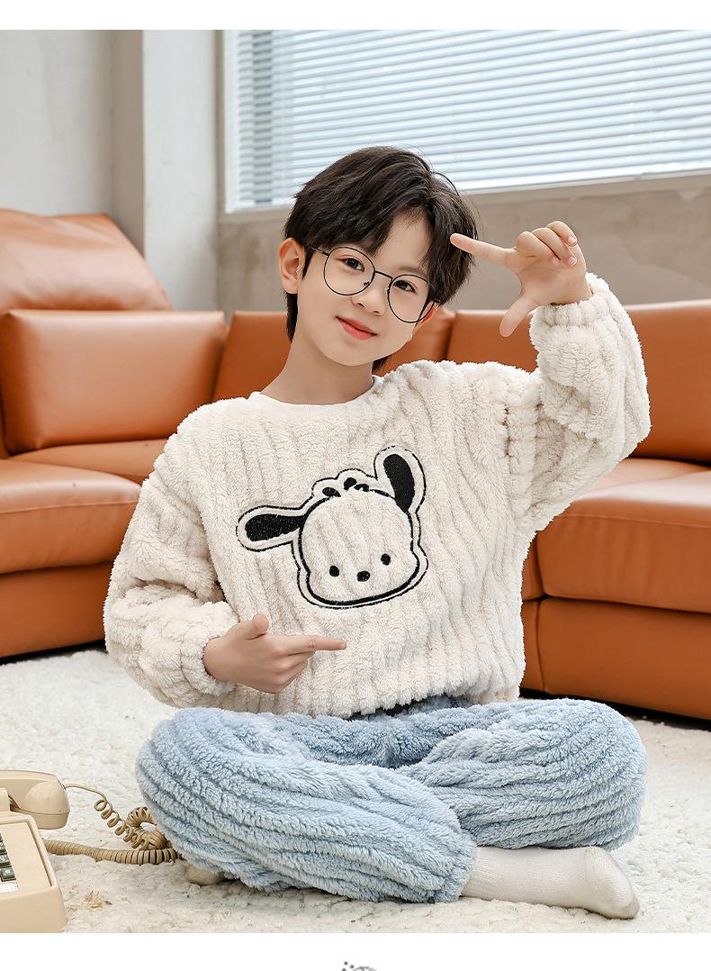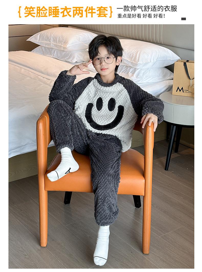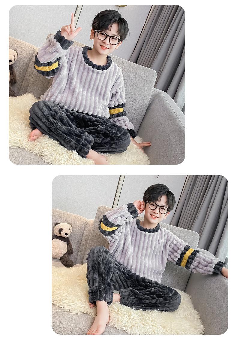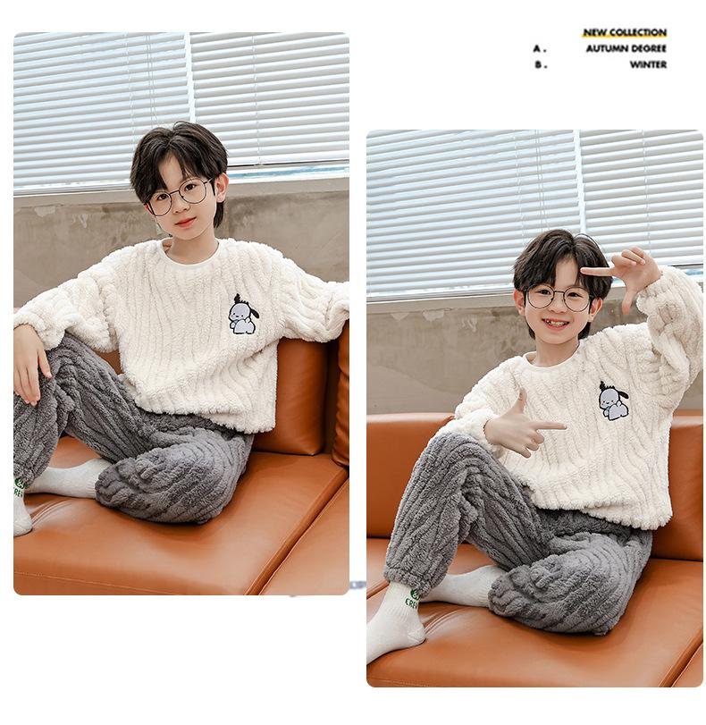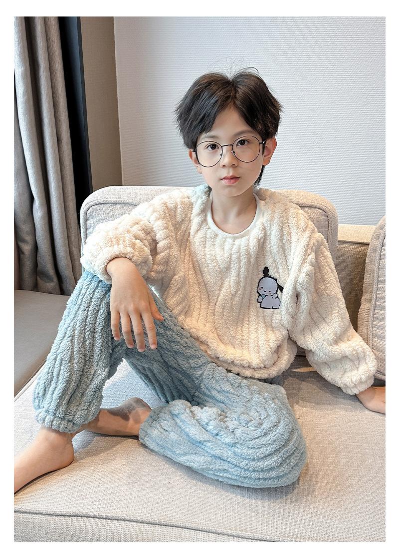 Traje de abrigo grueso y forrado de polar coral nuevo para otoño e invierno para niños, ropa de franela grande para el hogar para uso exterior