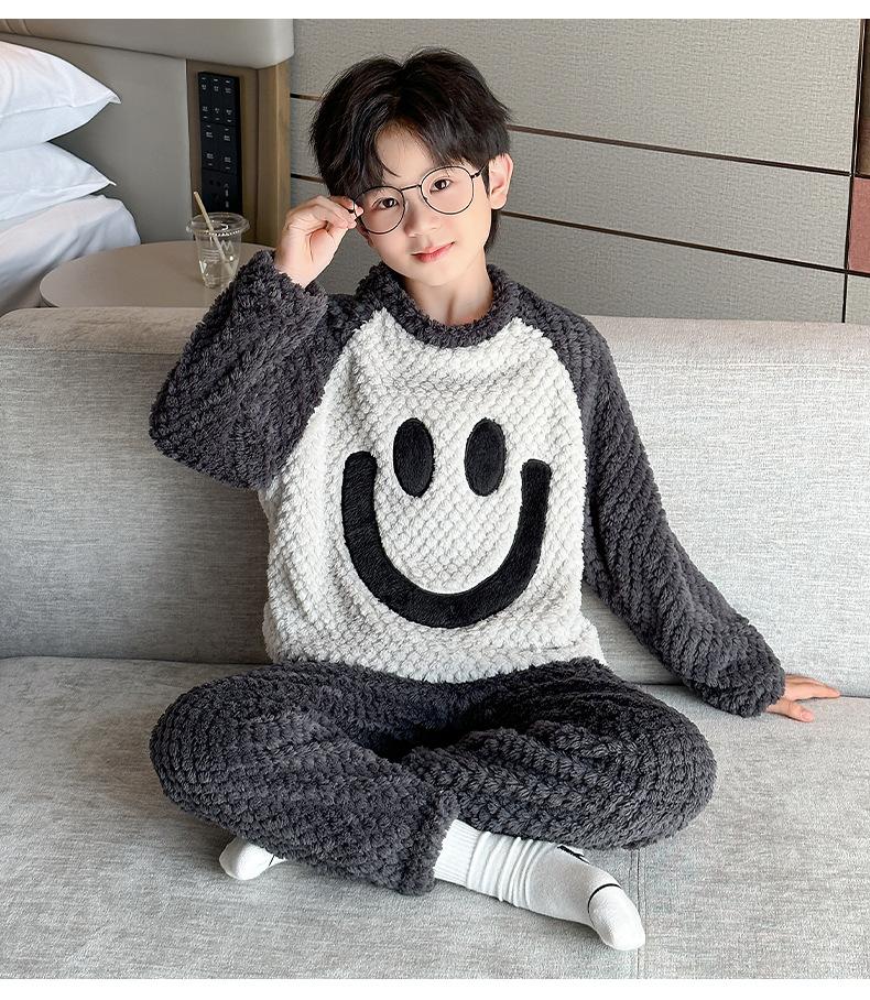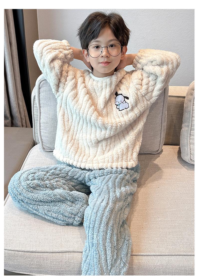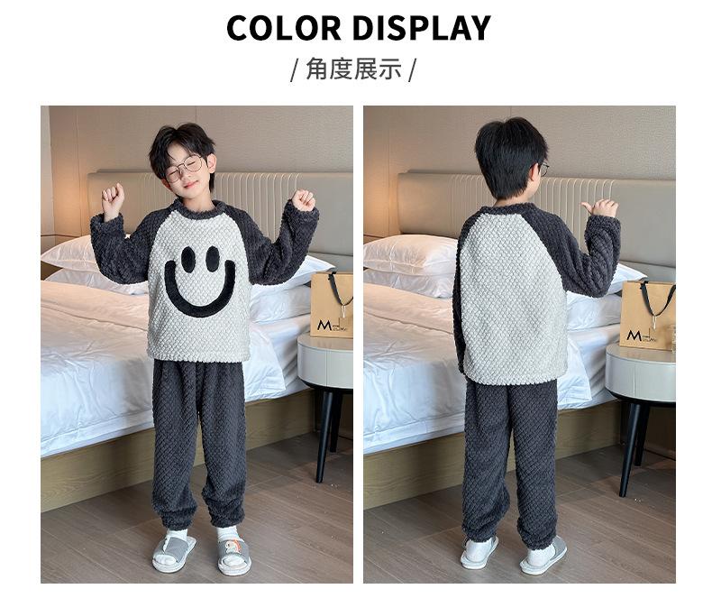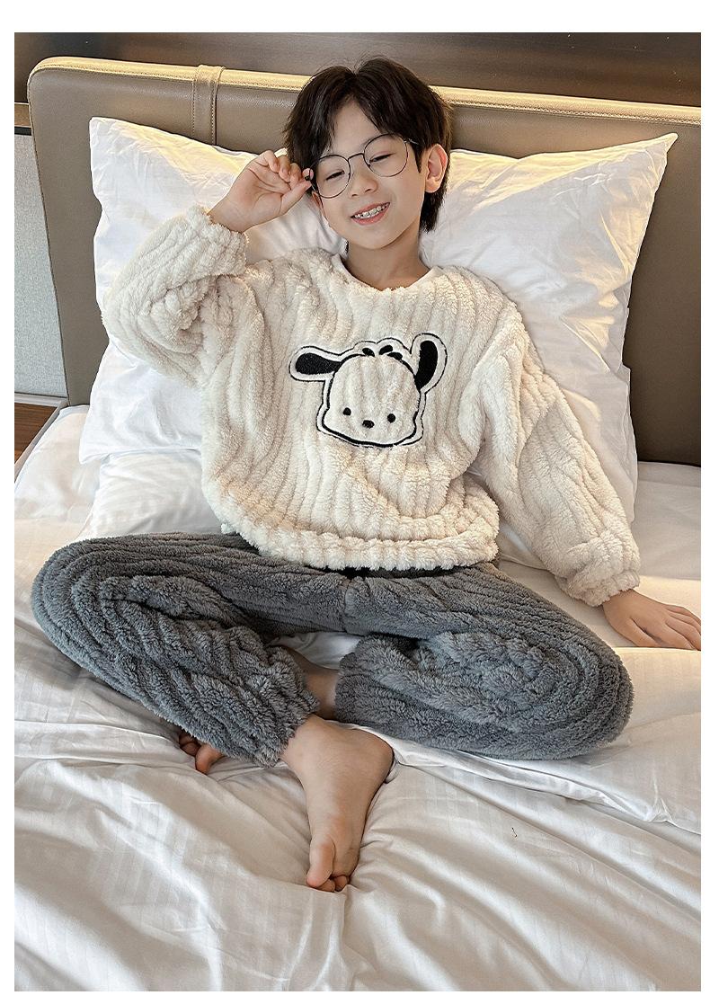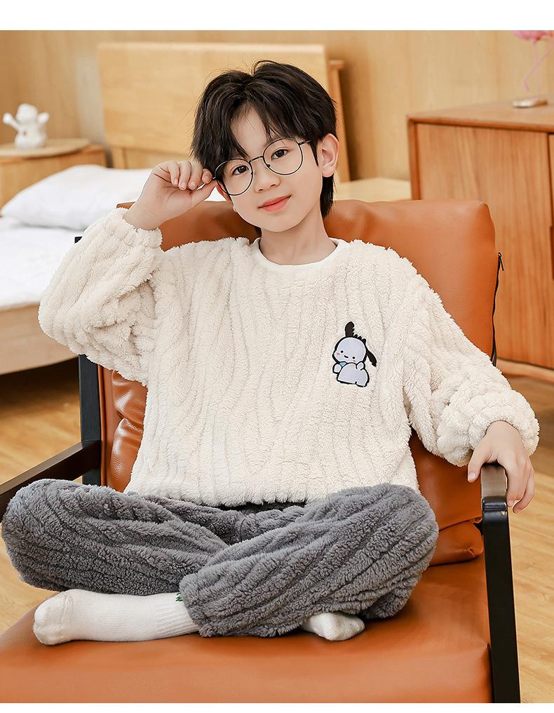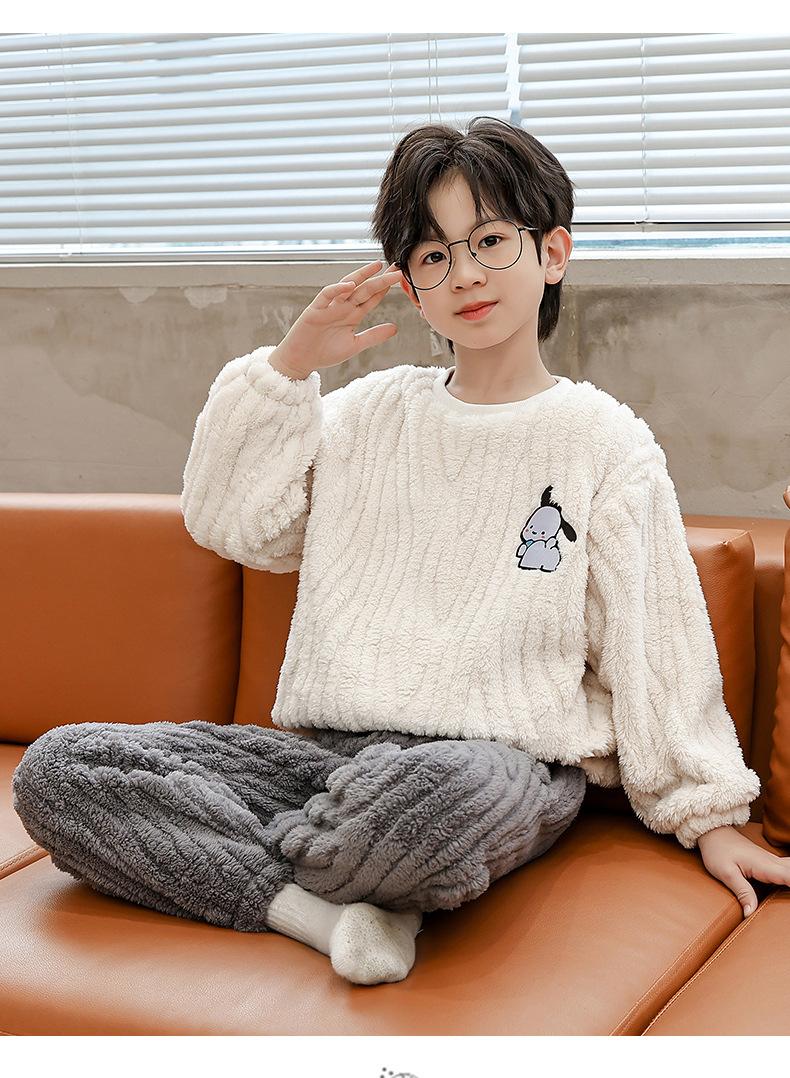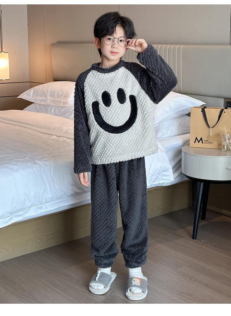 Traje de abrigo grueso y forrado de polar coral nuevo para otoño e invierno para niños, ropa de franela grande para el hogar para uso exterior