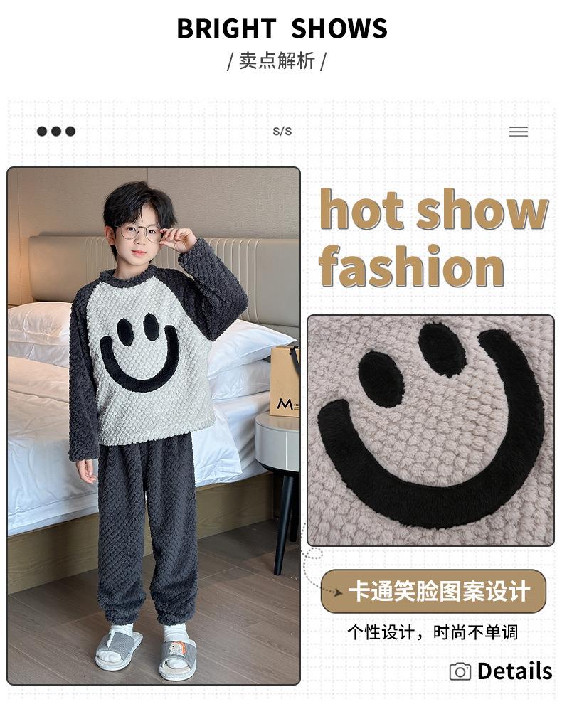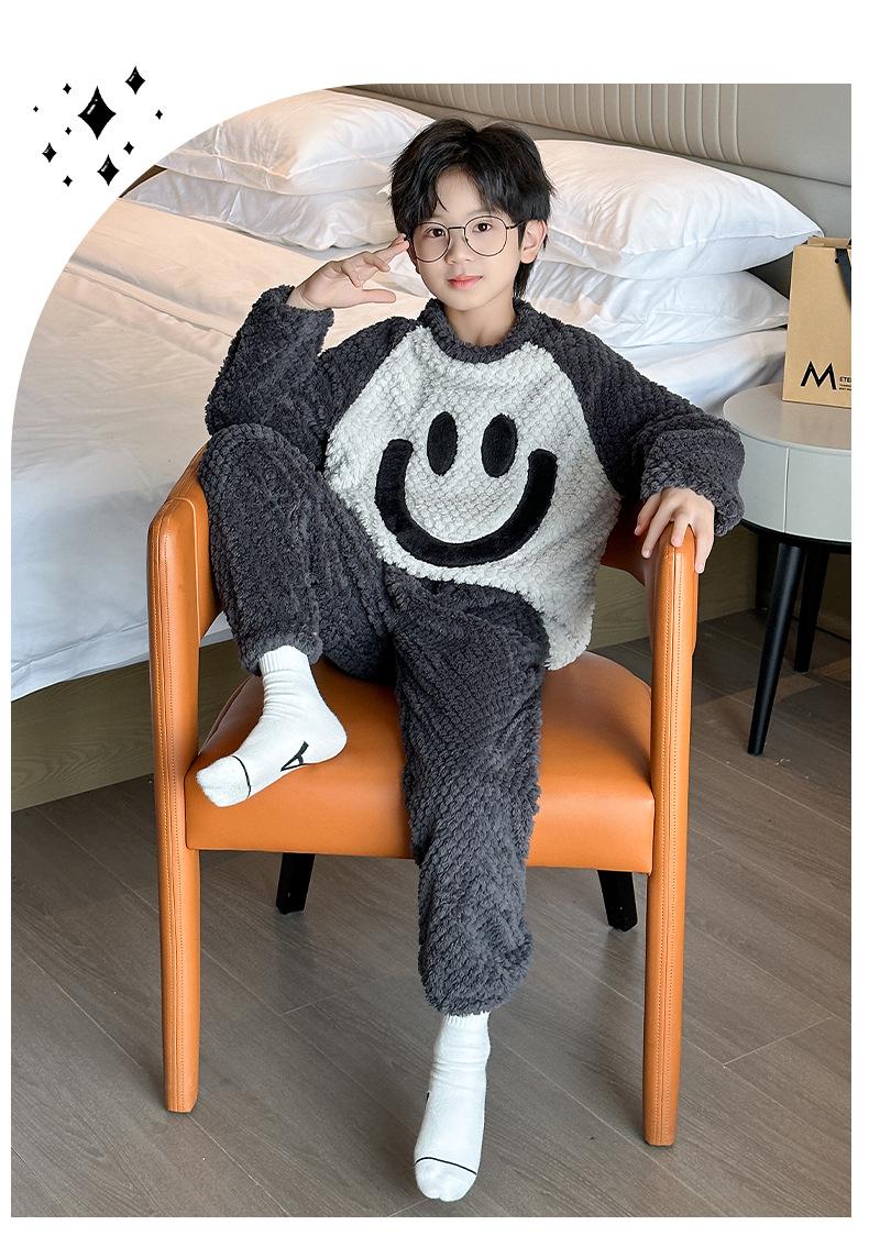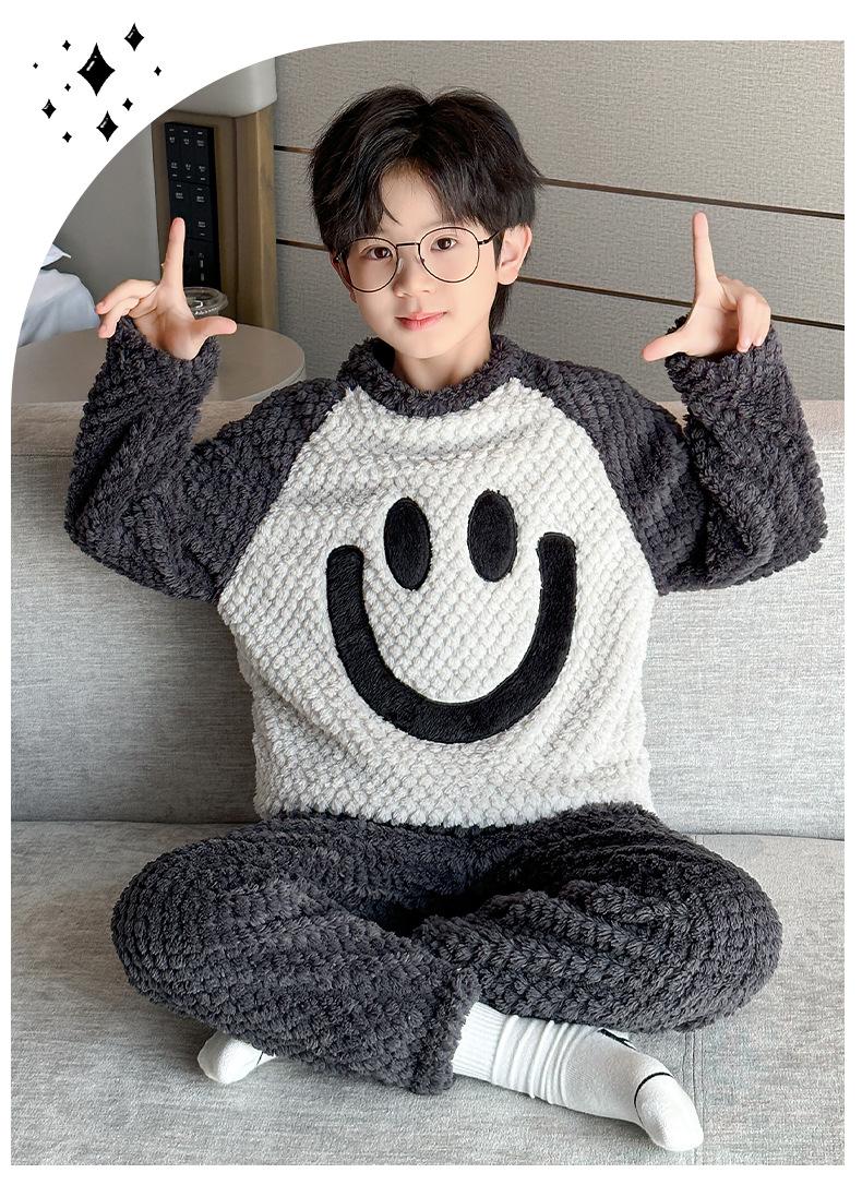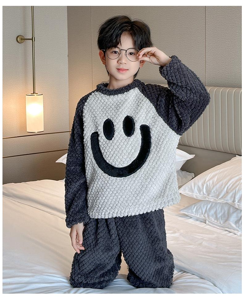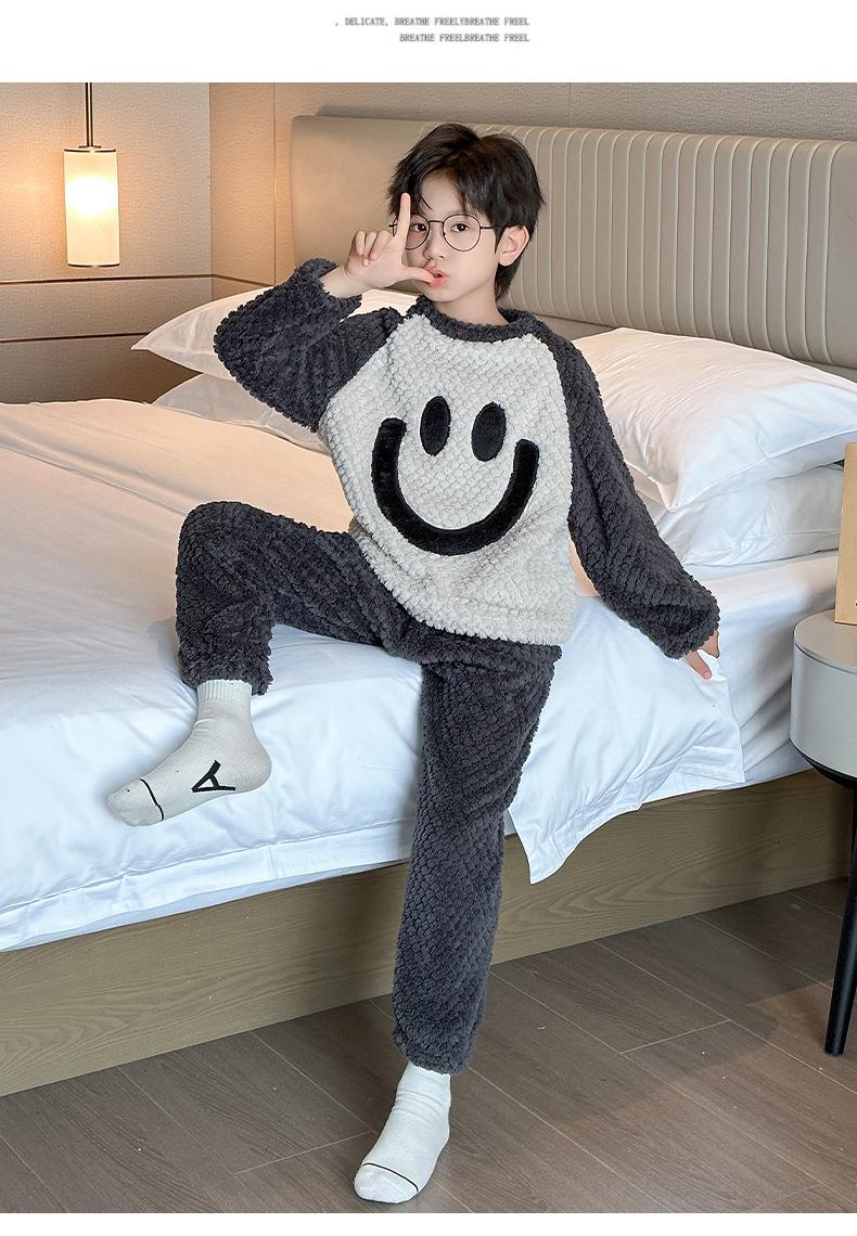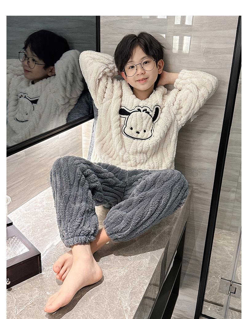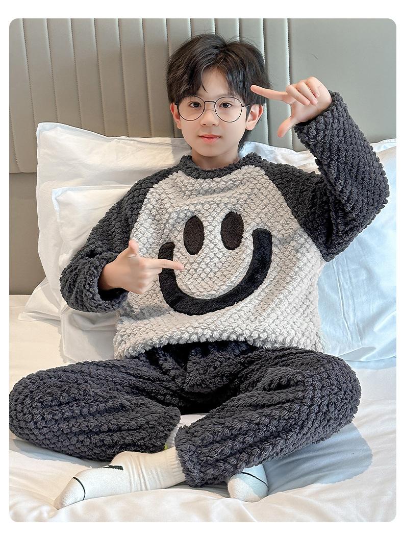 Traje de abrigo grueso y forrado de polar coral nuevo para otoño e invierno para niños, ropa de franela grande para el hogar para uso exterior