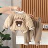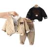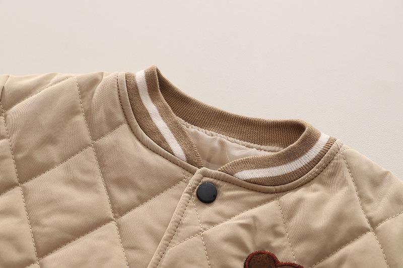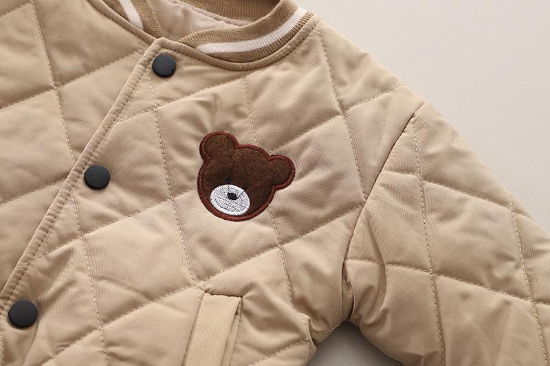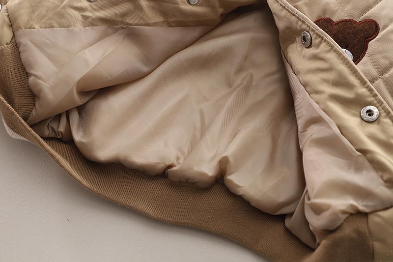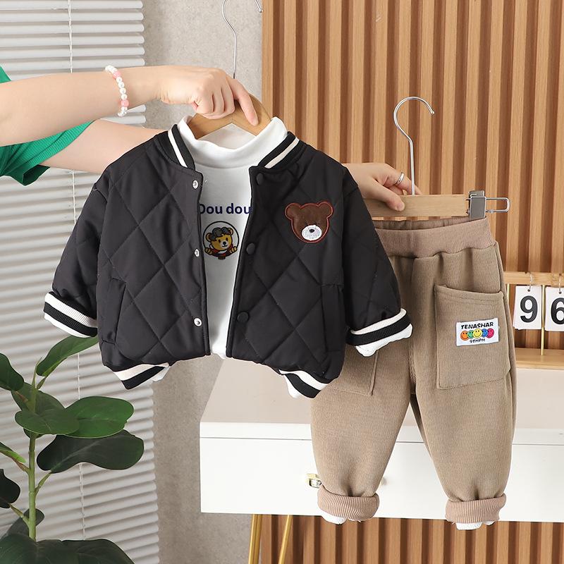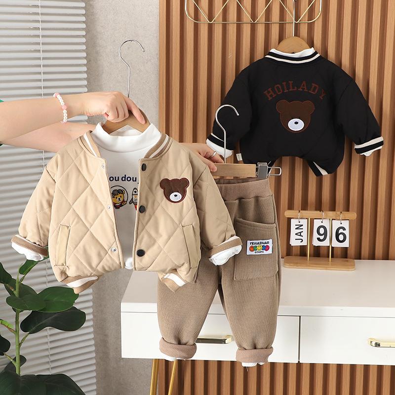 2024 adelanto ropa infantil invierno niños y niñas cabeza de oso chamarra de béisbol chamarra acolchada de algodón cálida acolchada de algodón ropa infantil conjunto de tres piezas lote