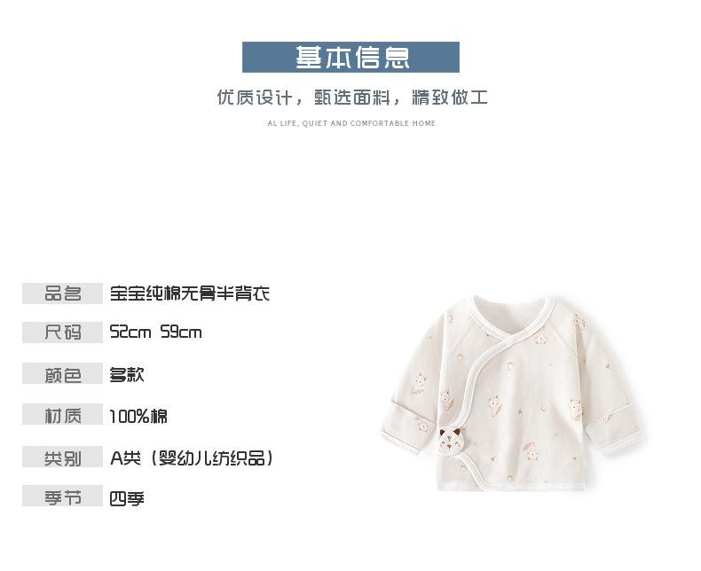 Ropa interior de media espalda para bebé recién nacido, sin huesos, de algodón, para primavera y otoño, para las cuatro estaciones, con velcro, para bebé