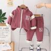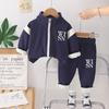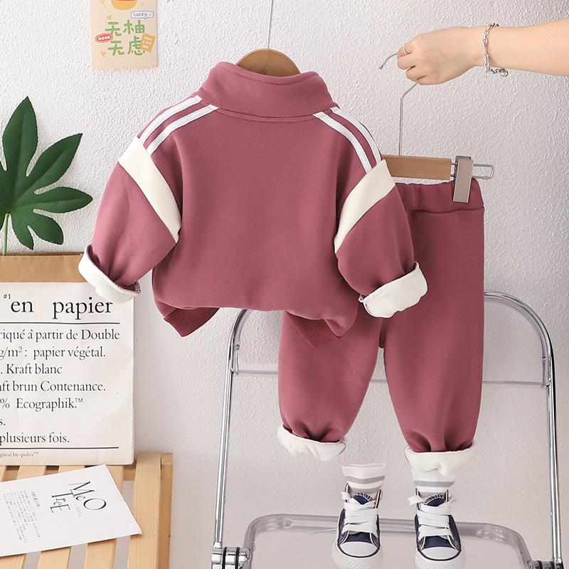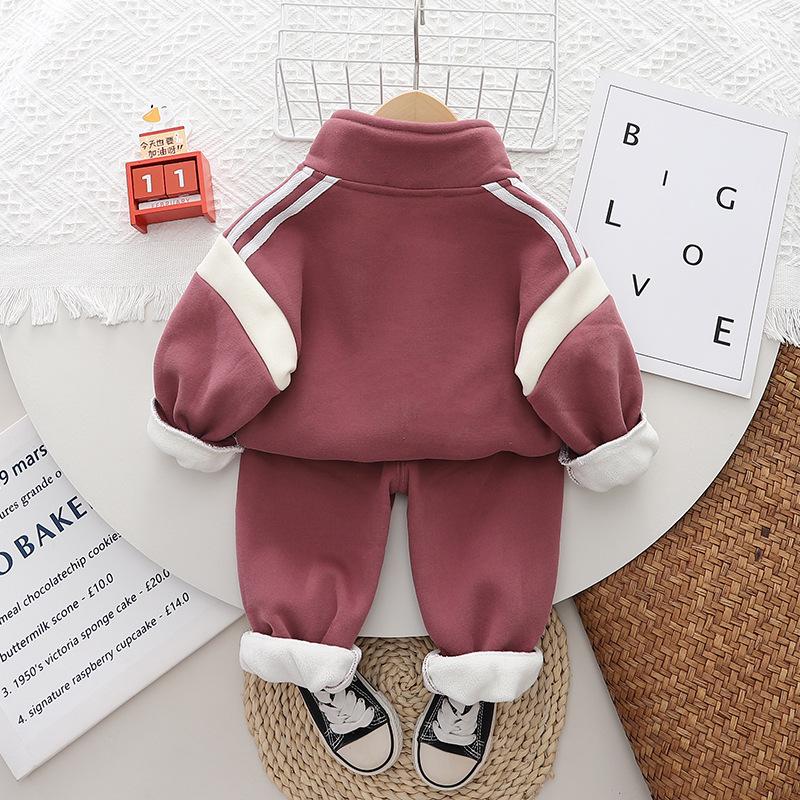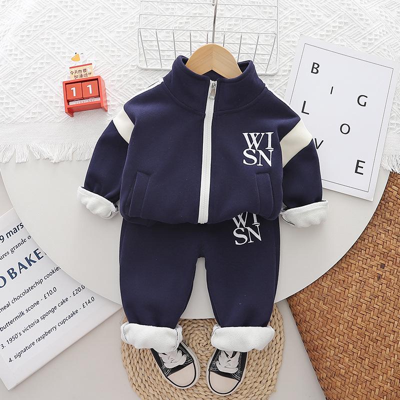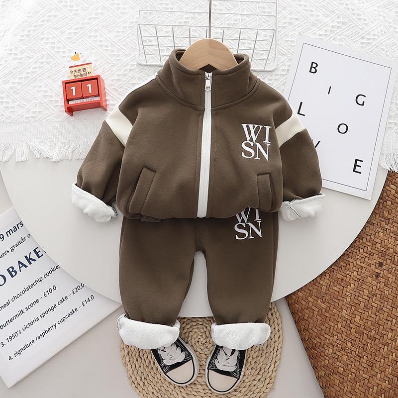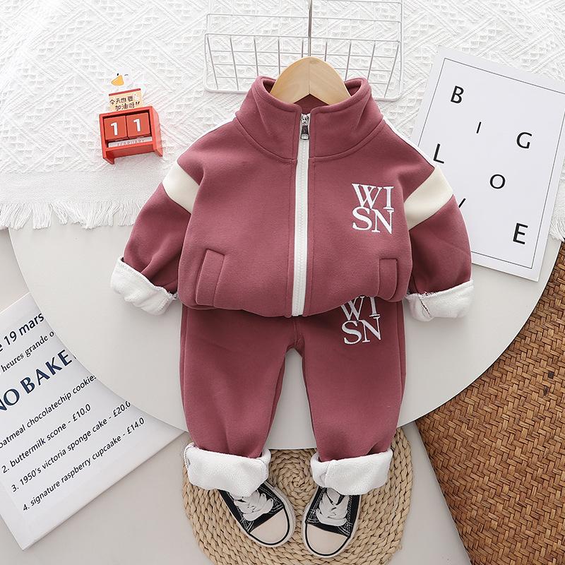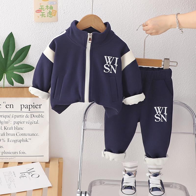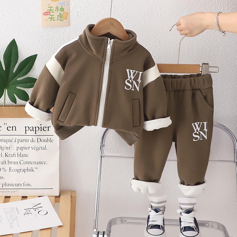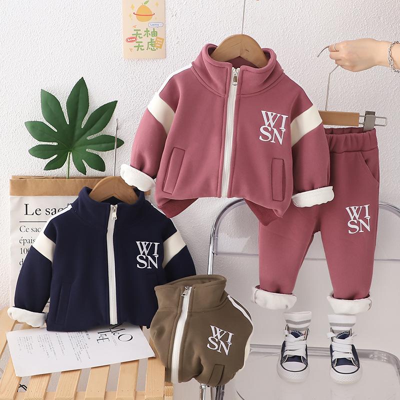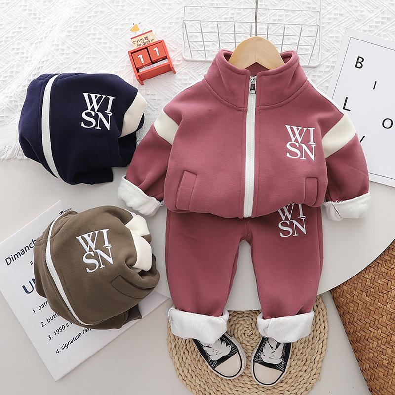 Ropa nueva para niños otoño e invierno 2024 1-3 años niños y niñas cárdigan casual con cremallera y forro polar de dos piezas ropa de bebé para otoño profundo