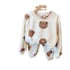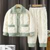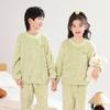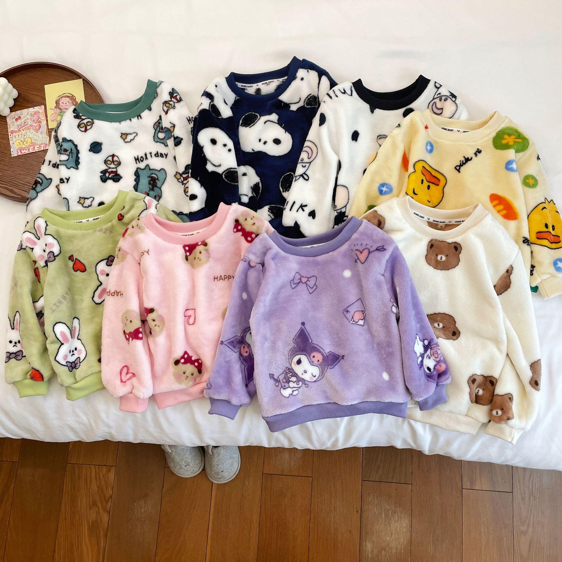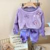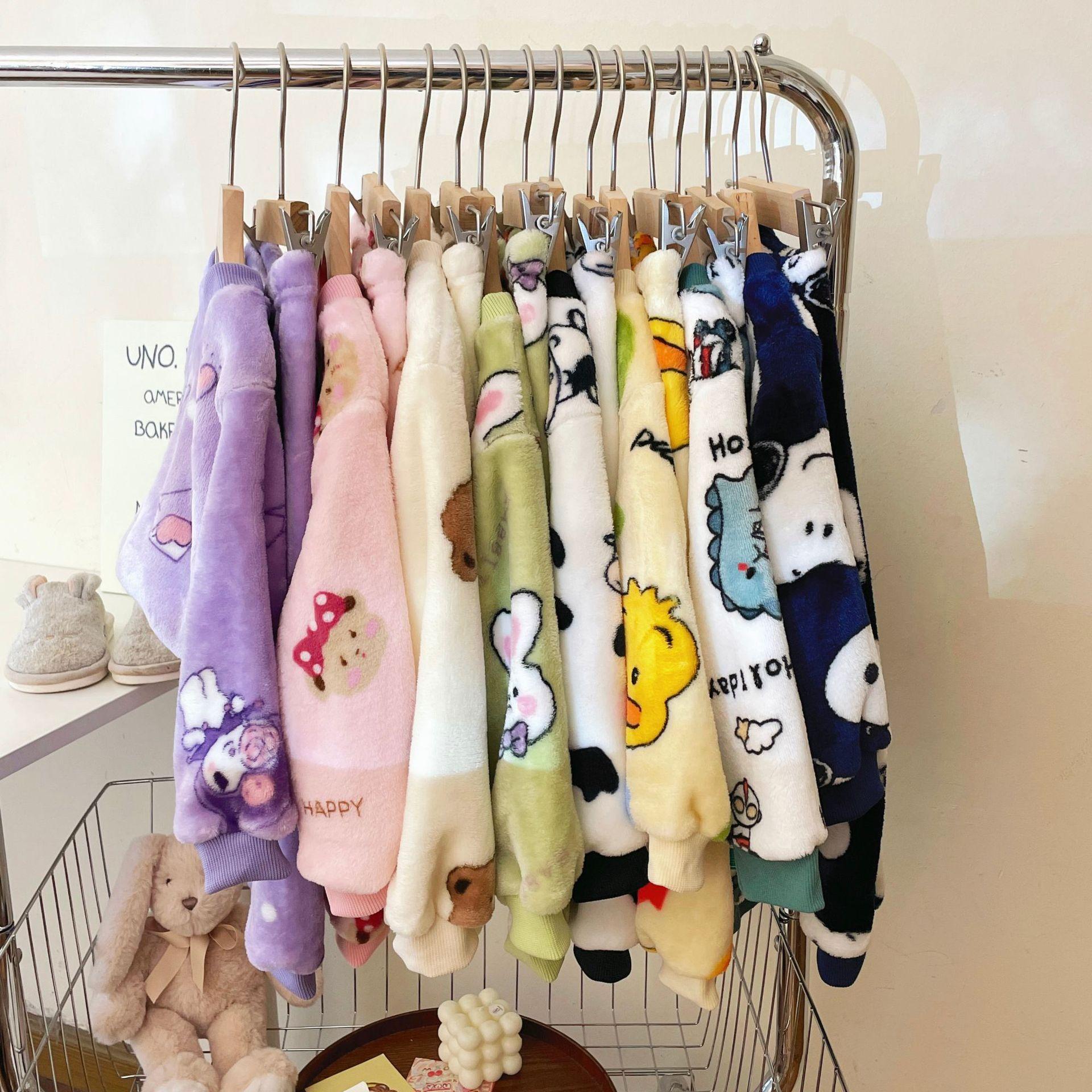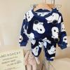 Pijamas de franela para niños y niñas, de terciopelo coral, tallas medianas y grandes, con dibujos animados, cuello redondo, para el hogar, con forro polar grueso.