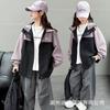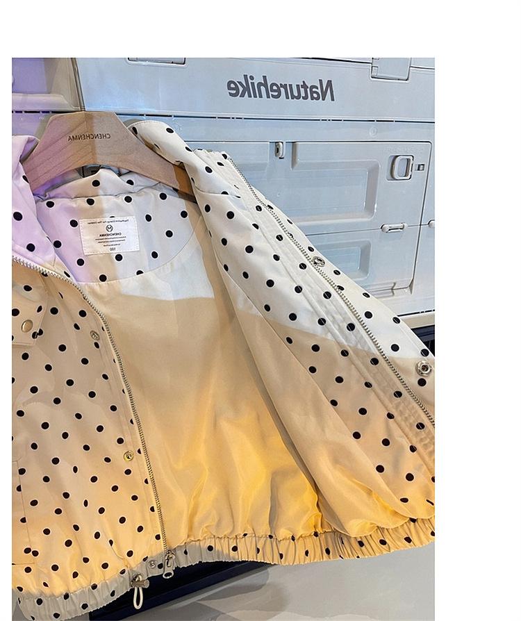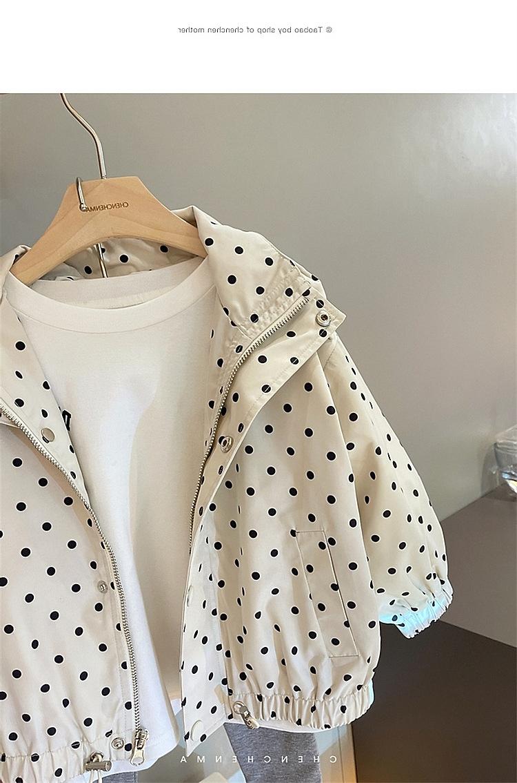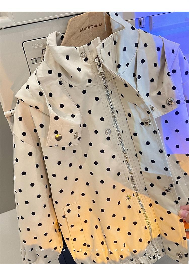 Chaqueta con capucha y estampado de lunares para niña, estilo coreano, cortavientos, de béisbol, para otoño de 2024