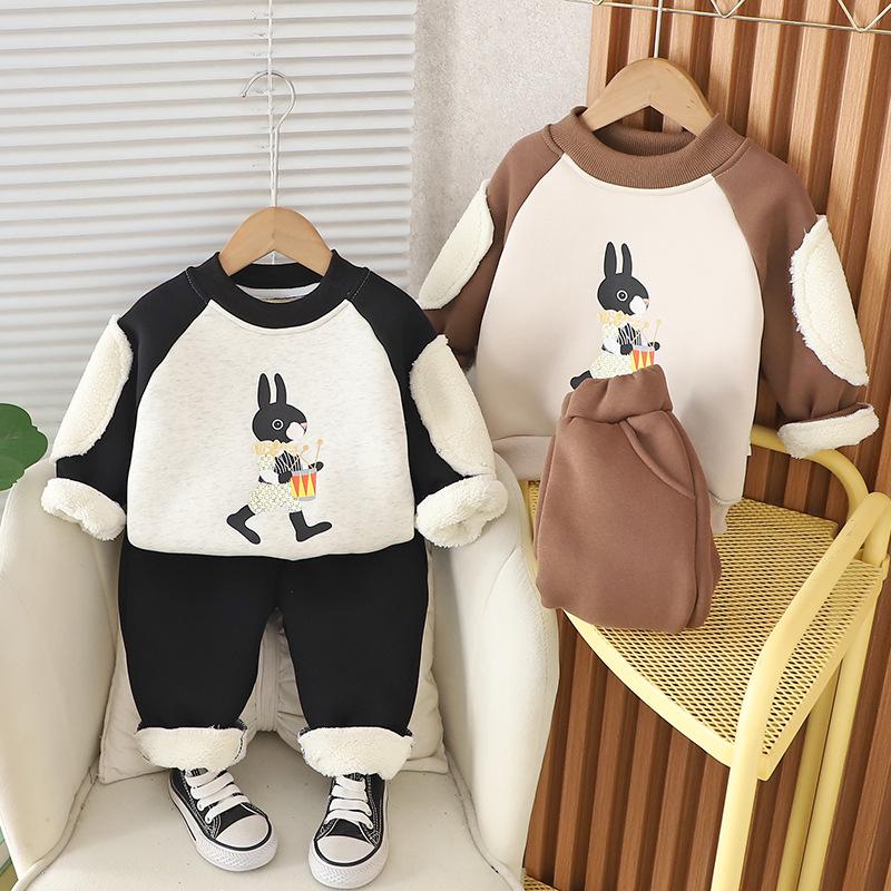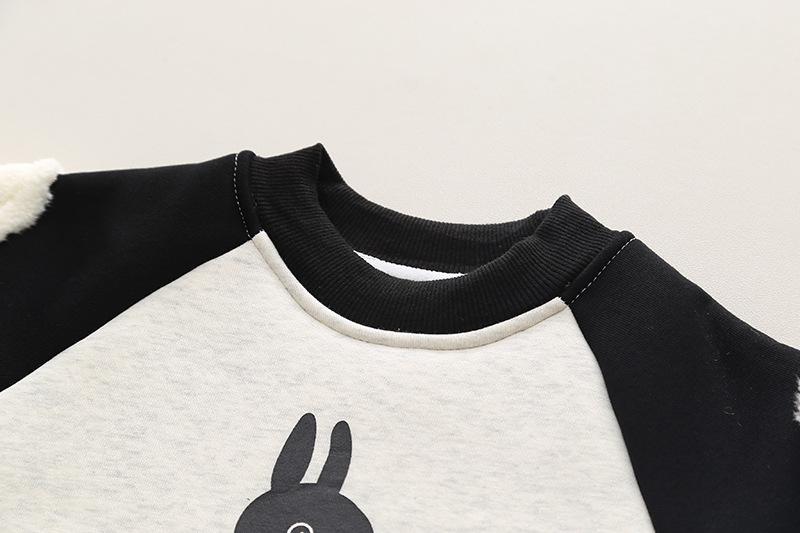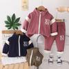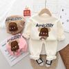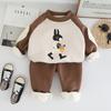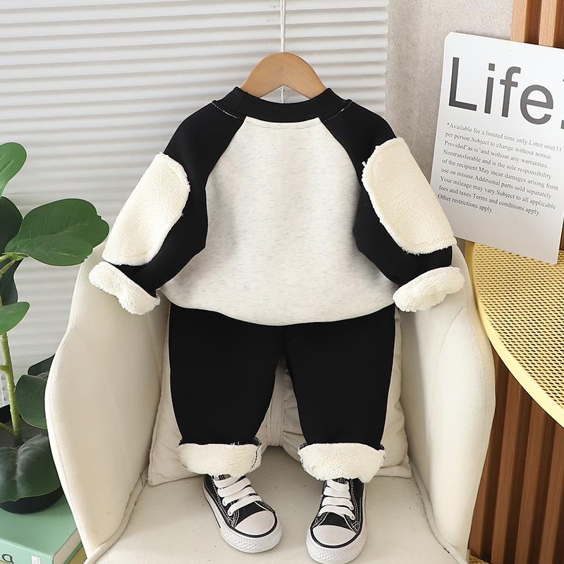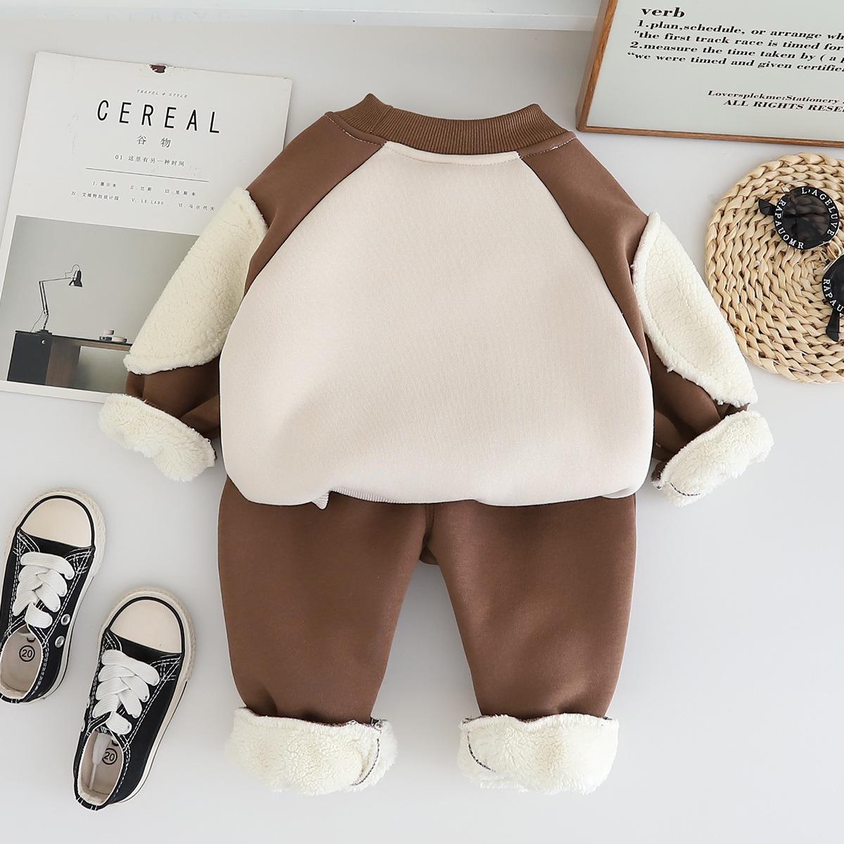 2024 otoño e invierno nuevo traje de suéter para niños con forro polar 1-5 años bebé niños y niñas casual manga en contraste ropa gruesa de invierno