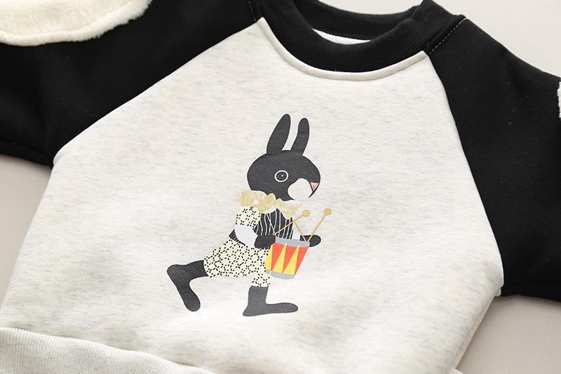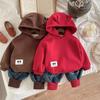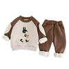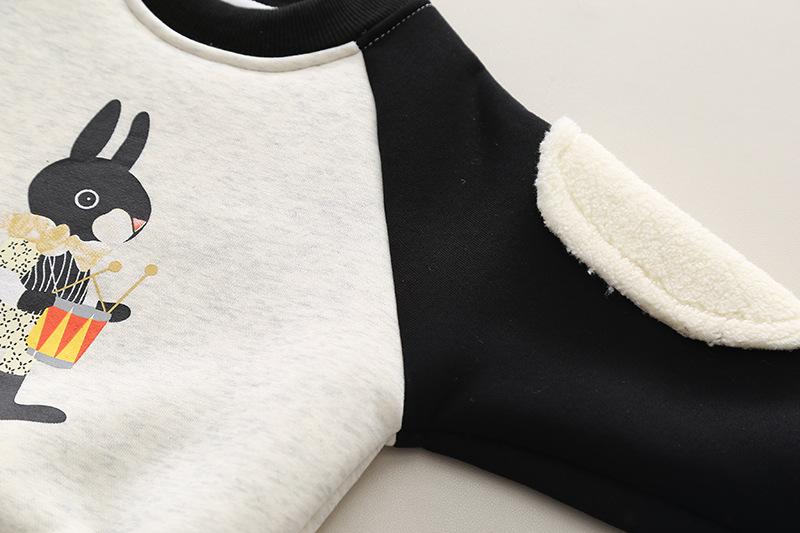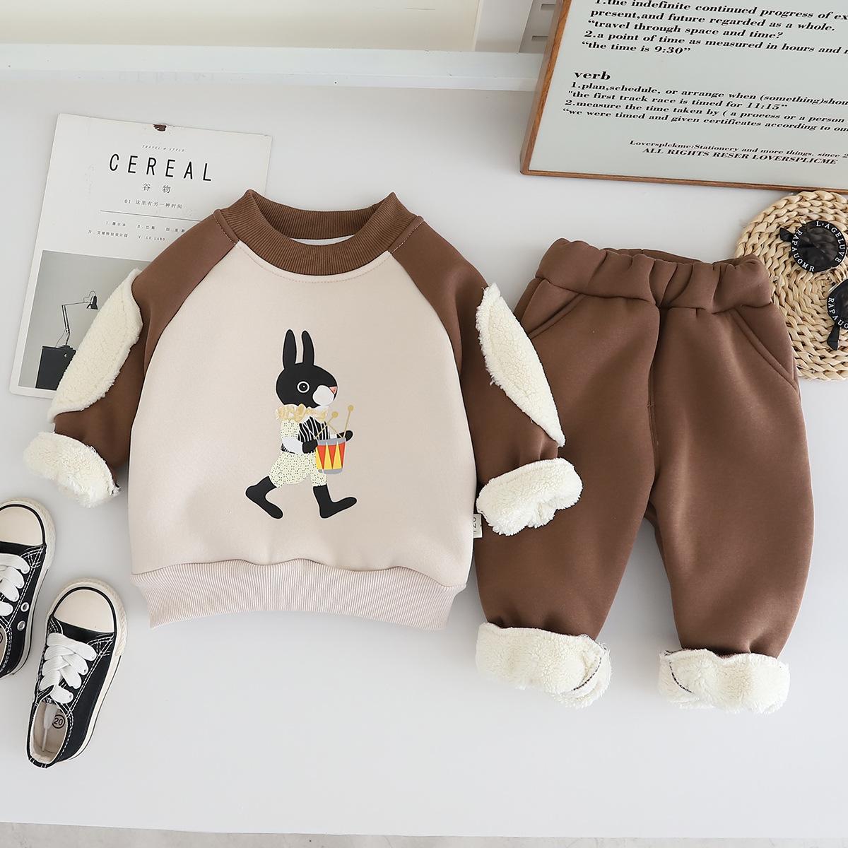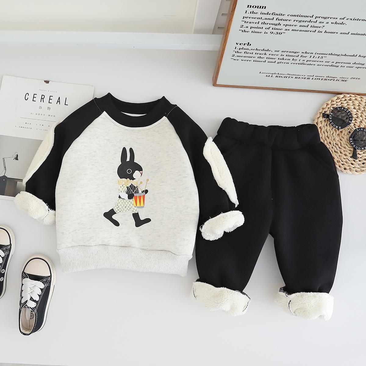 2024 otoño e invierno nuevo traje de suéter para niños con forro polar 1-5 años bebé niños y niñas casual manga en contraste ropa gruesa de invierno