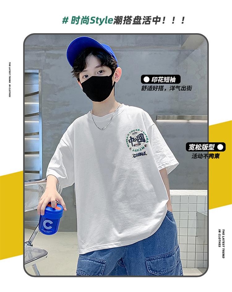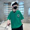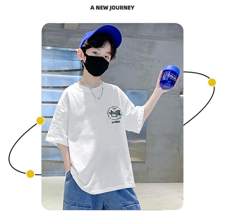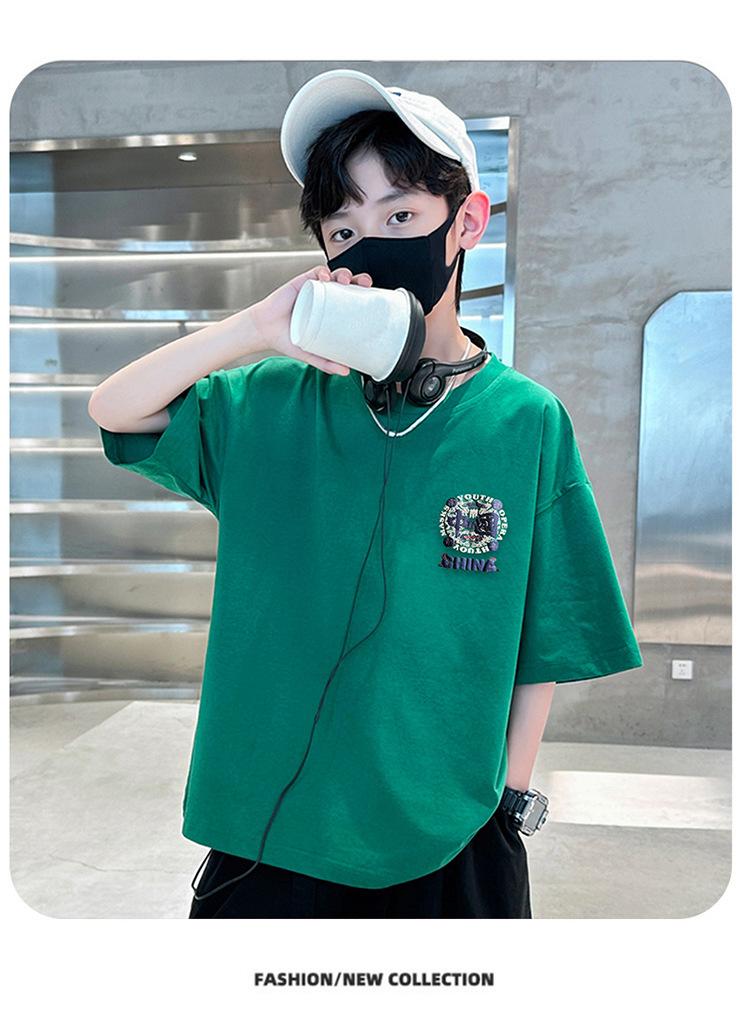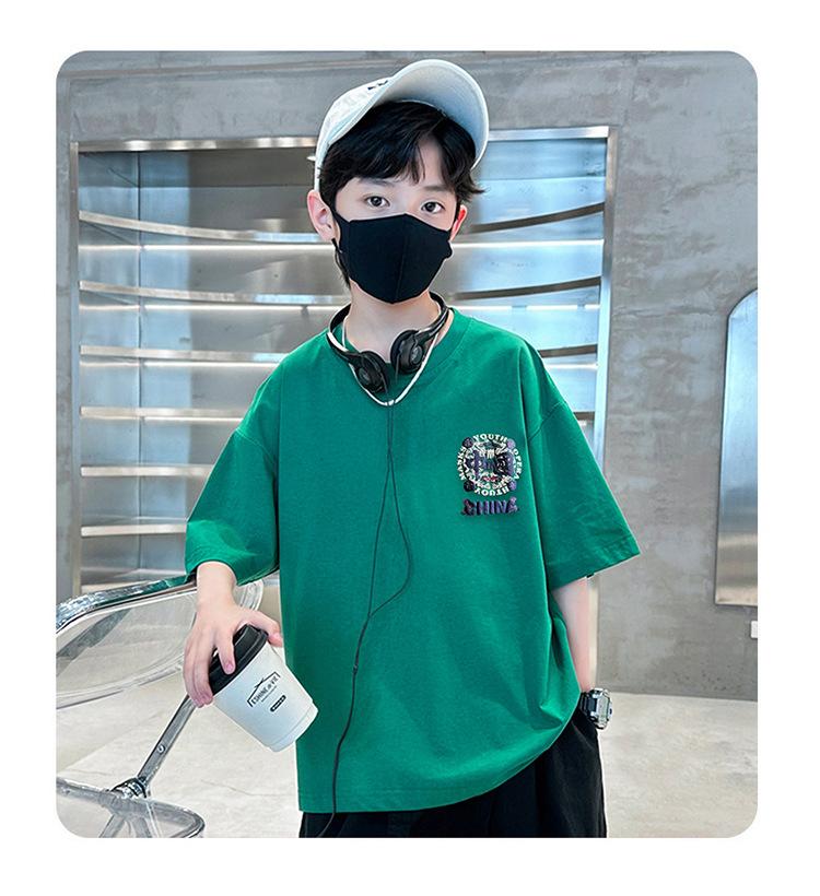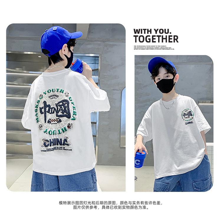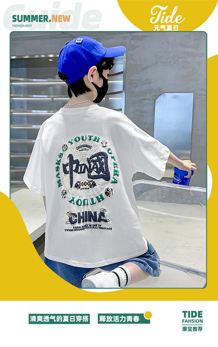Camiseta de verano para niños 2024, nuevo estilo, para niños de talla mediana a grande, de manga corta, estilo occidental, de algodón puro.