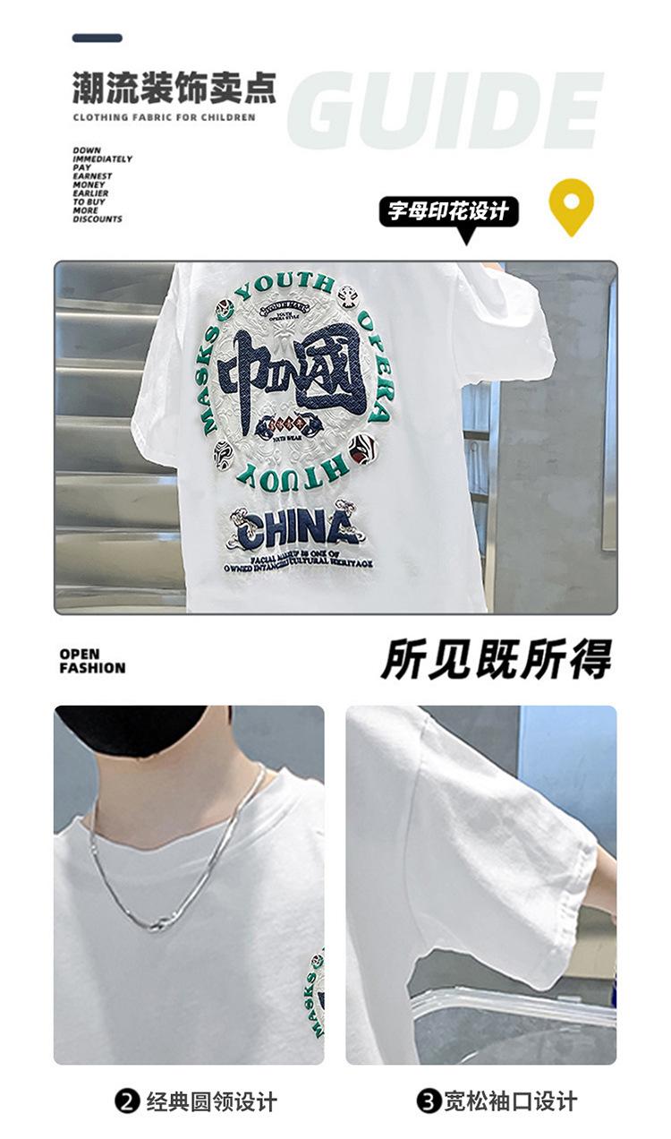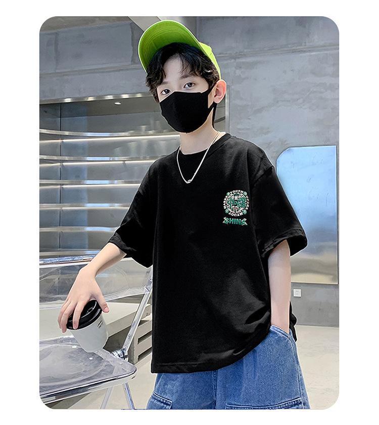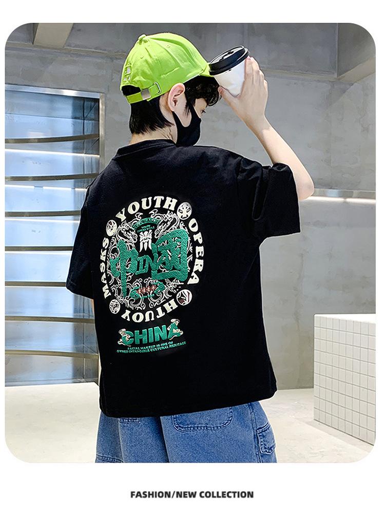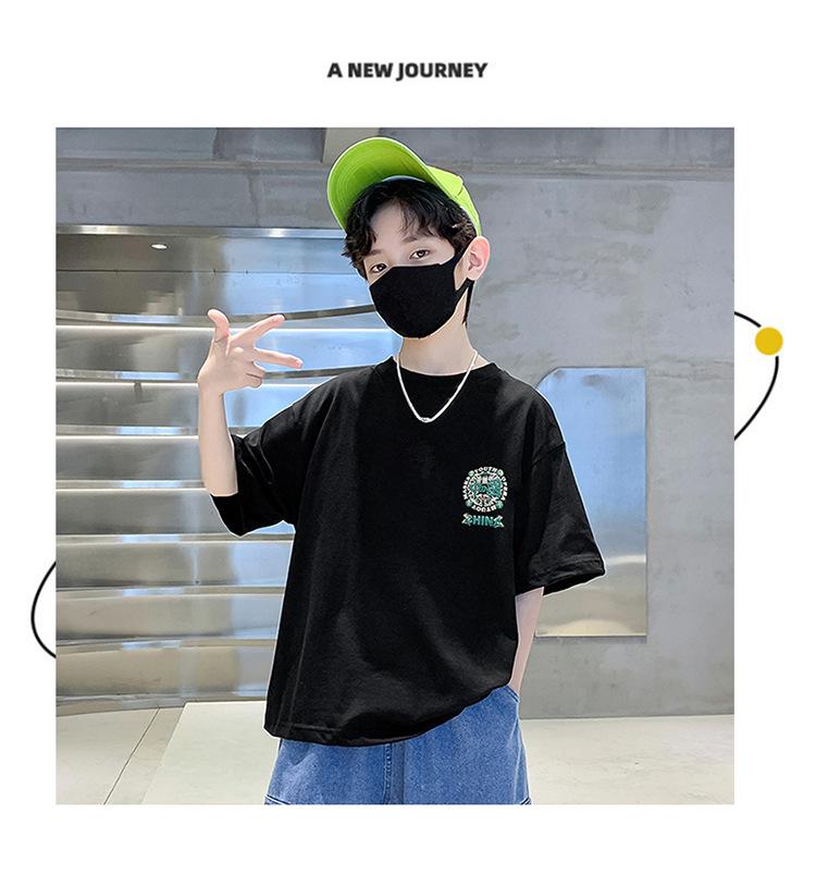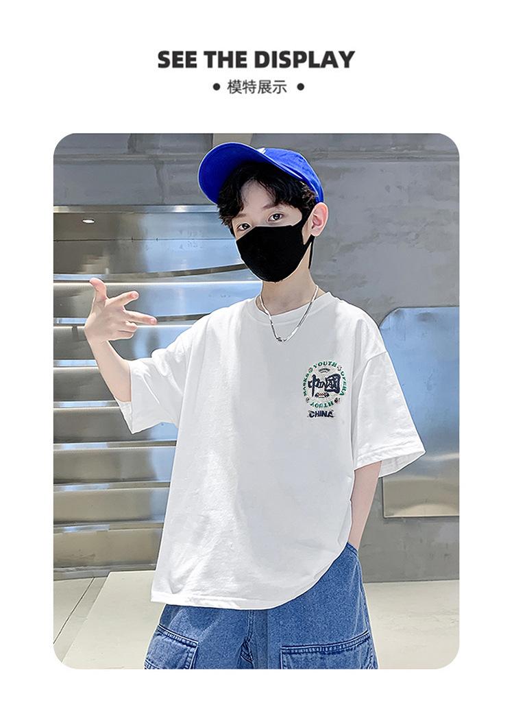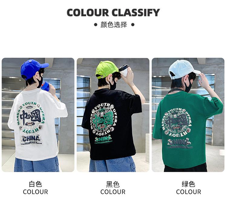 Camiseta de verano para niños 2024, nuevo estilo, para niños de talla mediana a grande, de manga corta, estilo occidental, de algodón puro.