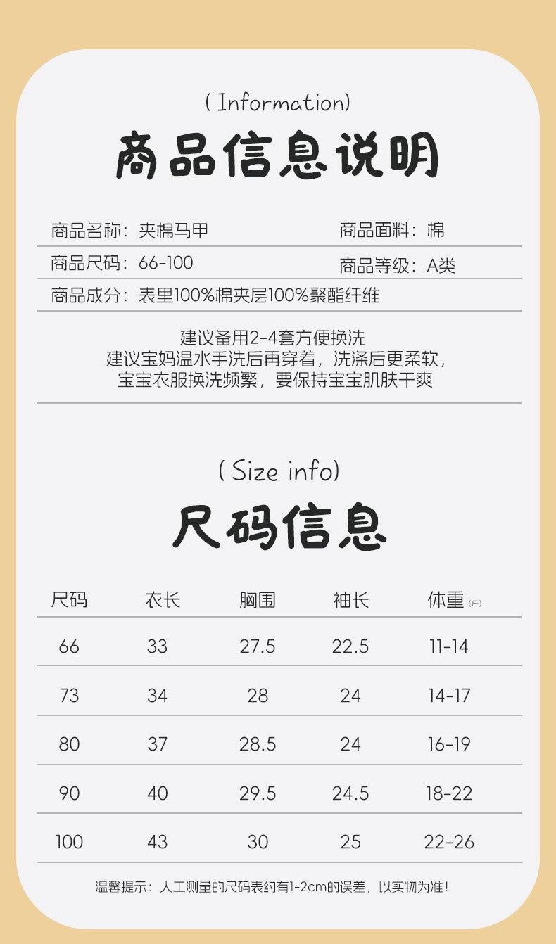 Chaleco para bebé Clase A Algodón puro Primavera y Otoño Ropa para recién nacido 40g Ropa acolchada Cálido Chaleco exterior para bebé masculino y femenino