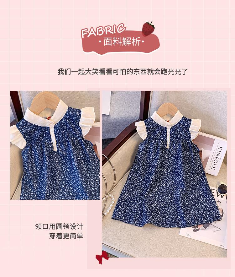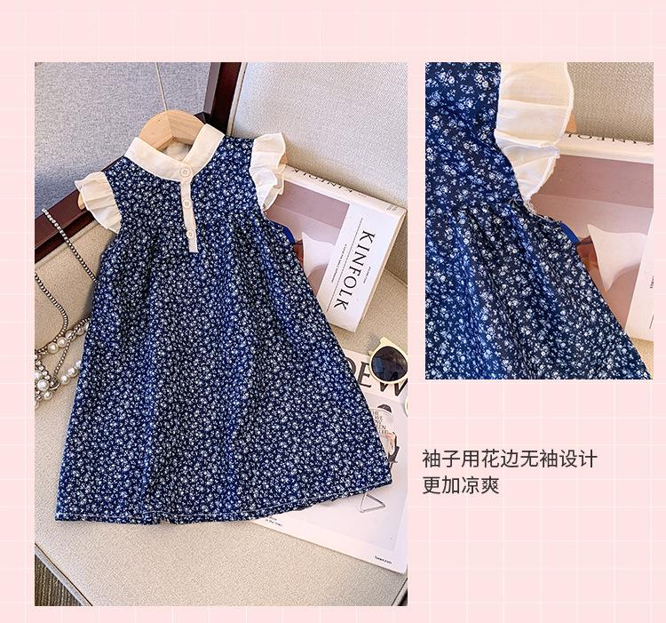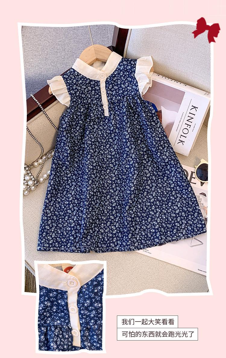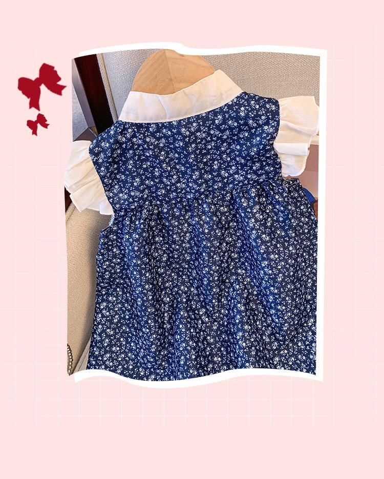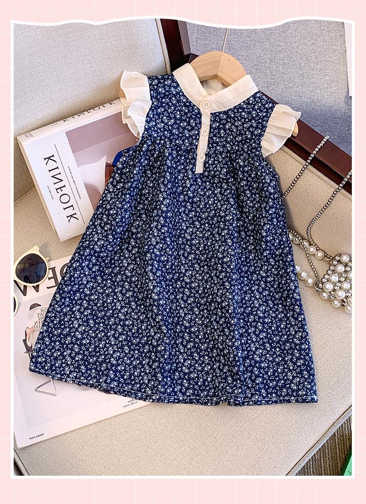 Vestido de princesa con estampado floral para niña, vestido de verano corto con mangas voladoras y cuello alto