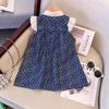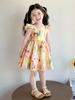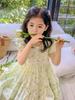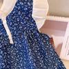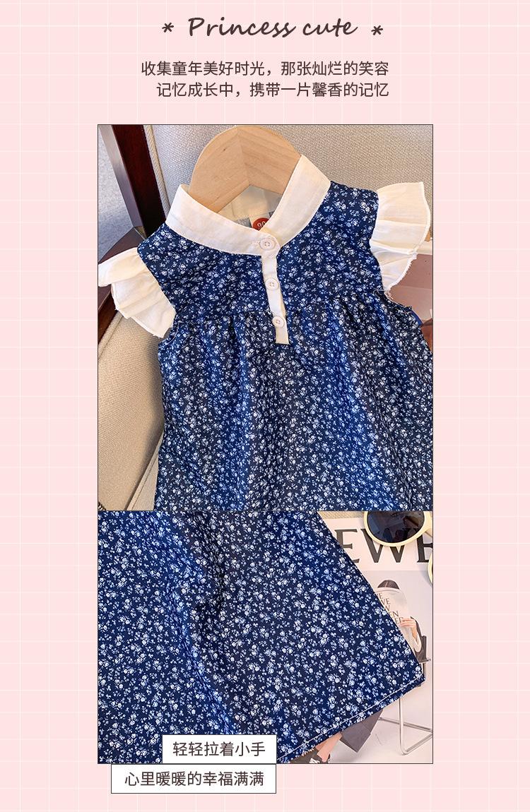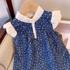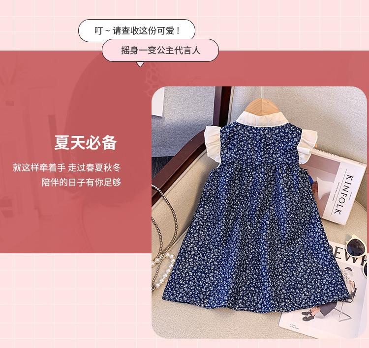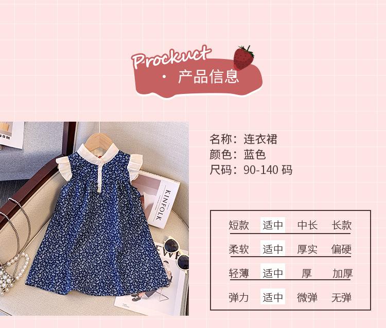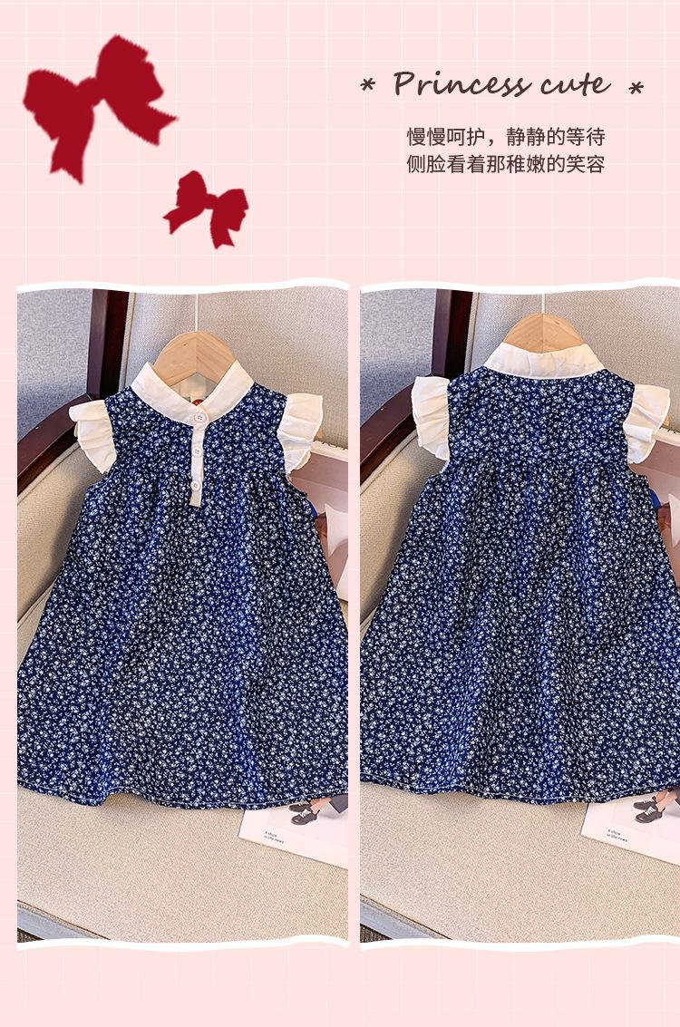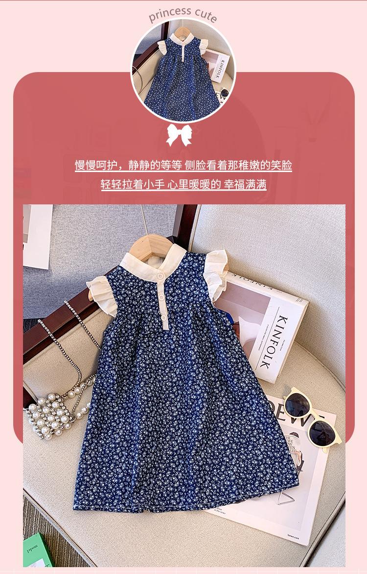 Vestido de princesa con estampado floral para niña, vestido de verano corto con mangas voladoras y cuello alto