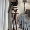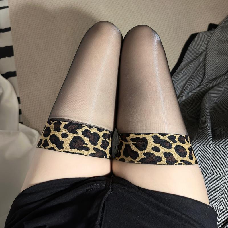 Tirantes sexys con estampado de leopardo seda pura negra femenina ultradelgada tentación entrepierna abierta pasión sabor libre