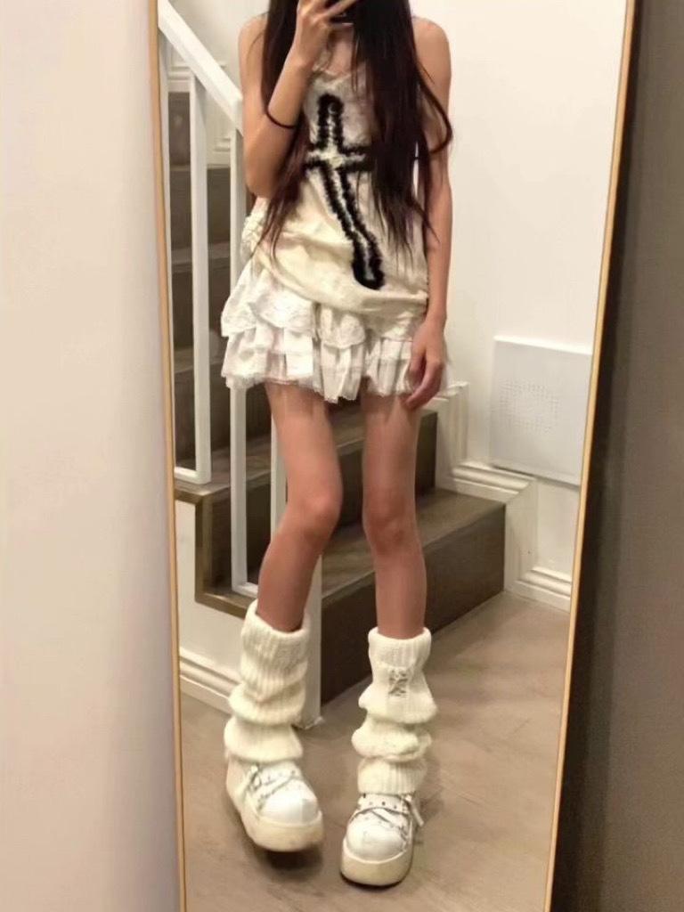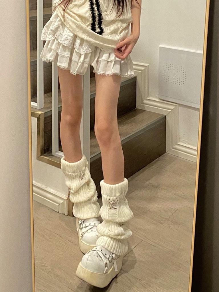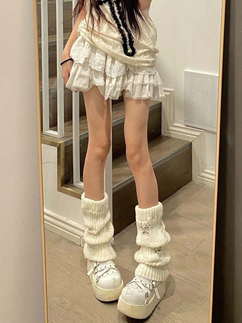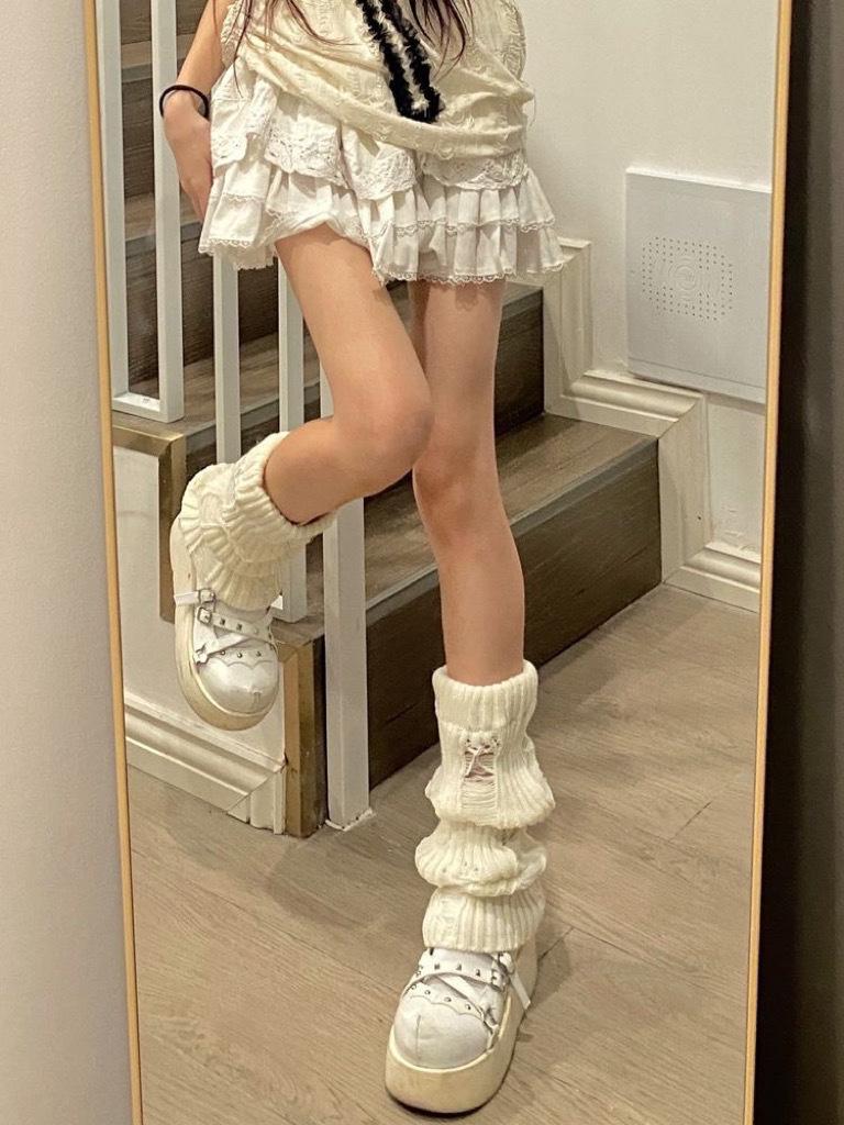 Calcetines Calados Spice Girl Japonesa Otoño e Invierno Elastómero Cálido Subcultura Spice Girl Cubrepiernas de Montón de Pantorrilla