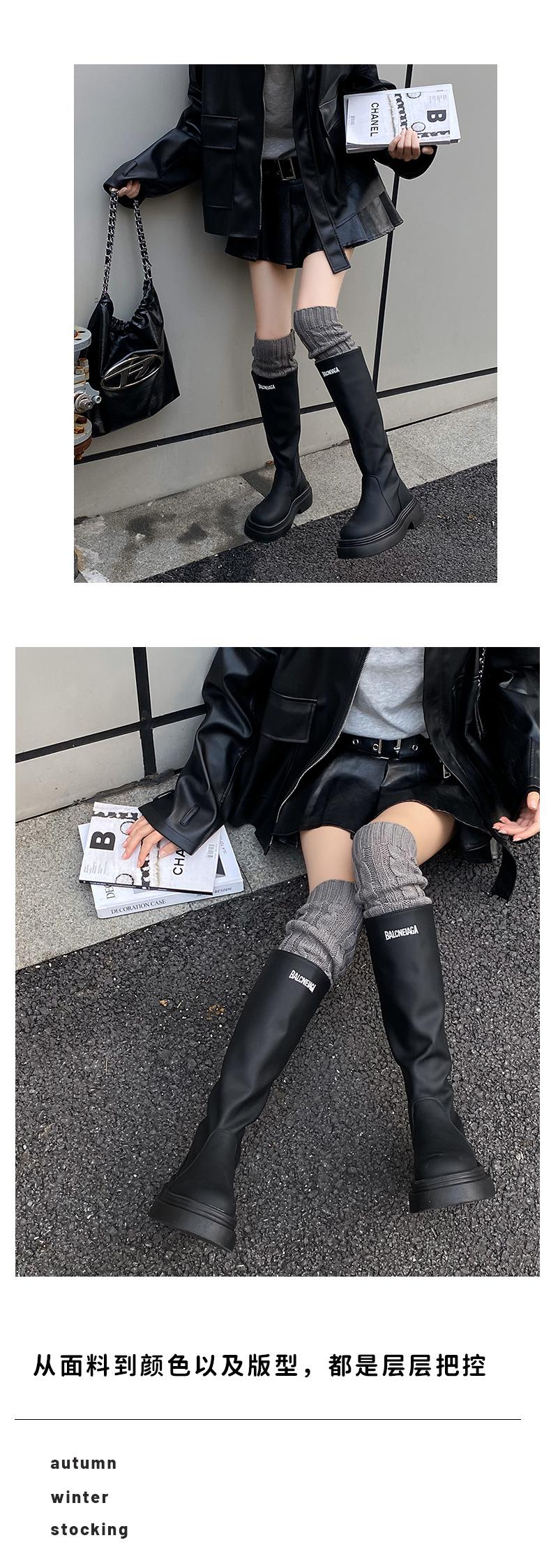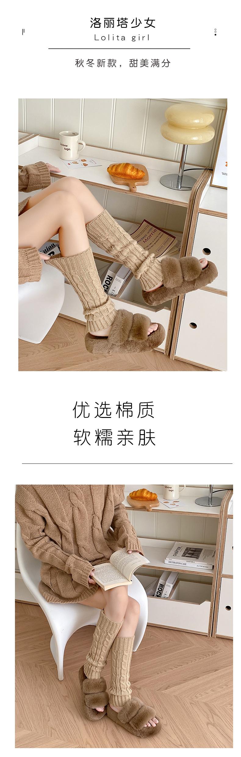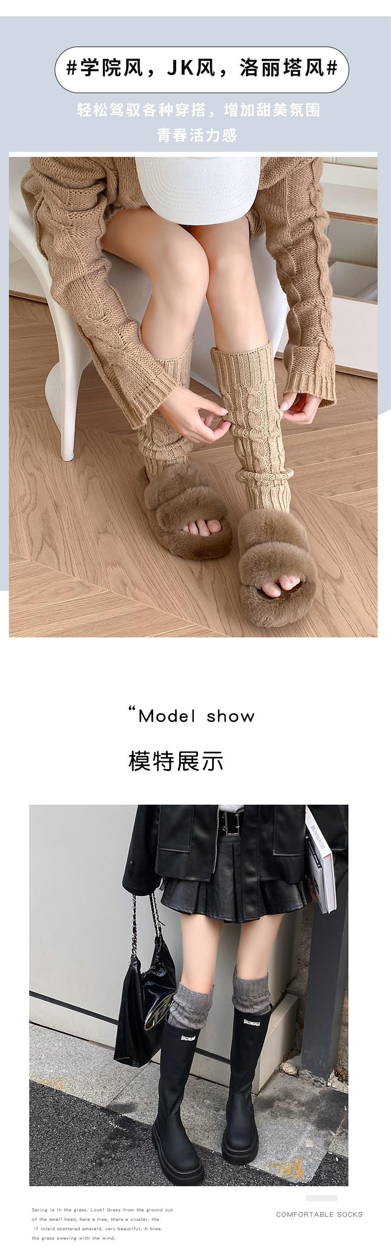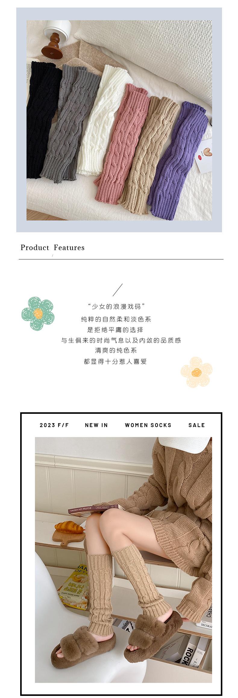 Calcetines de Trenza para Mujer Otoño e Invierno Color Sólido Tejido Cubrepiernas Ins Moda Marrón Vintage Lana Apilados Calcetines Cubrepiernas Milenio