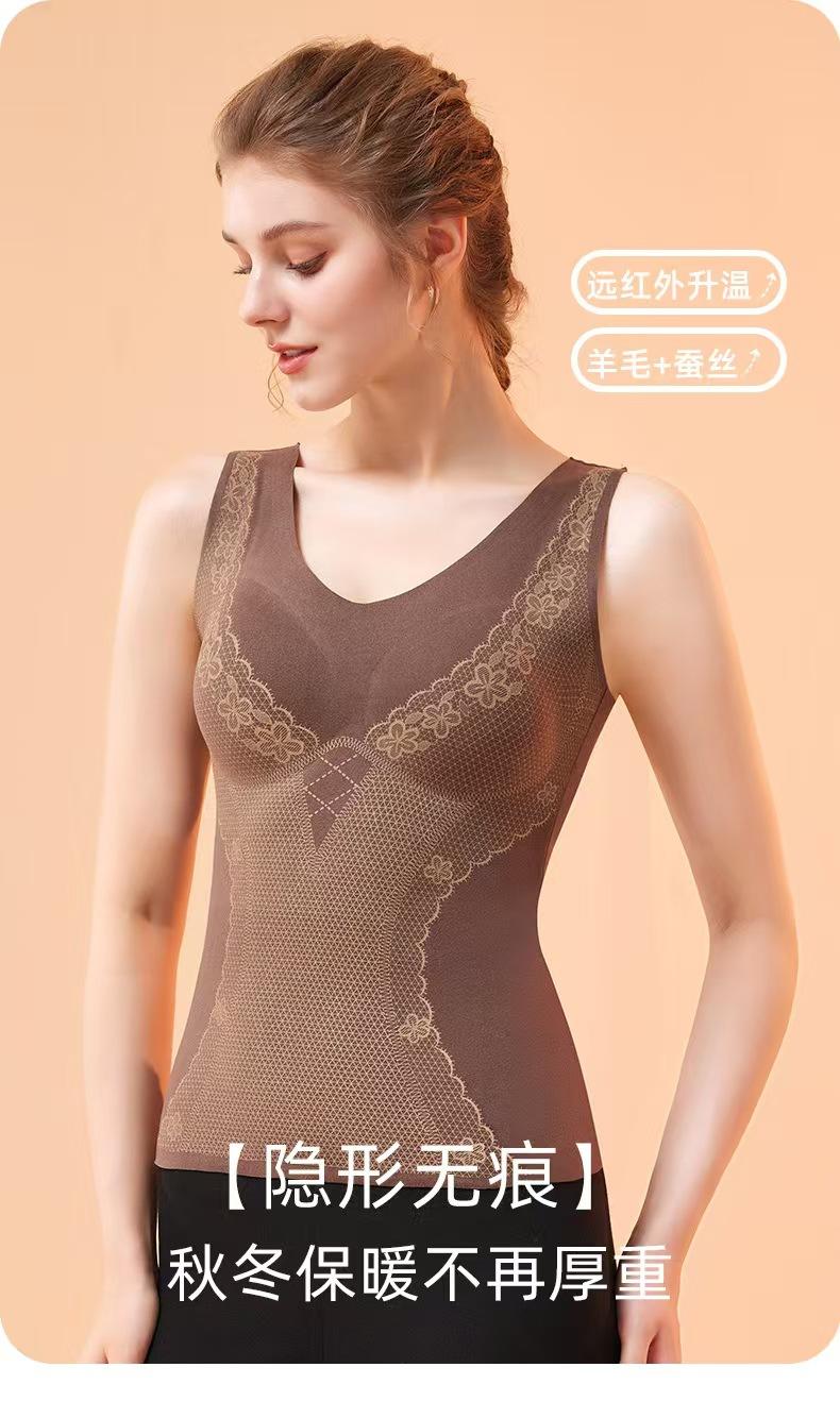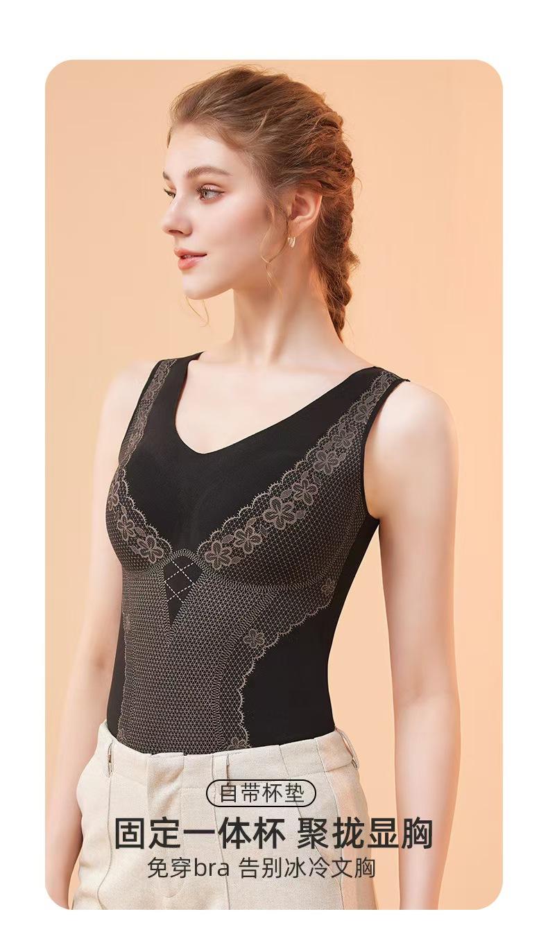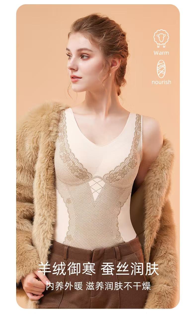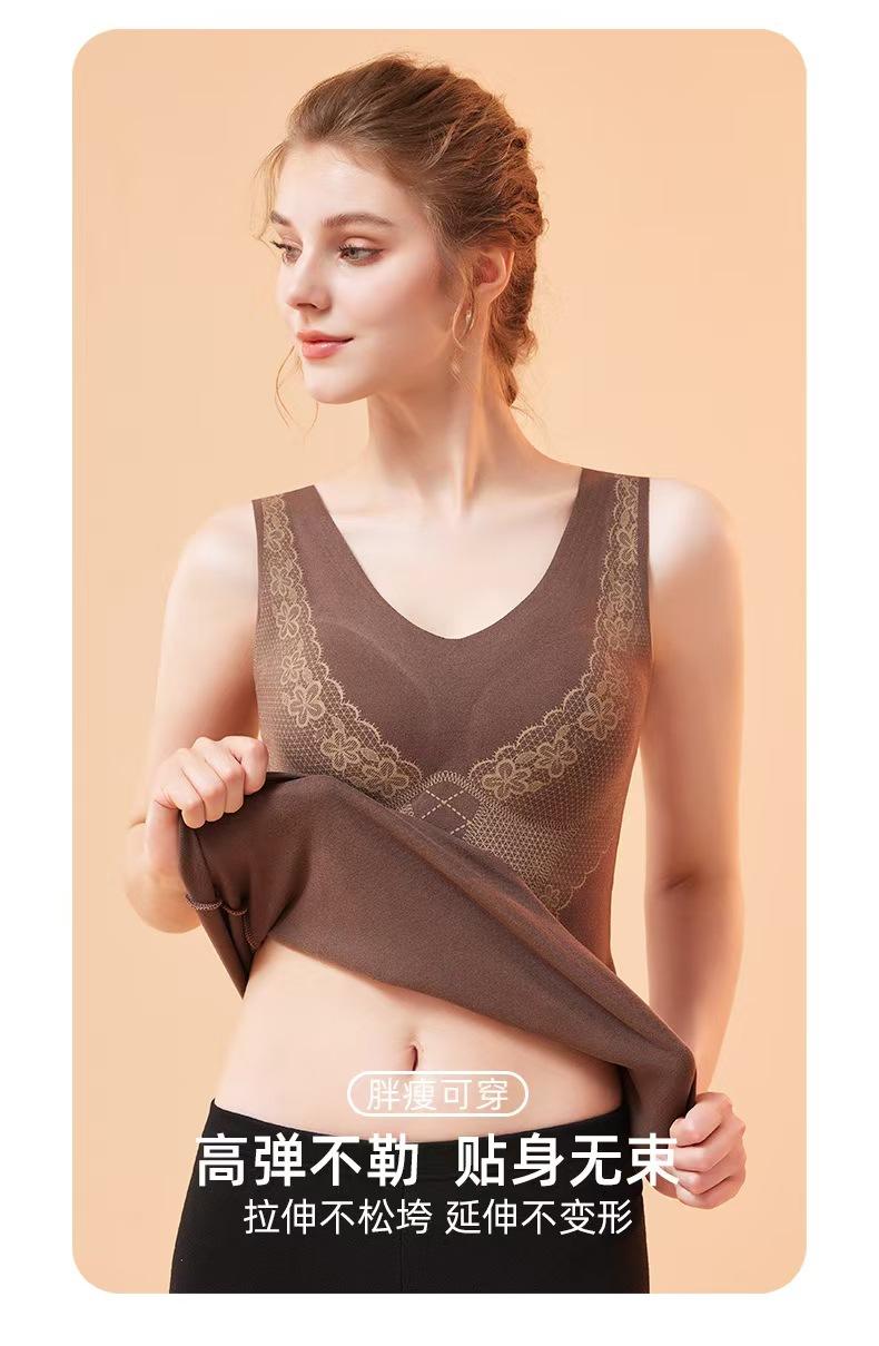 Chaleco Cálido de Terciopelo con Copa Fija para Mujer, Forrado de Lana, Engrosado, Lijado por Ambos Lados, Otoño e Invierno, Lana Seda, Ropa Interior Base sin Costuras