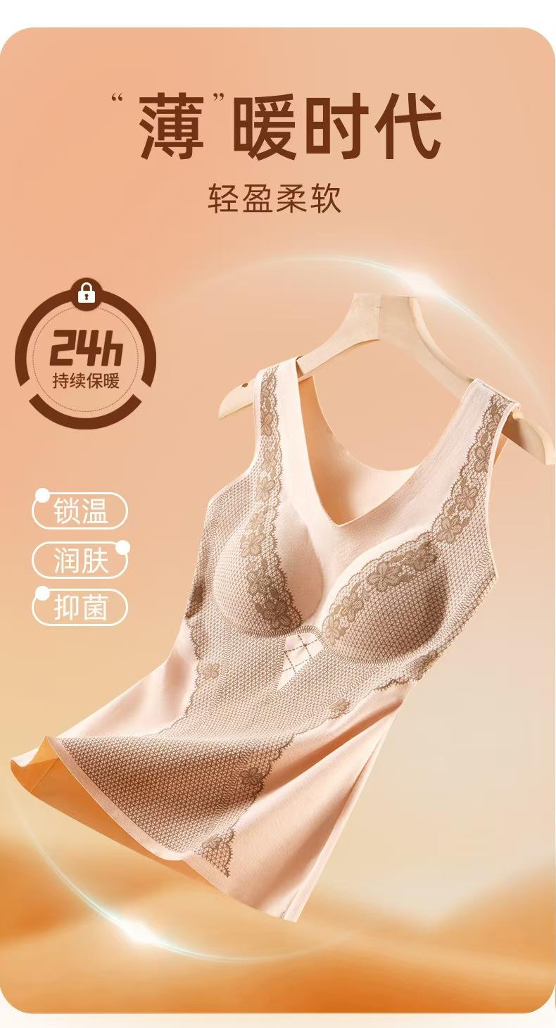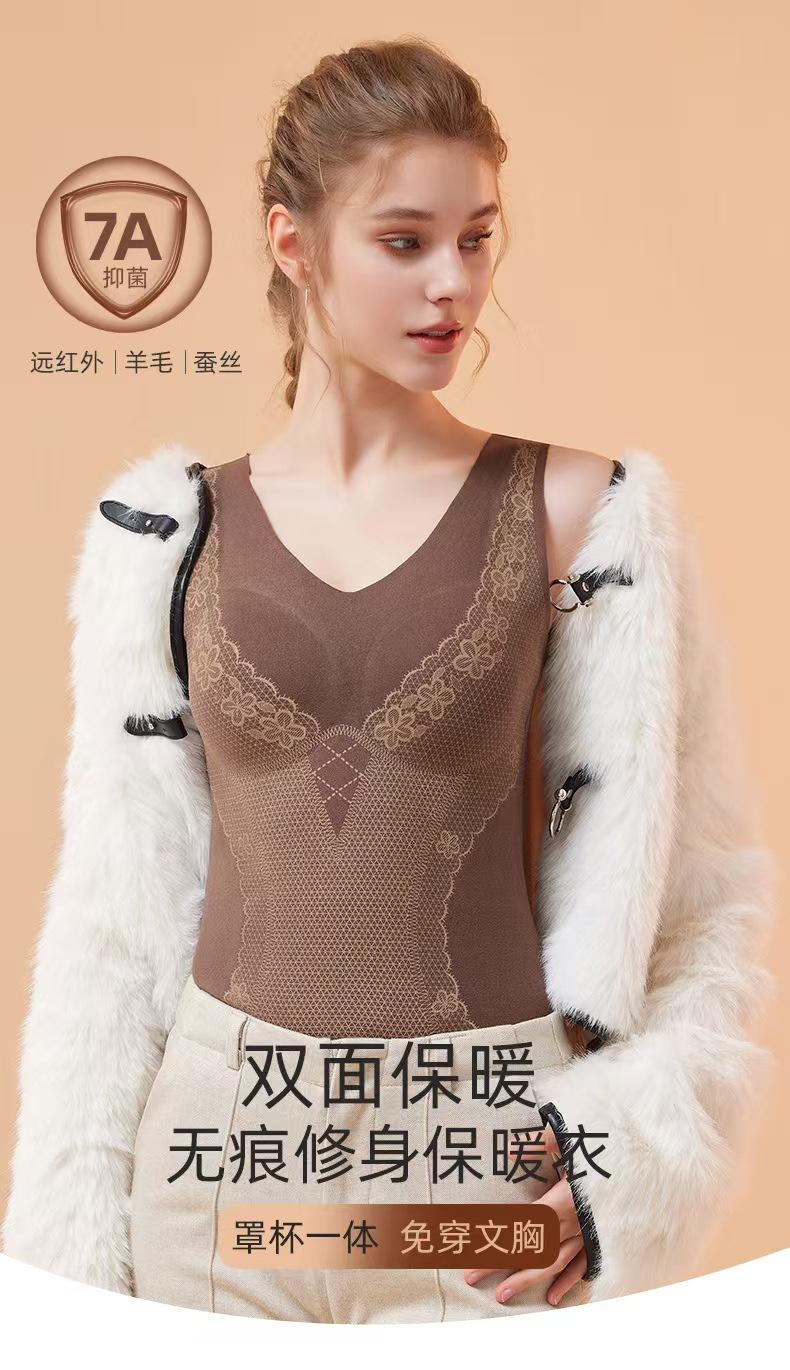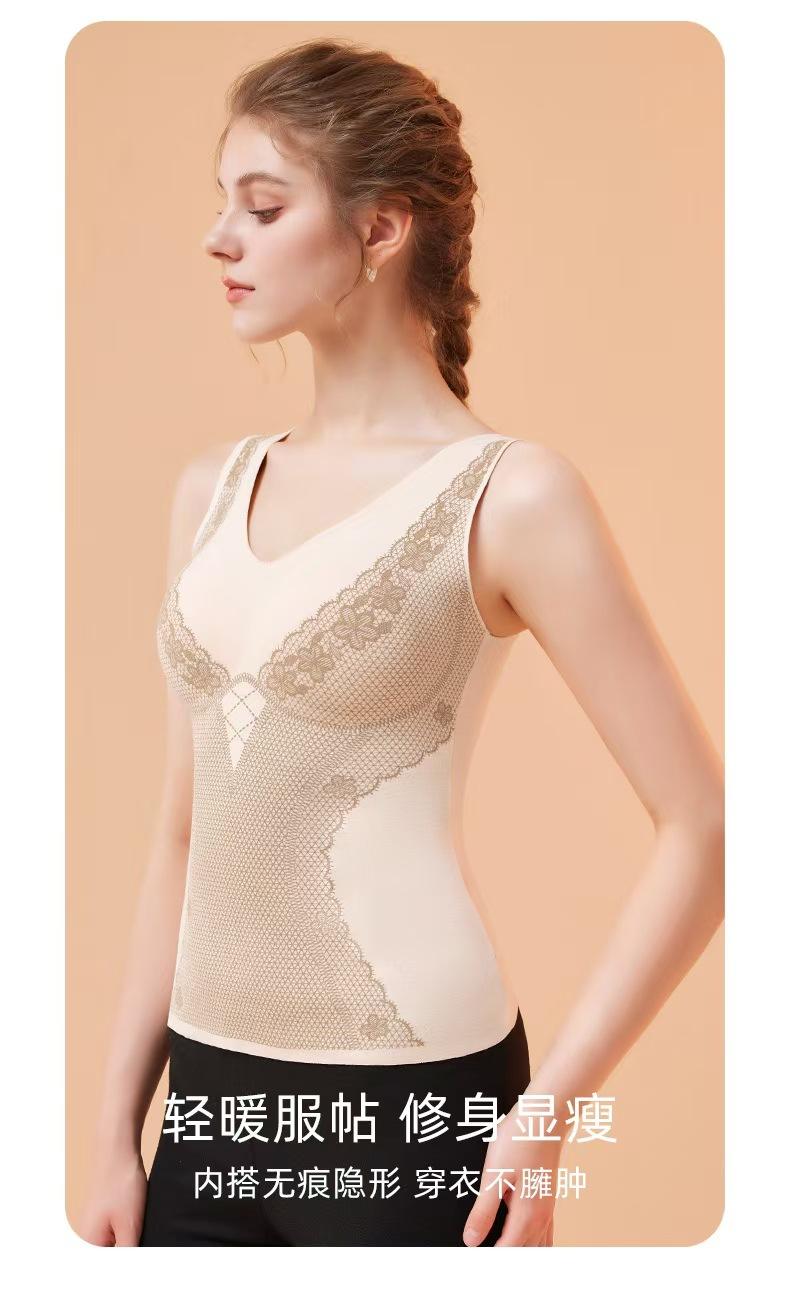 Chaleco Cálido de Terciopelo con Copa Fija para Mujer, Forrado de Lana, Engrosado, Lijado por Ambos Lados, Otoño e Invierno, Lana Seda, Ropa Interior Base sin Costuras