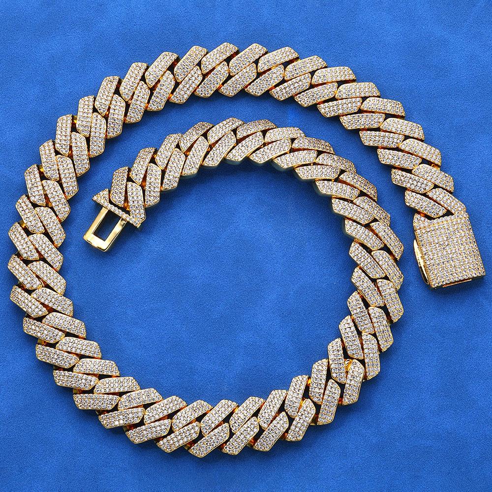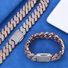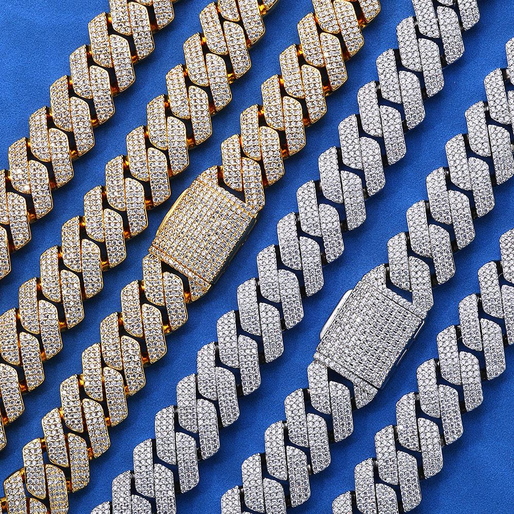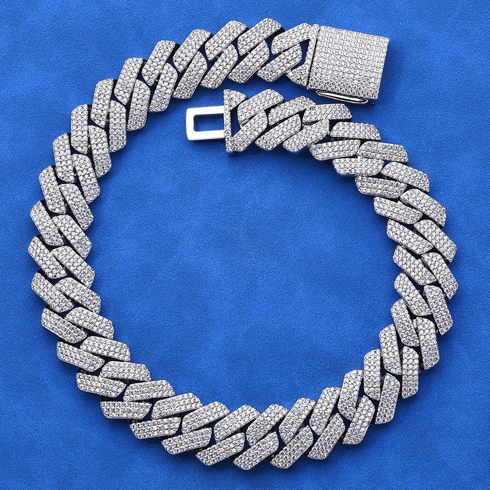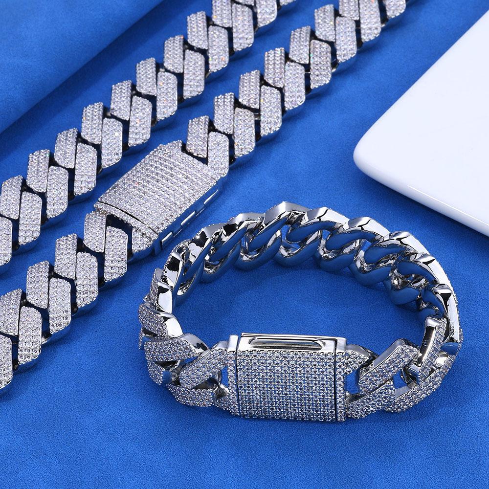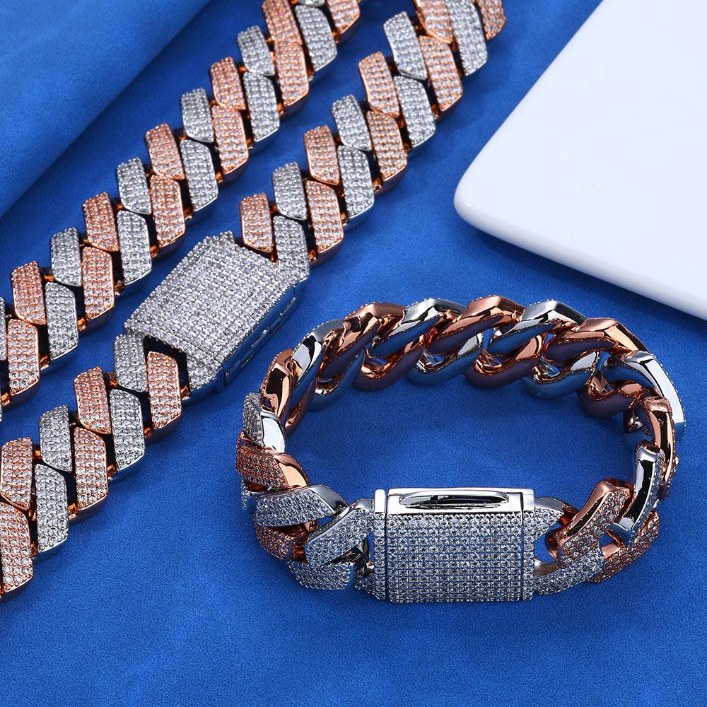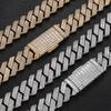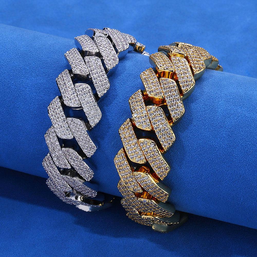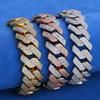 Pulsera Europea y Americana de Marca de Moda para Hombre 20mm Hebilla Plegable Tres Filas de Circonita Rombo Cadena Cubana Gruesa Collar Hip-Hop Venta al por Mayor