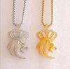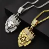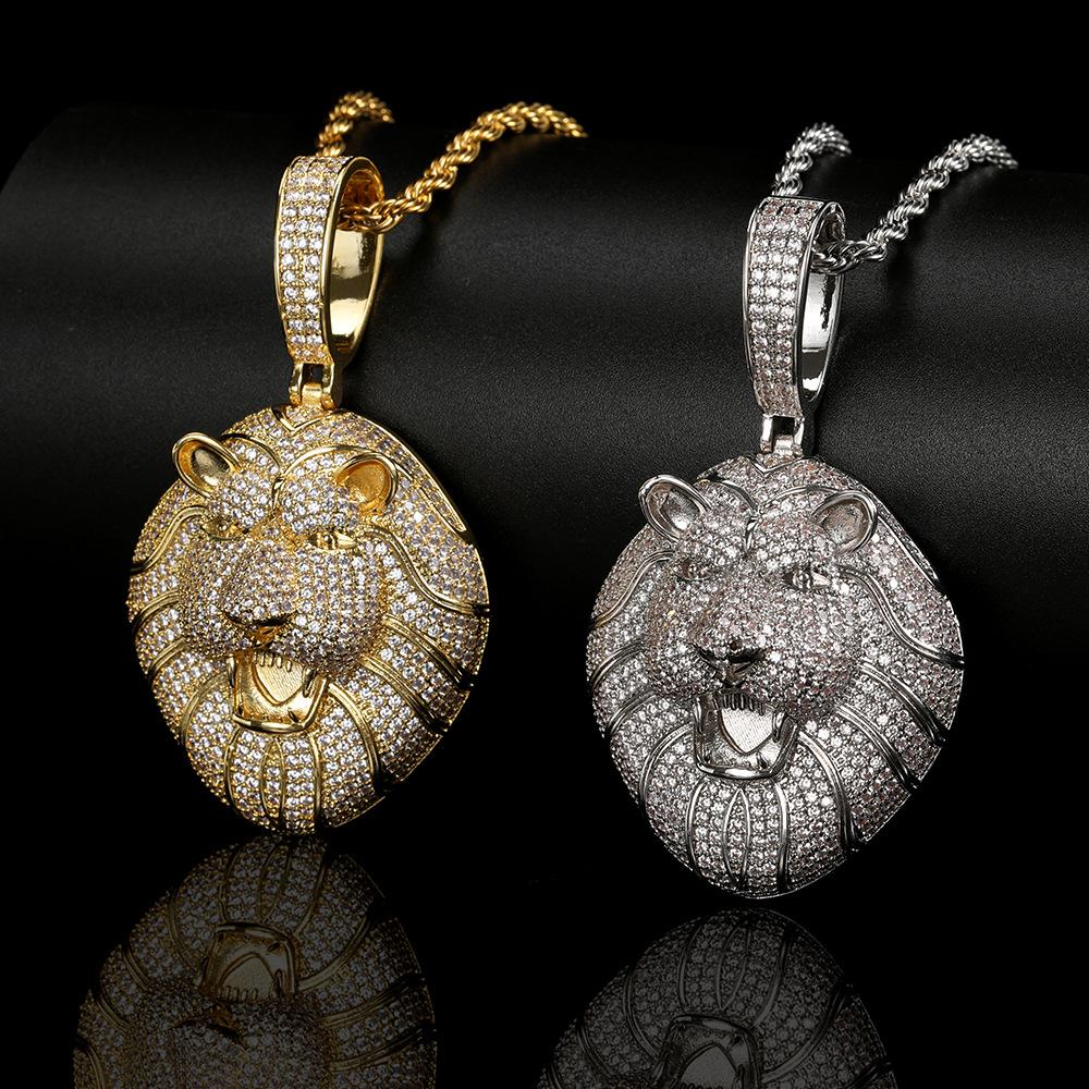 Colgante de cabeza de león maciza con micropavé de circonitas cúbicas de estilo hip hop europeo y americano, chapado en oro auténtico, accesorios de moda para hombre.