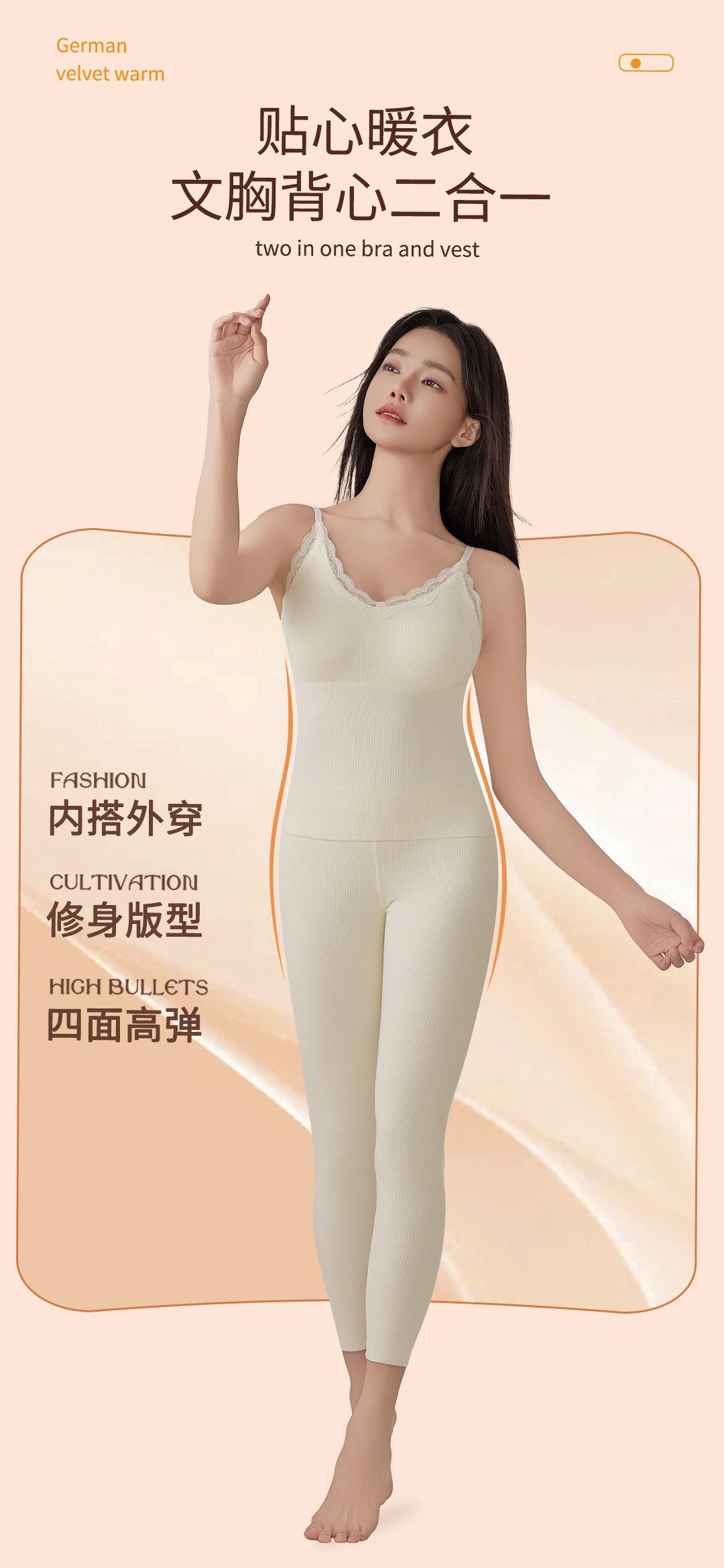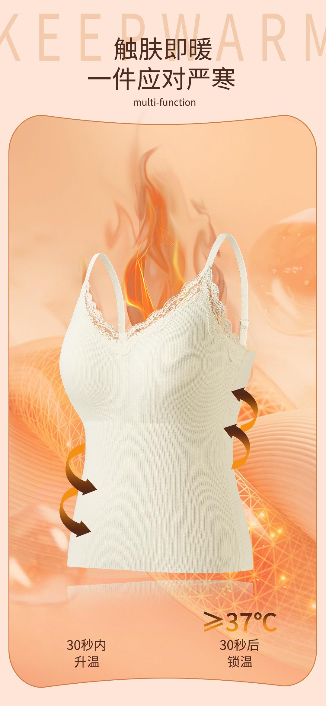 Chaleco Cálido Ropa Interior de Una Pieza Sin Costuras para Mujer con Almohadilla en el Pecho Otoño e Invierno Ligero Push-up Ajustado Camiseta Interior Base