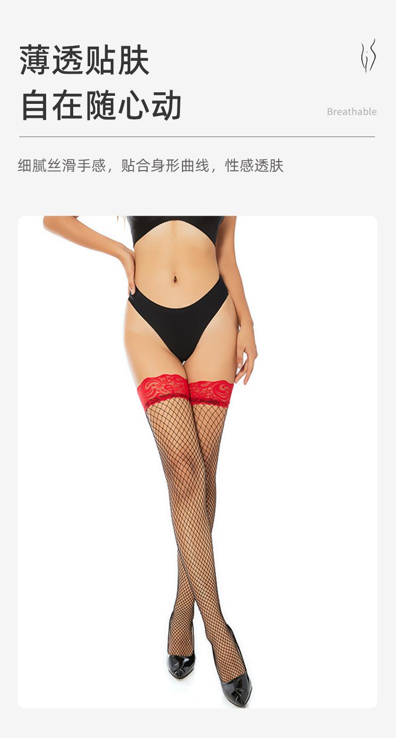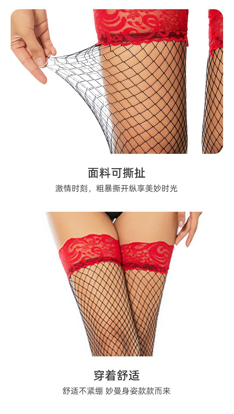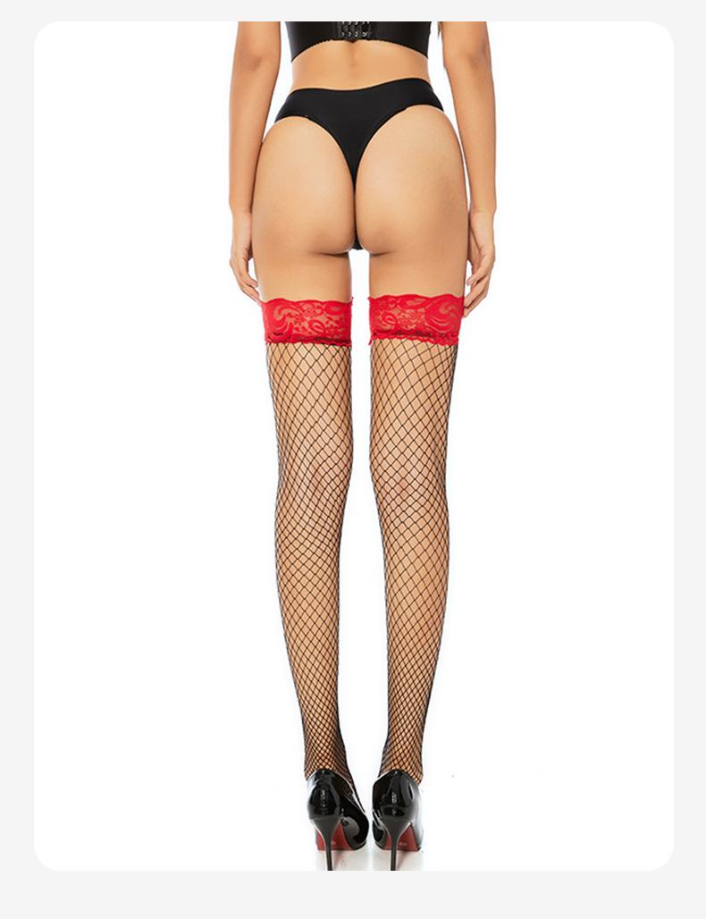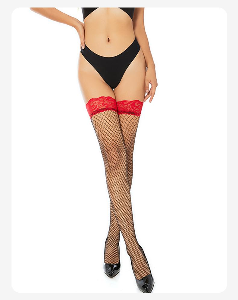 Ropa interior sexy con medias de red sexys Medias de red de encaje rojo de barril largo Medias de rejilla Medias de seda de malla