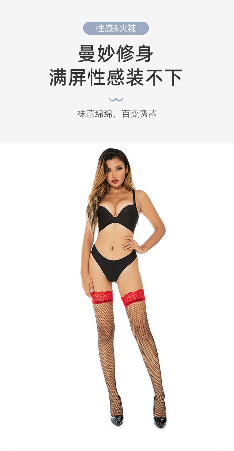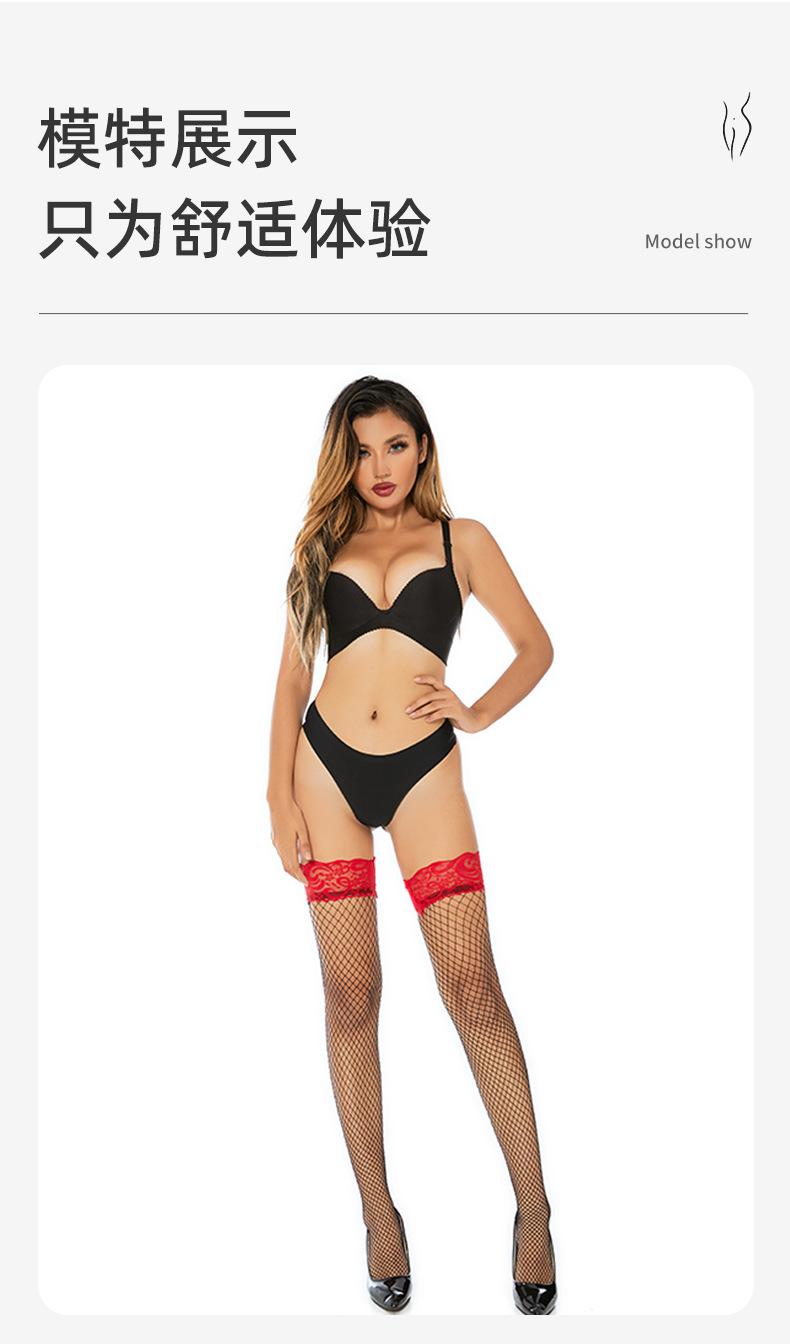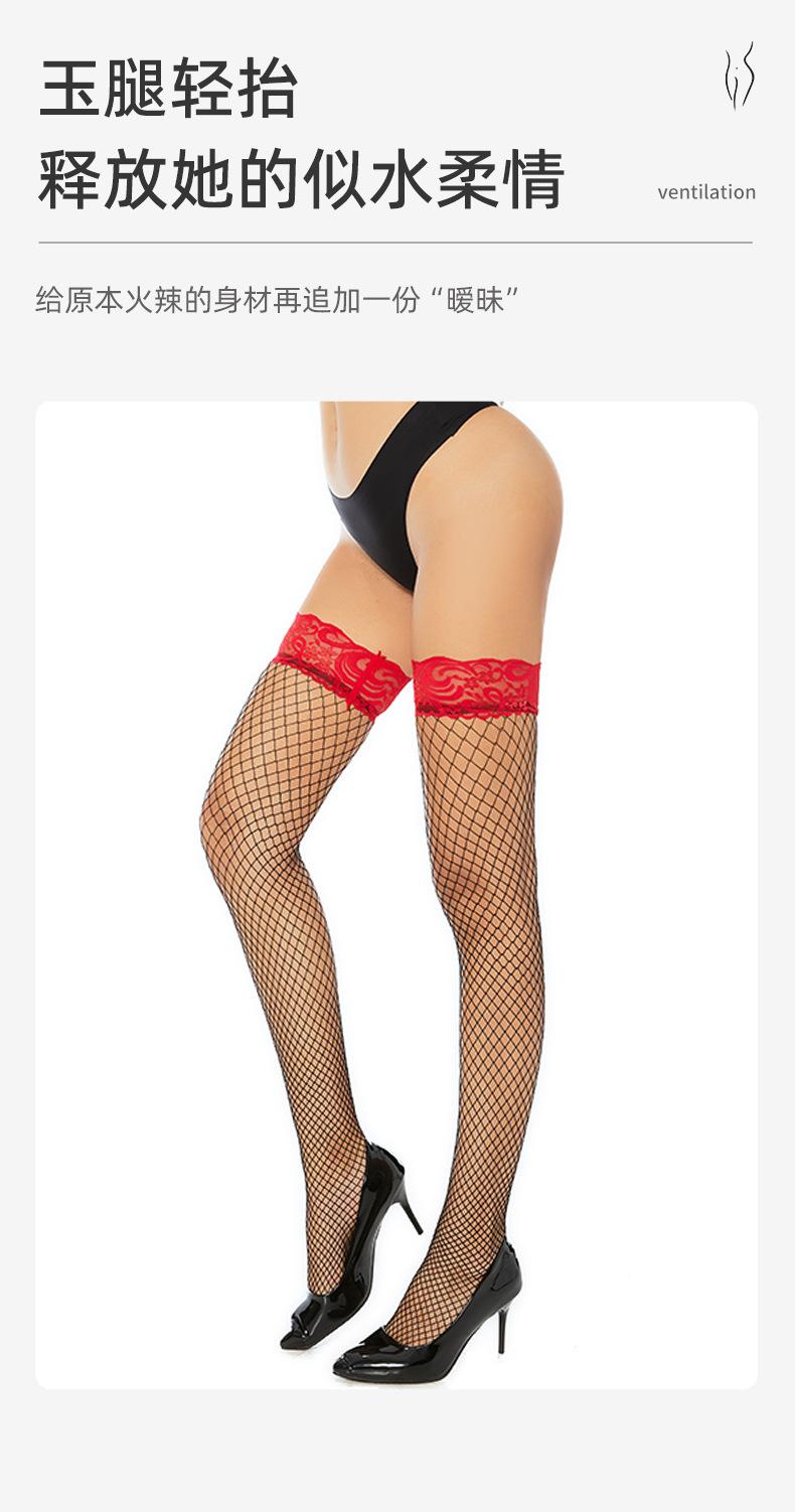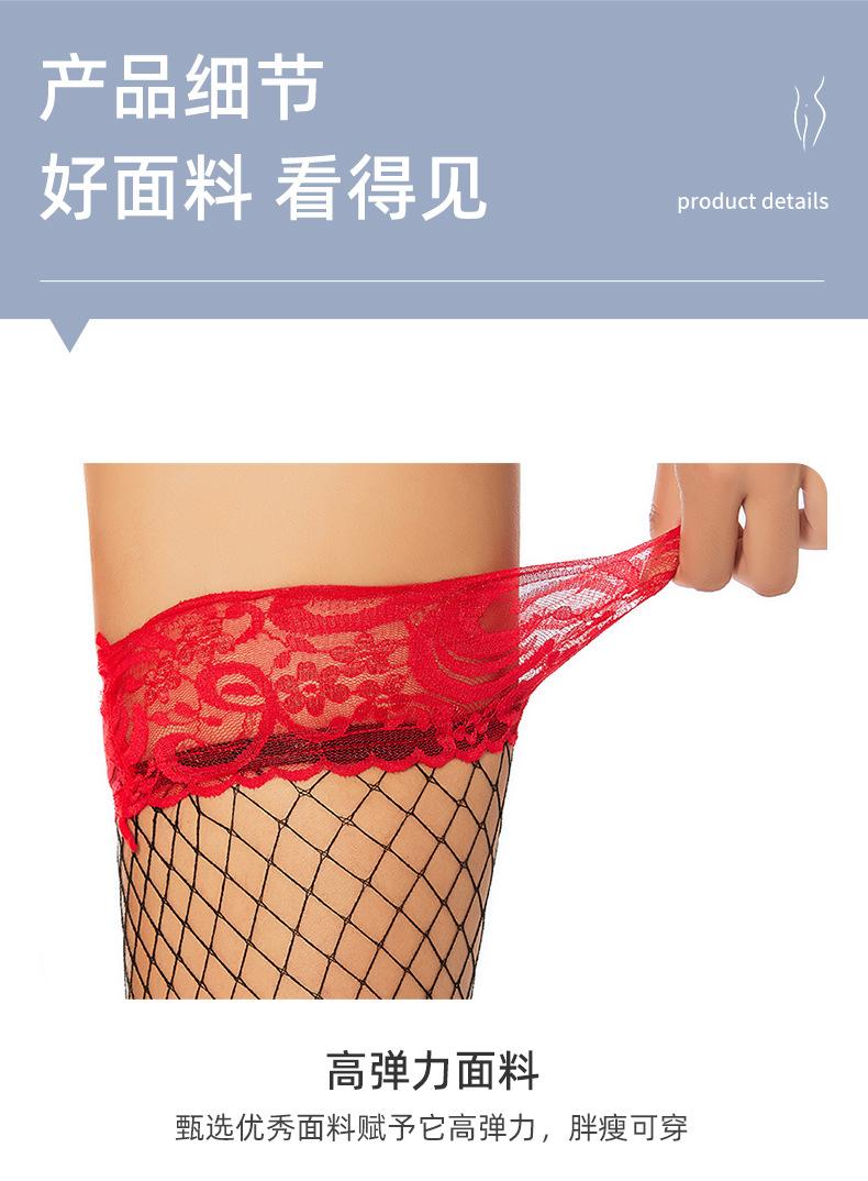Ropa interior sexy con medias de red sexys Medias de red de encaje rojo de barril largo Medias de rejilla Medias de seda de malla