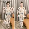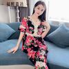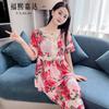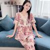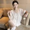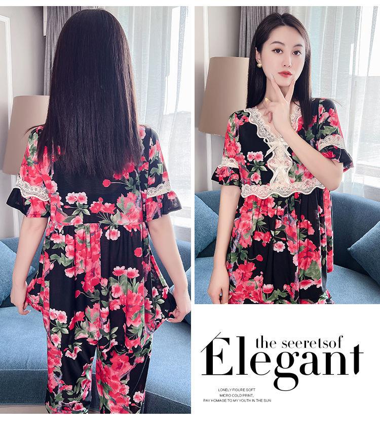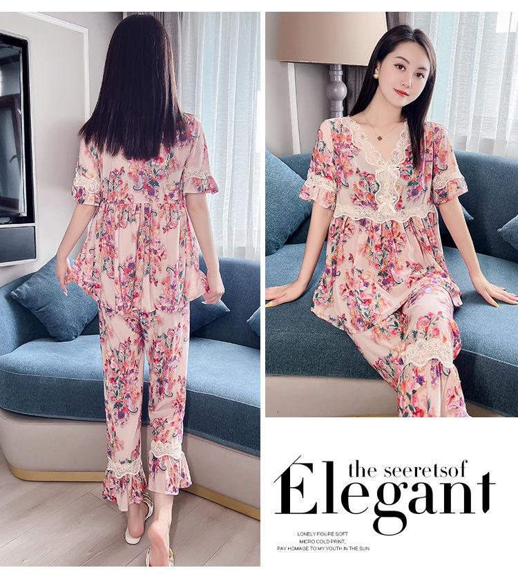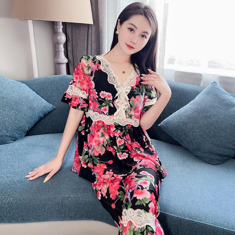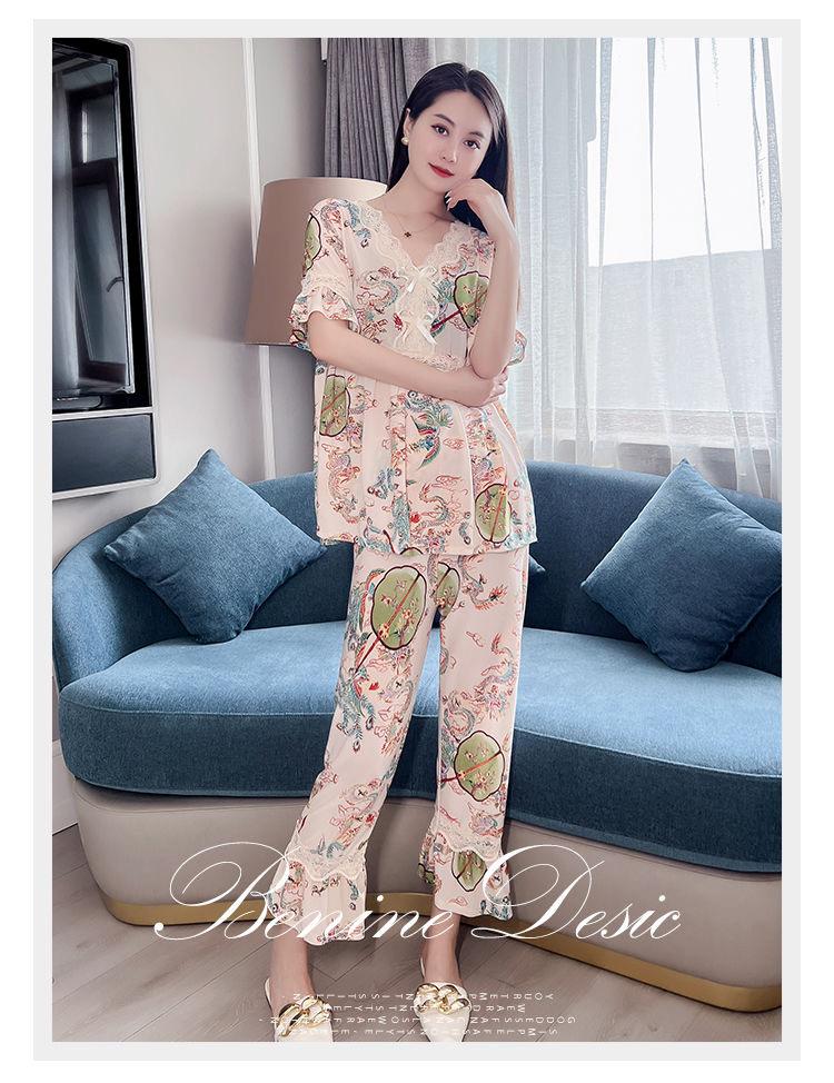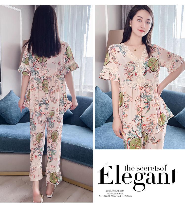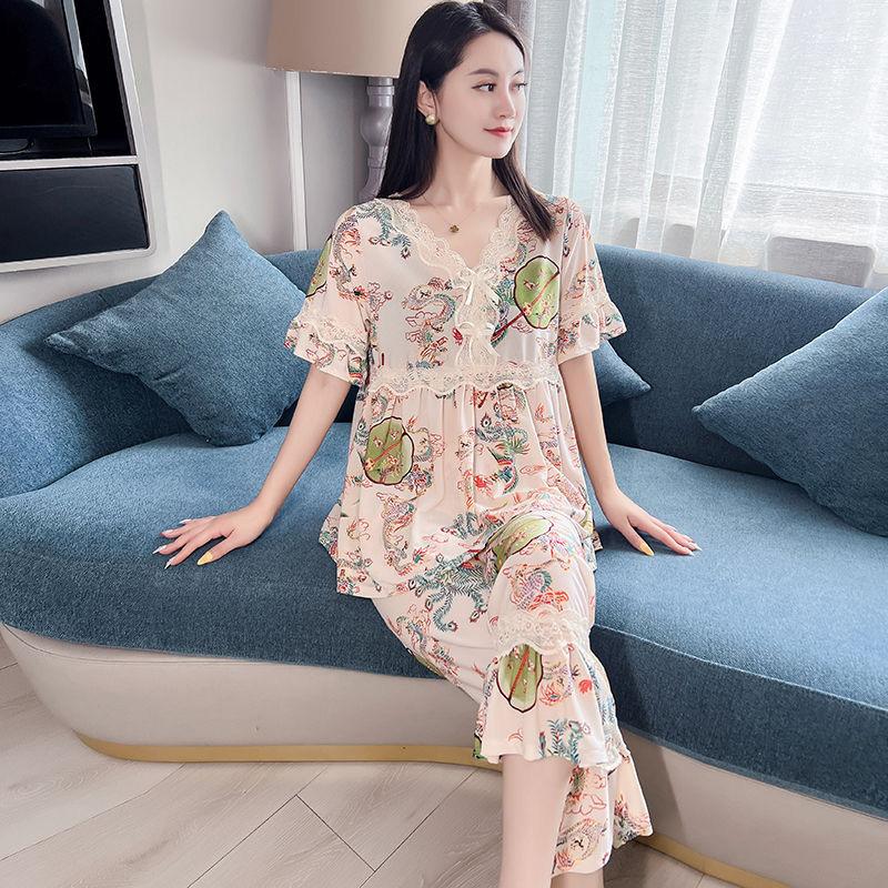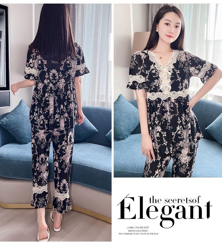 Traje de pijama popular de Internet para mujer de verano delgado a la moda holgado con cuello en V encaje manga corta ropa de casa para salir
