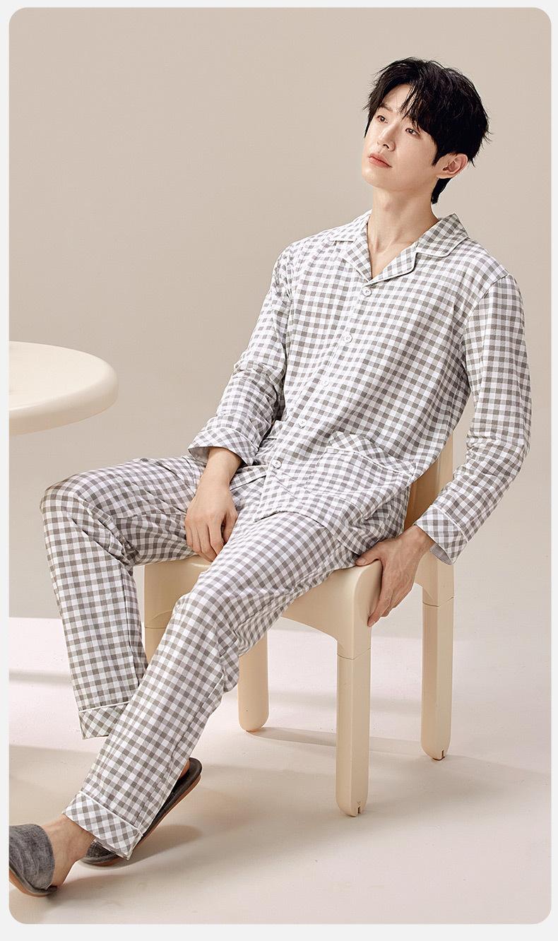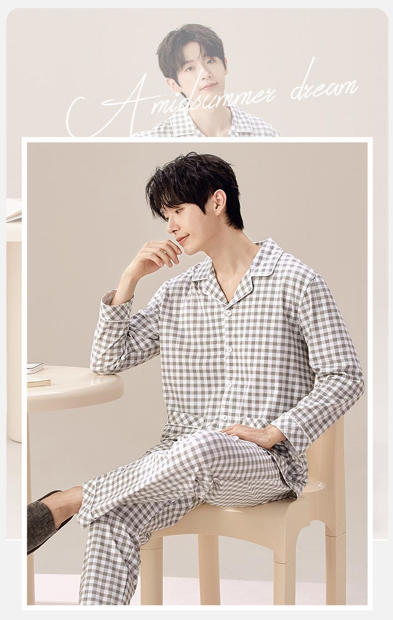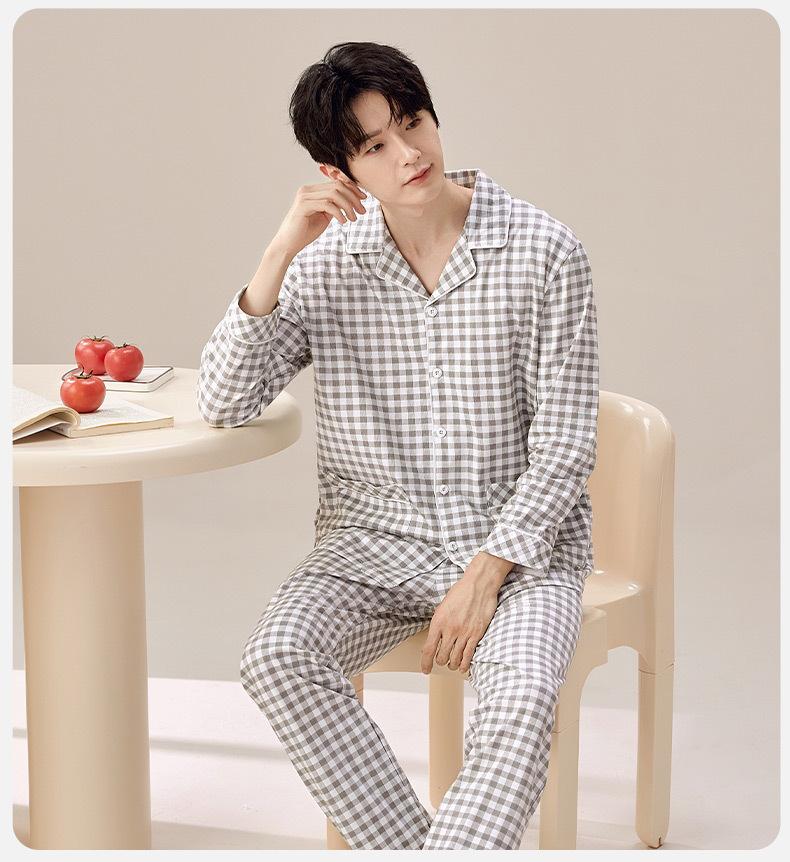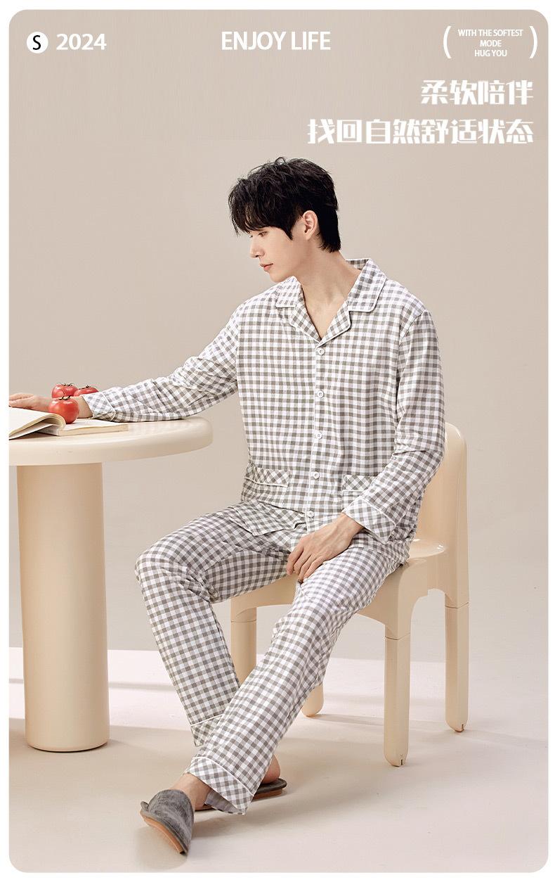Pijamas de primavera y otoño para hombre, novedad de 2024, a cuadros, de manga larga, holgados, de talla grande, ropa informal para el hogar