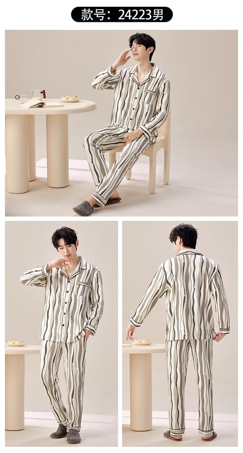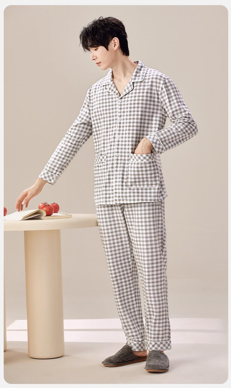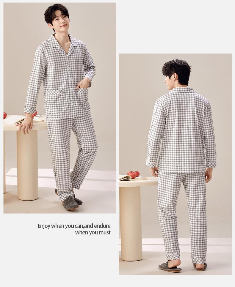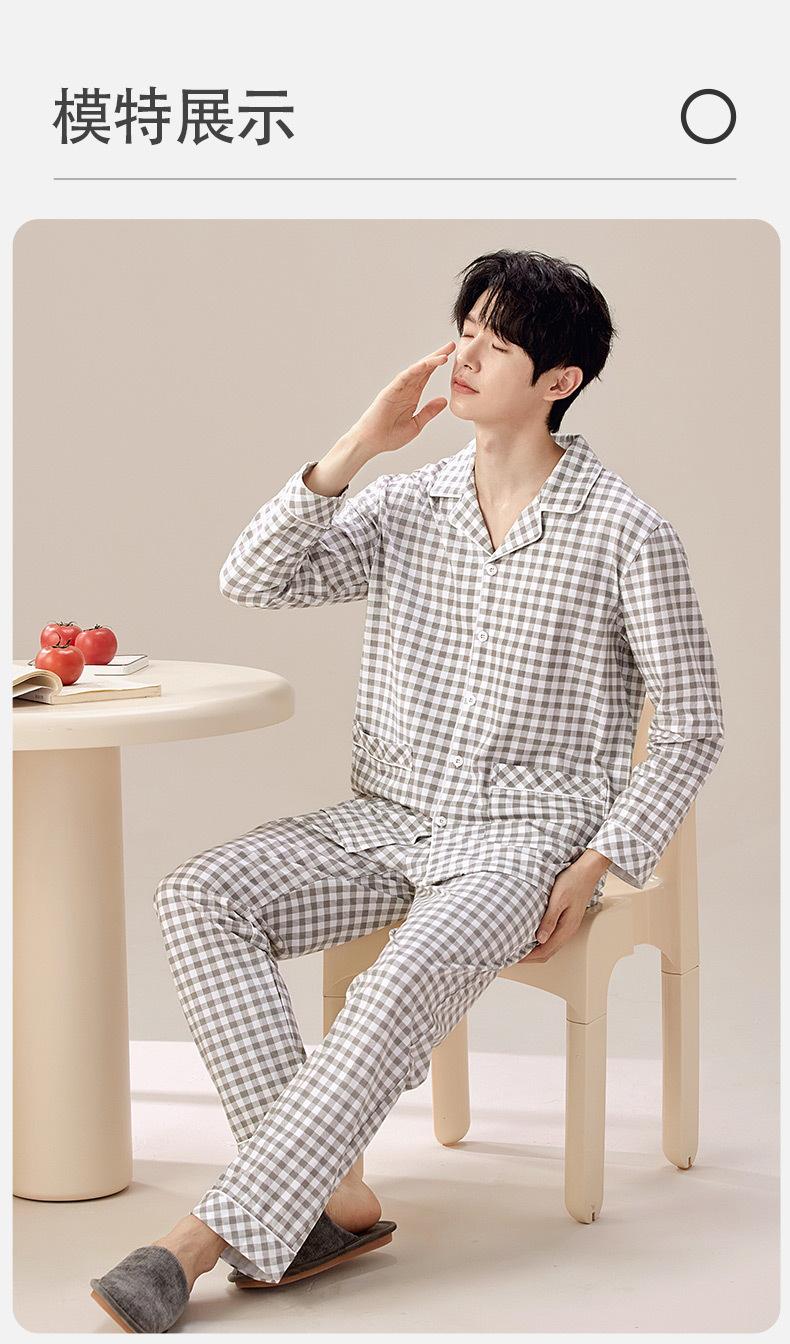 Pijamas de primavera y otoño para hombre, novedad de 2024, a cuadros, de manga larga, holgados, de talla grande, ropa informal para el hogar
