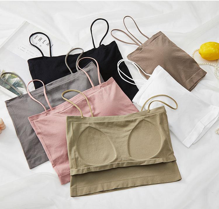Hermoso chaleco camisola de espalda para mujer con sujetador integrado con almohadillas en el pecho para evitar la exposición, ropa interior top tubo bottoming, envoltura de pecho