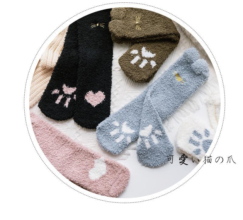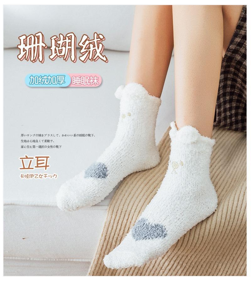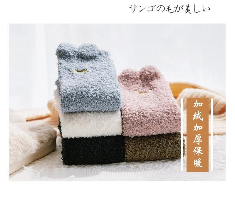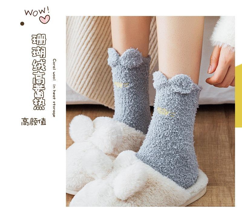 Calcetines de terciopelo coral para mujer, de invierno, gruesos y cálidos, de color liso, de tubo medio, para dormir en casa, cálidos, con forma de luna.